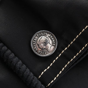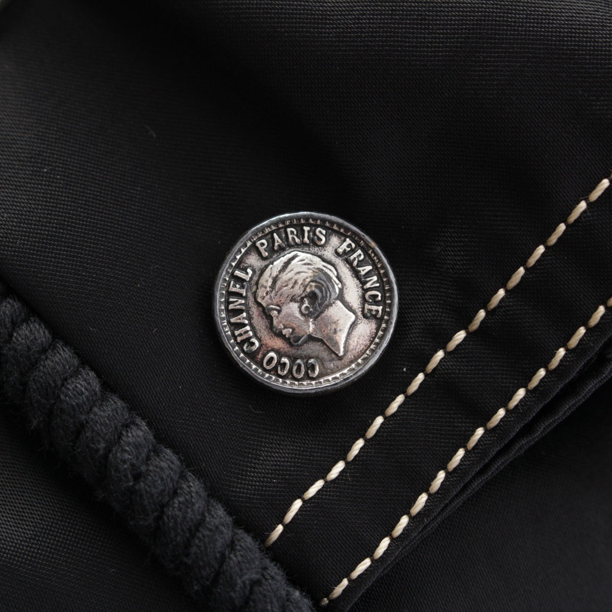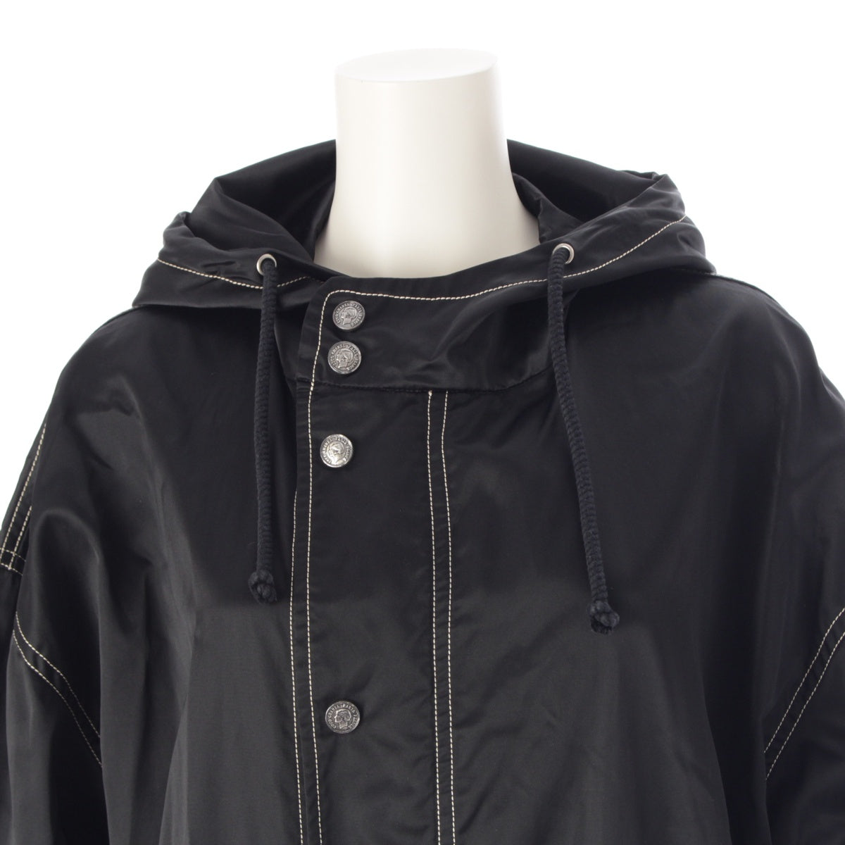 CHANEL Cotton nylon Vintage Drawstring Hooded Rain coat outer P06685 black 34