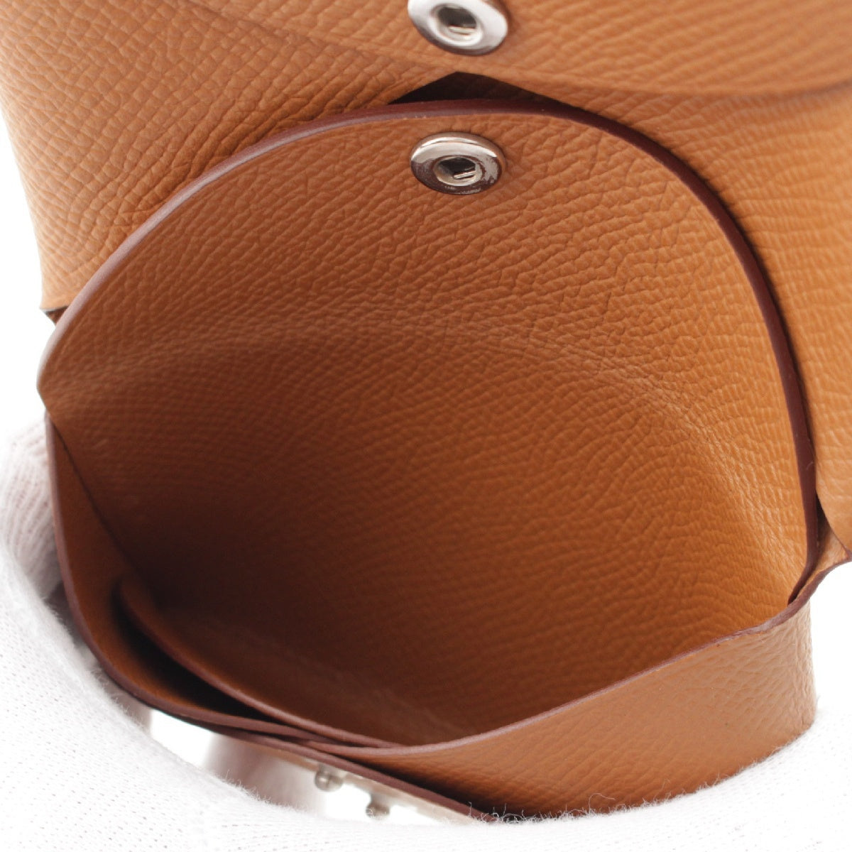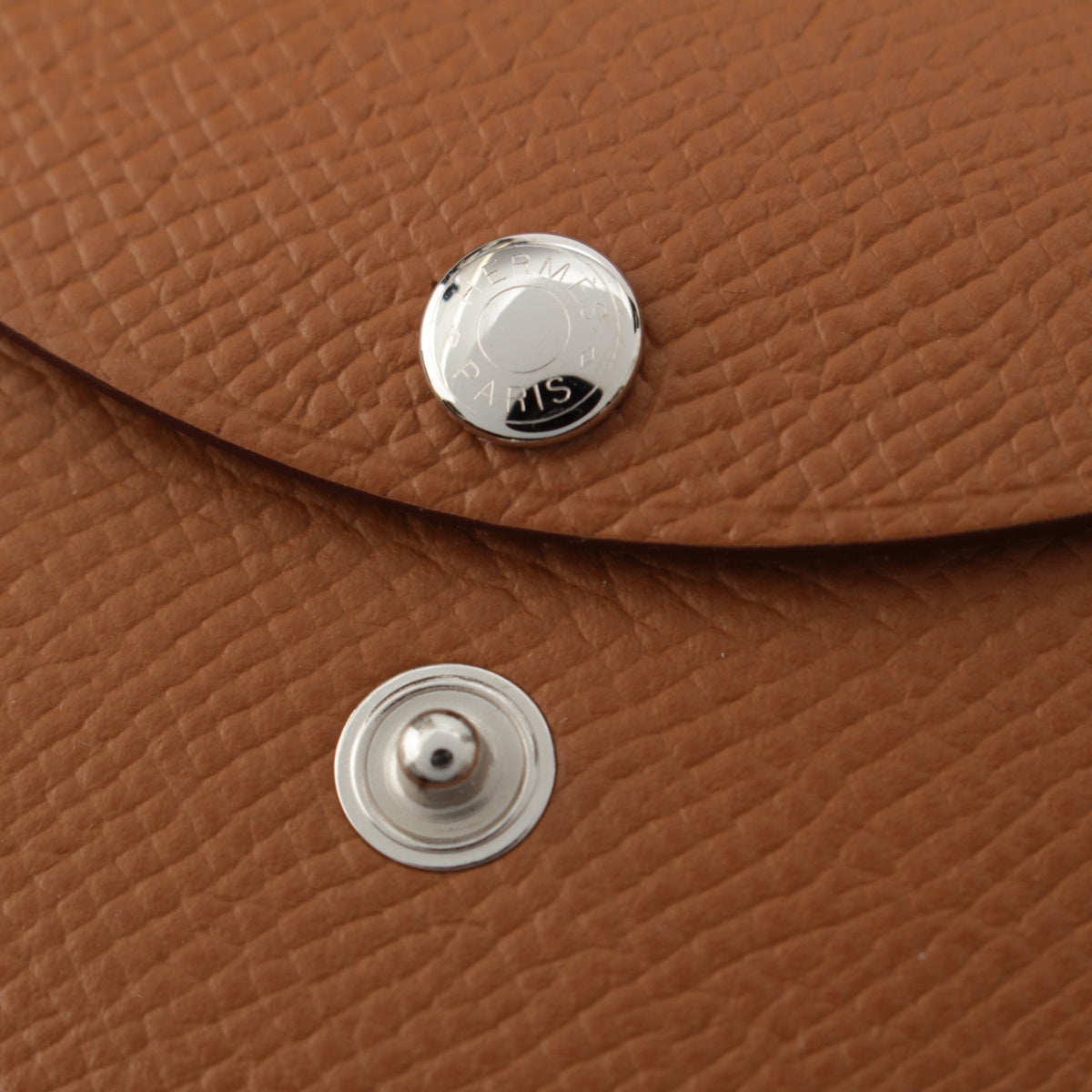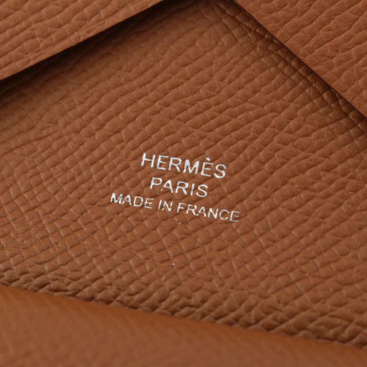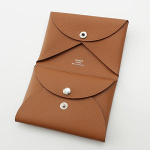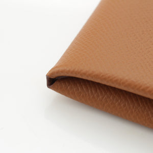 HERMES U engraved Calvi duo Epsom Coin case Coin Pocket Gold brown