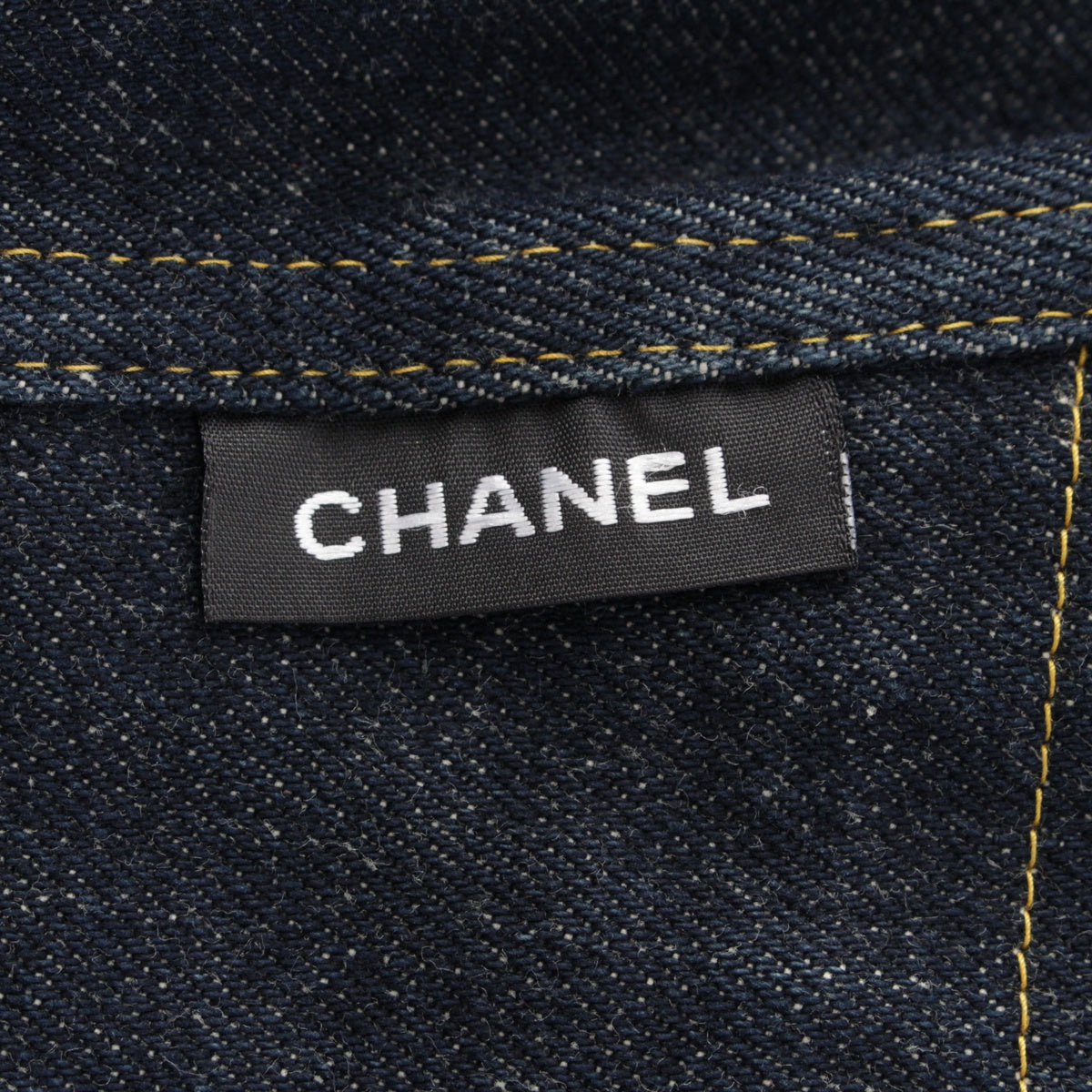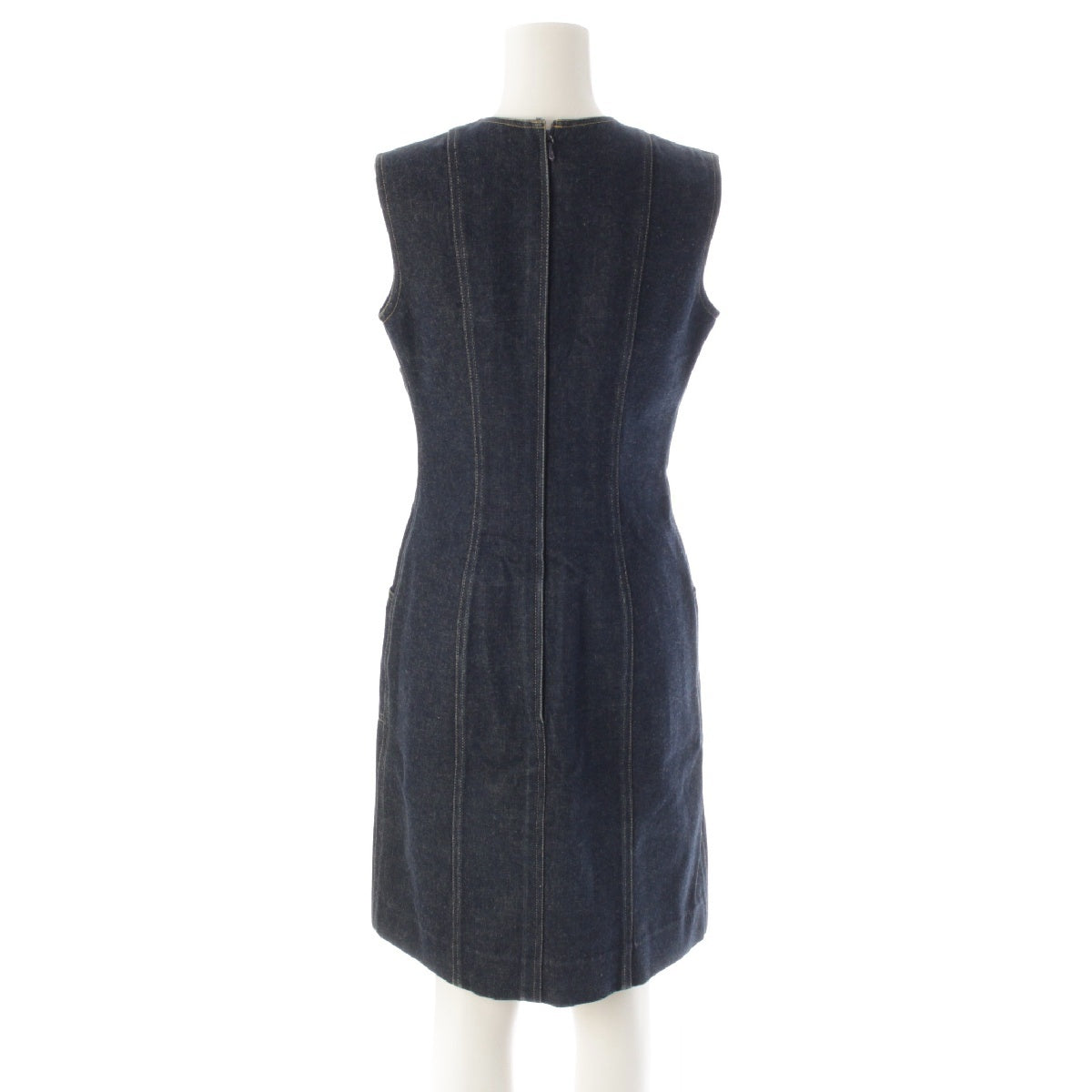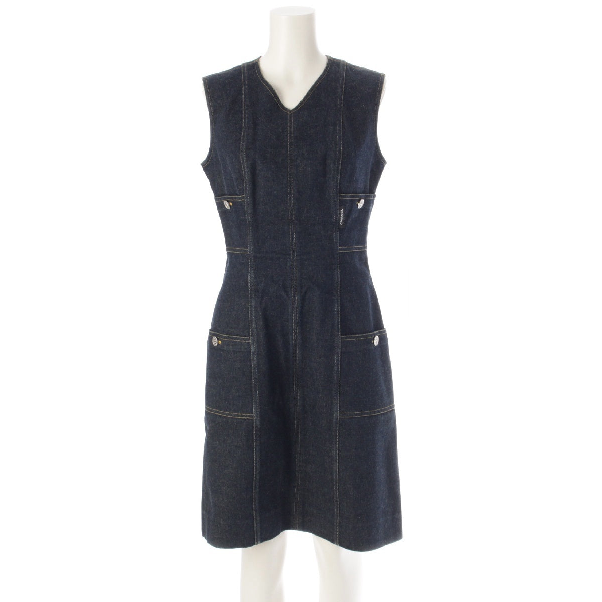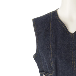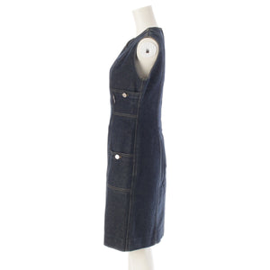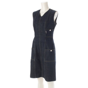 CHANEL 96/97 cotton COCO Button Stitch Design Denim one piece P07014 Indigo navy 38