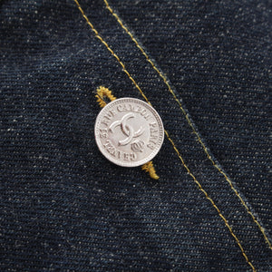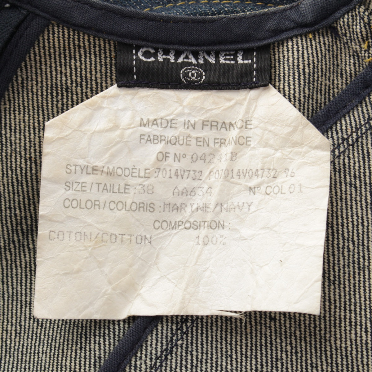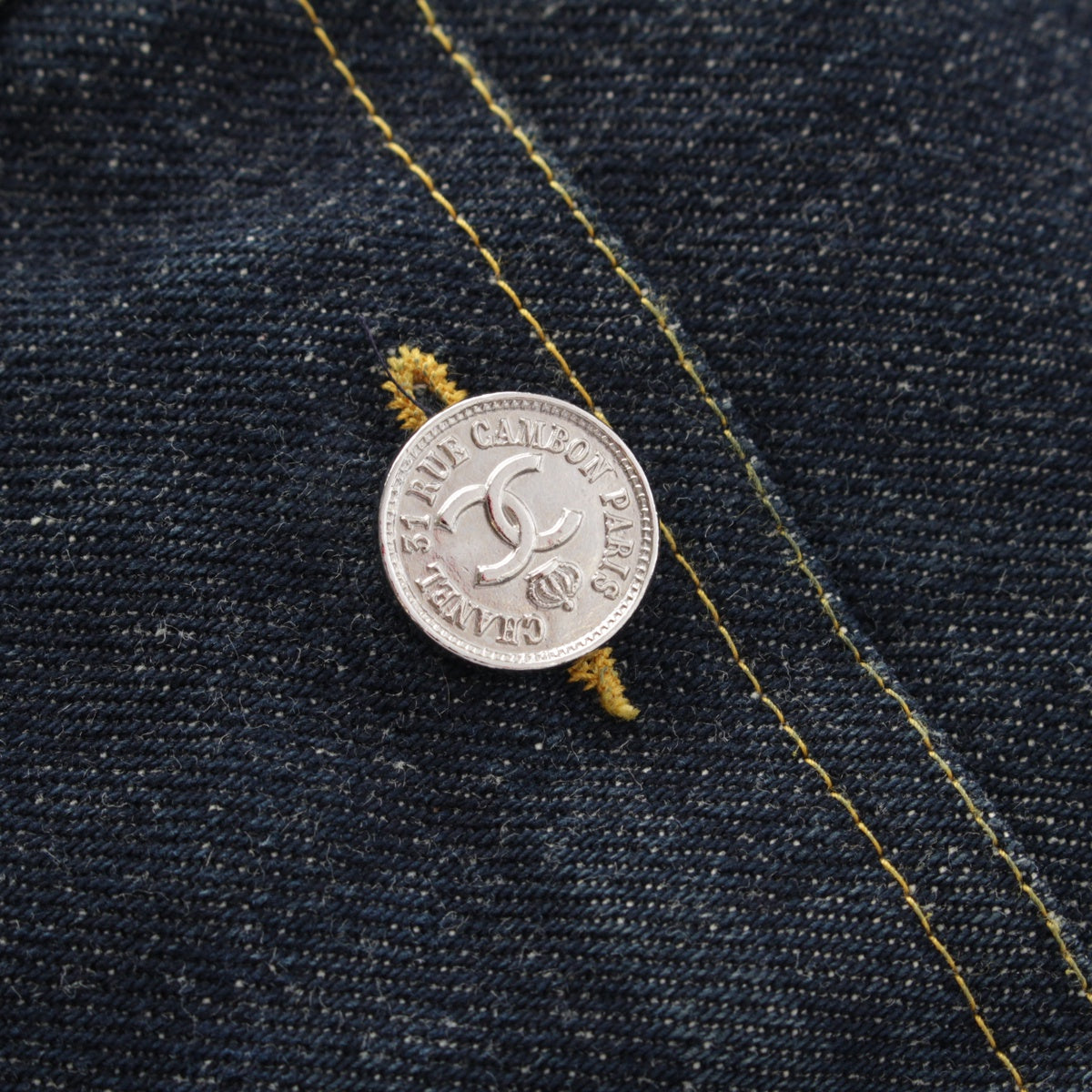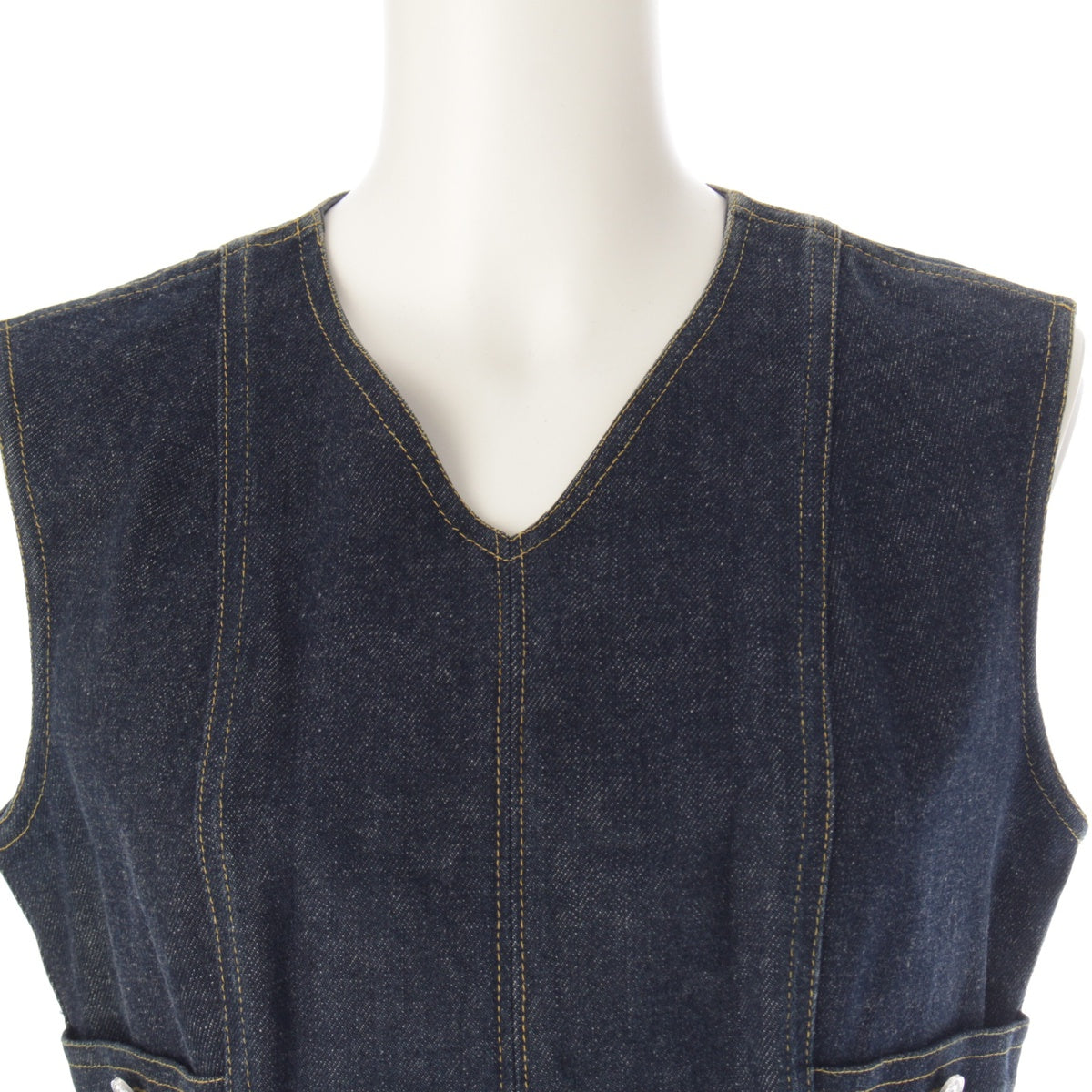 CHANEL 96/97 cotton COCO Button Stitch Design Denim one piece P07014 Indigo navy 38