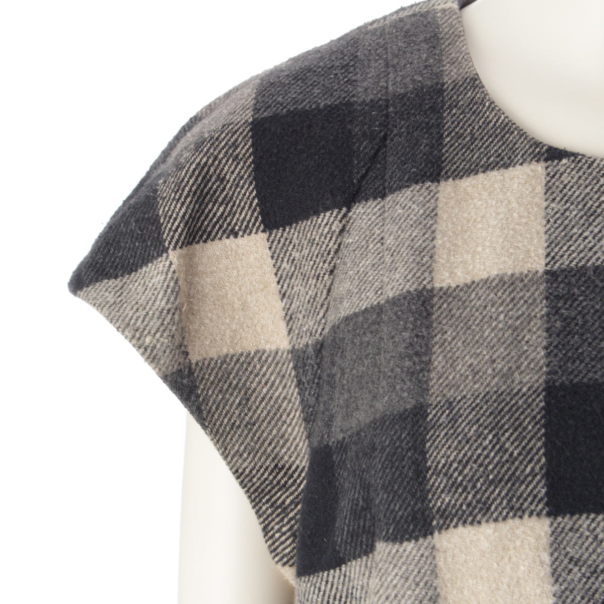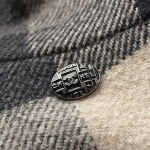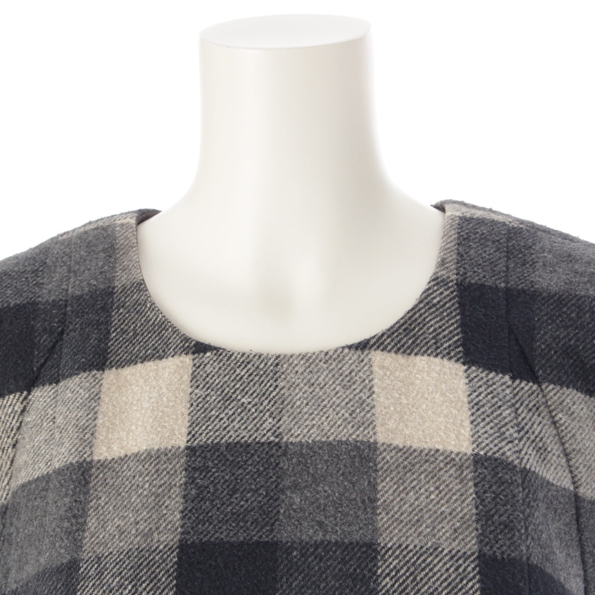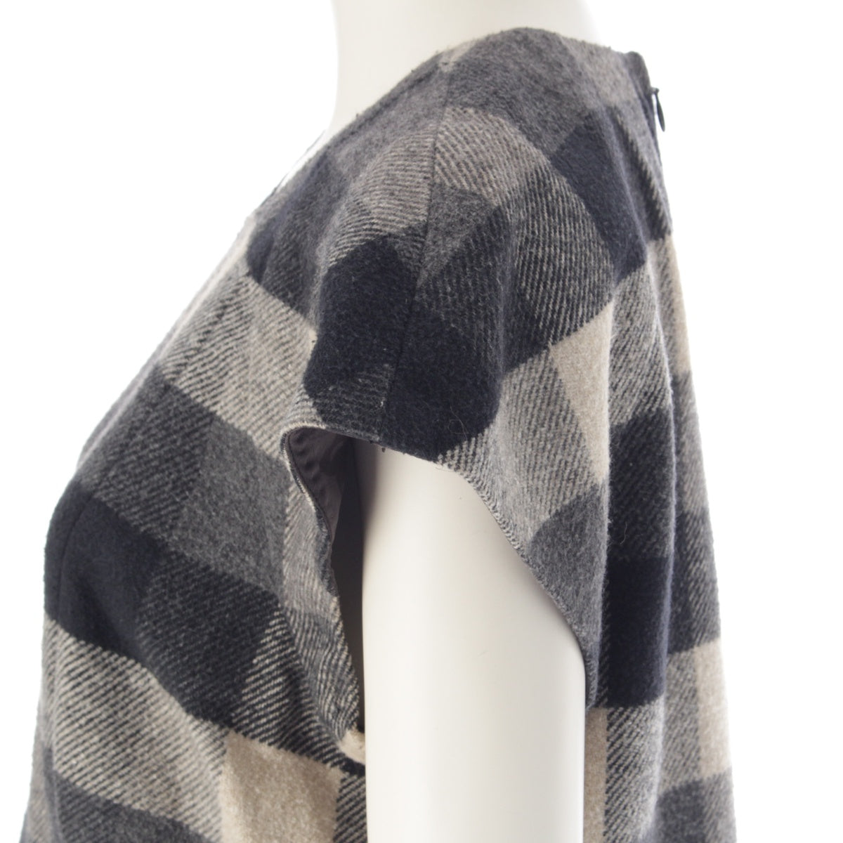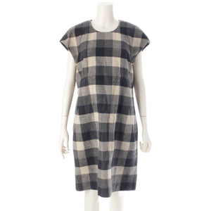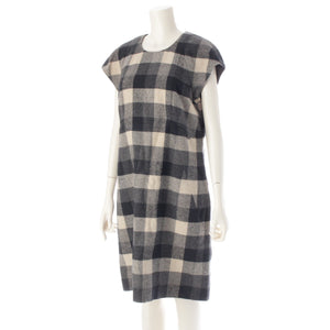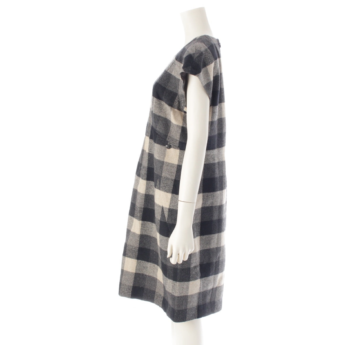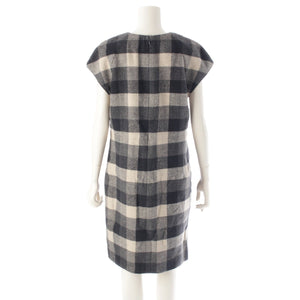 CHANEL cotton French Sleeve Check one piece dress P59543 Black x white 44