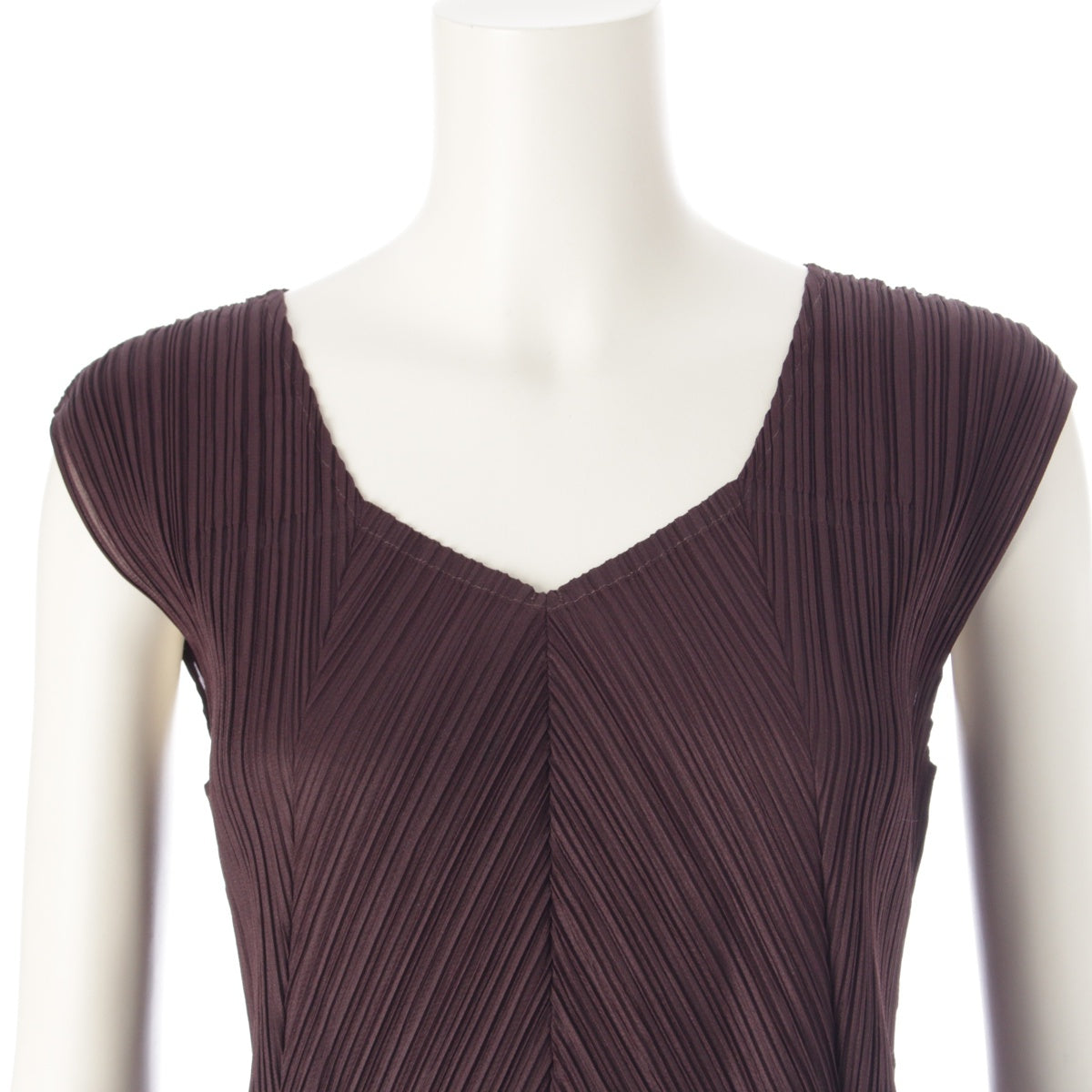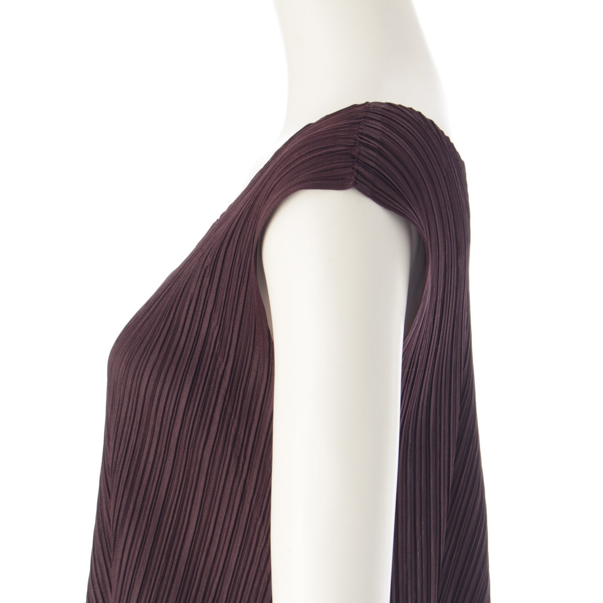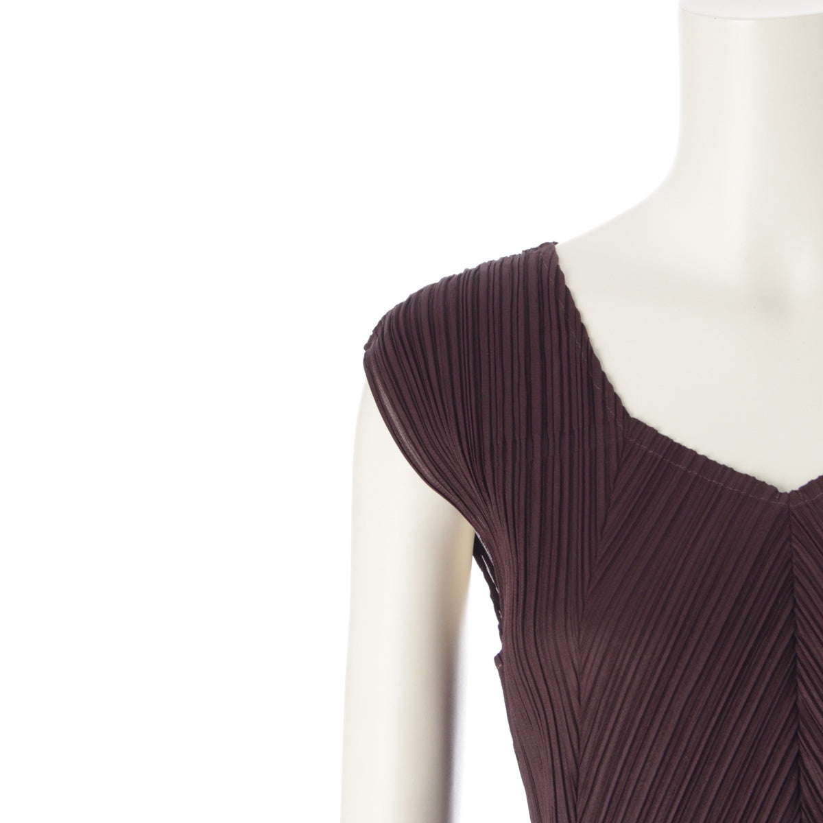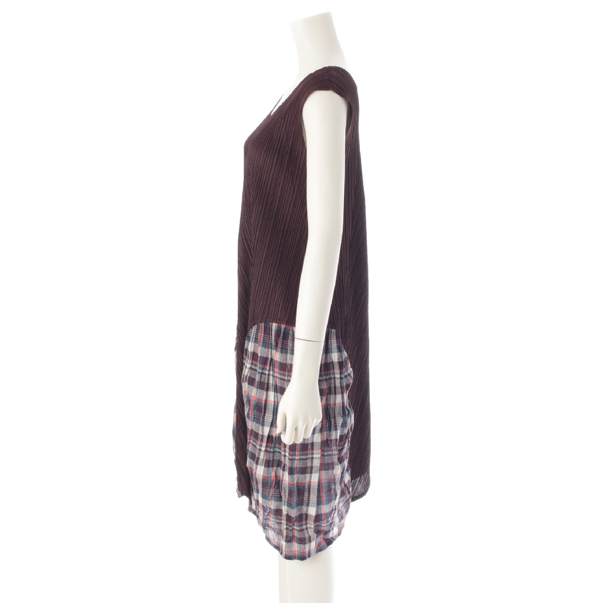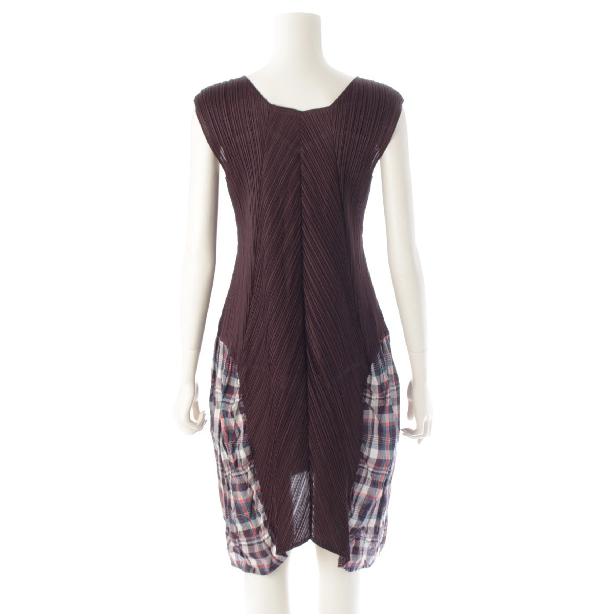PLEATS PLEASE ISSEY Different material switching check pattern sleeveless one piece dress PP03-JT565 Brown 3