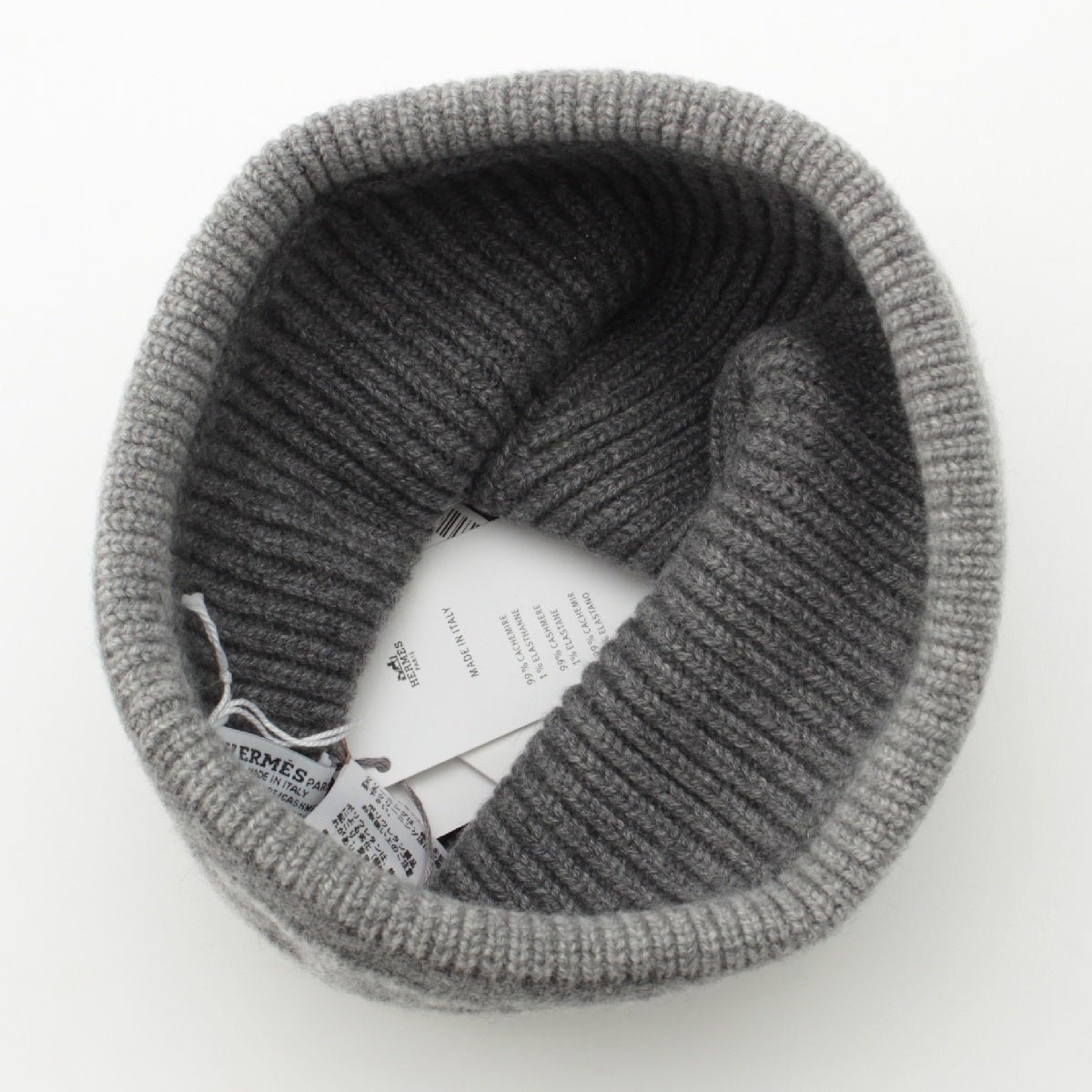 HERMES Haven cashmere Chéne Dunkel Knit cap Hat beanie gray M
