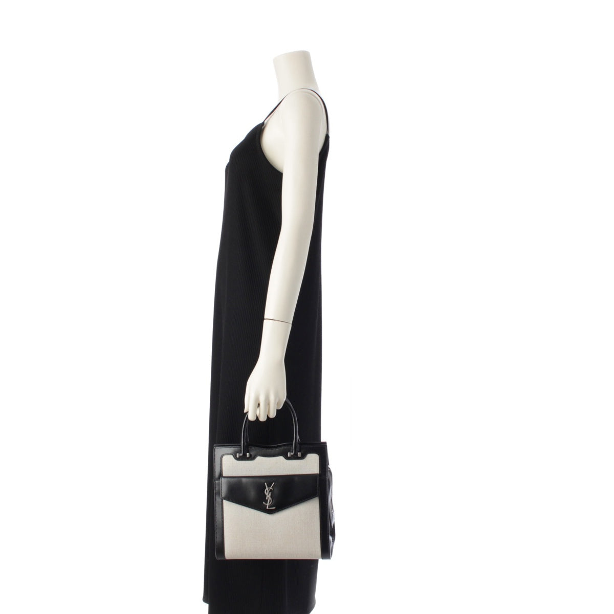 SAINT LAURENT Canvas leather Updown YSL logo 2way handbag Shoulder Bag bag 561203 Black White