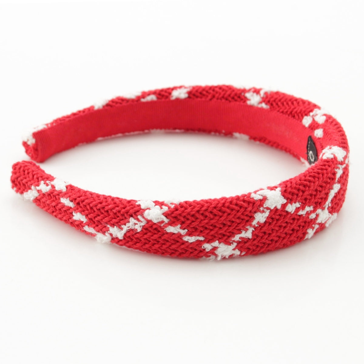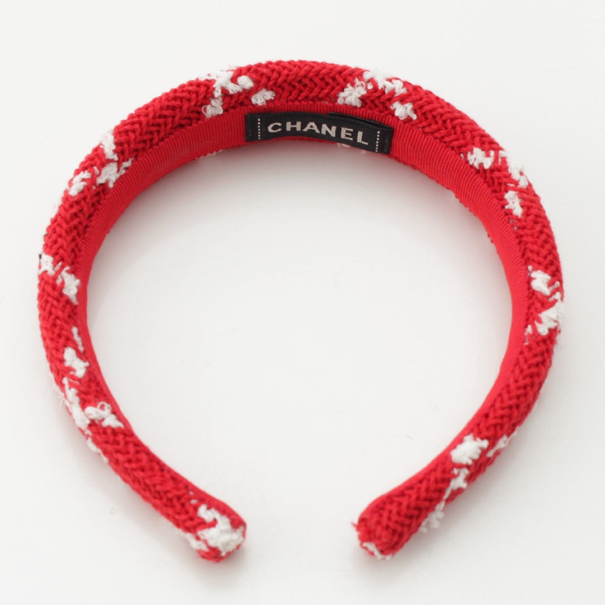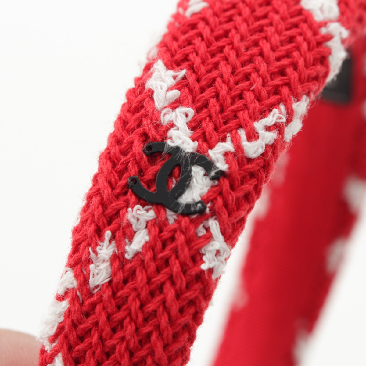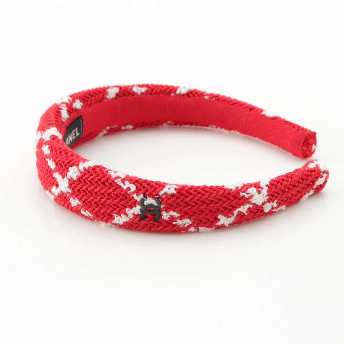 CHANEL tweed COCO Mark Katyusha hair accessory band Red
