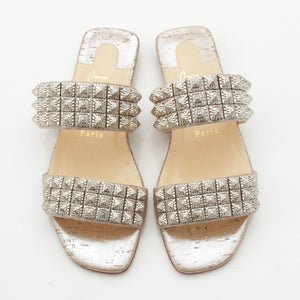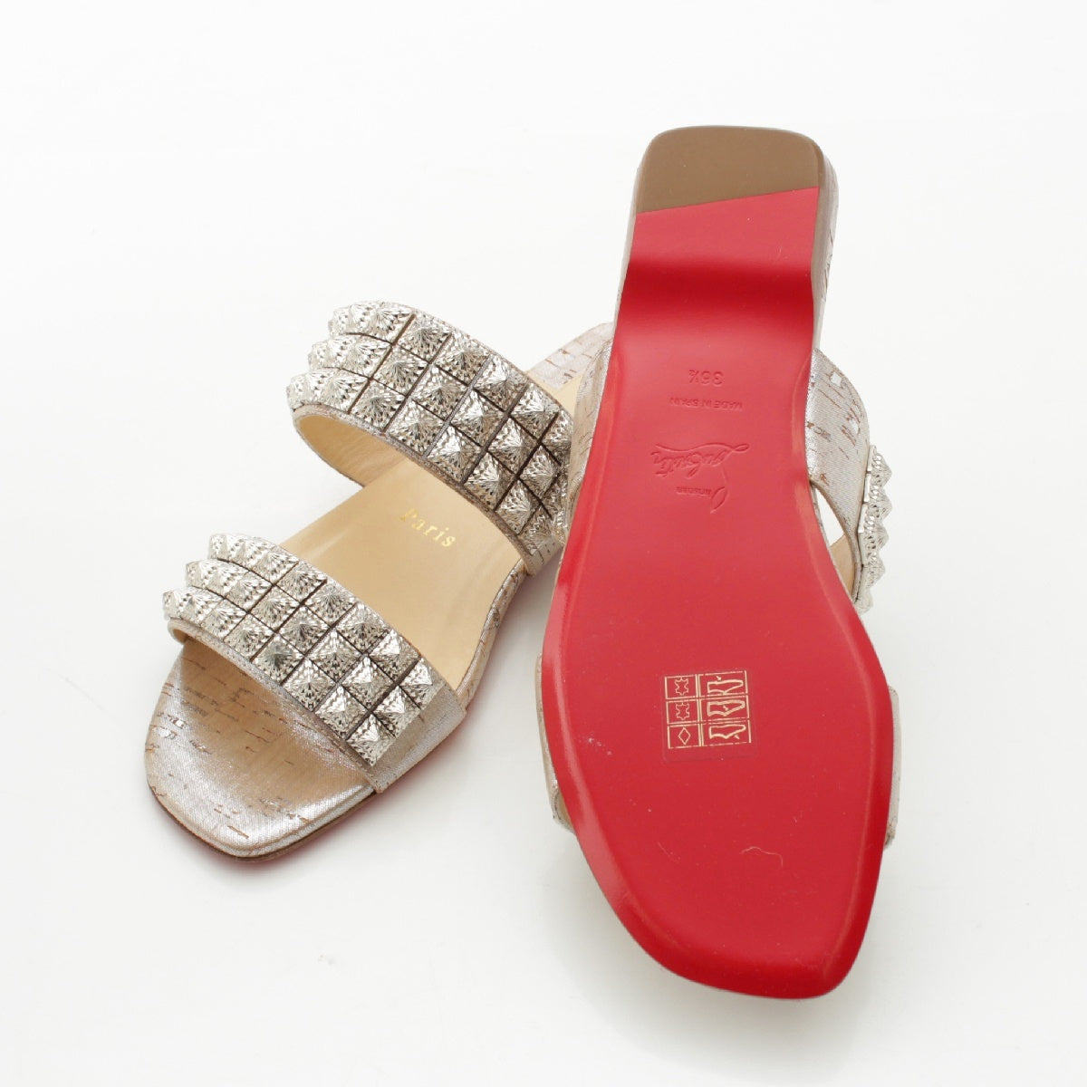 Christian Louboutin MYRIADIAM FLAT Studs flat Sandals Mule Silver 36 1/2
