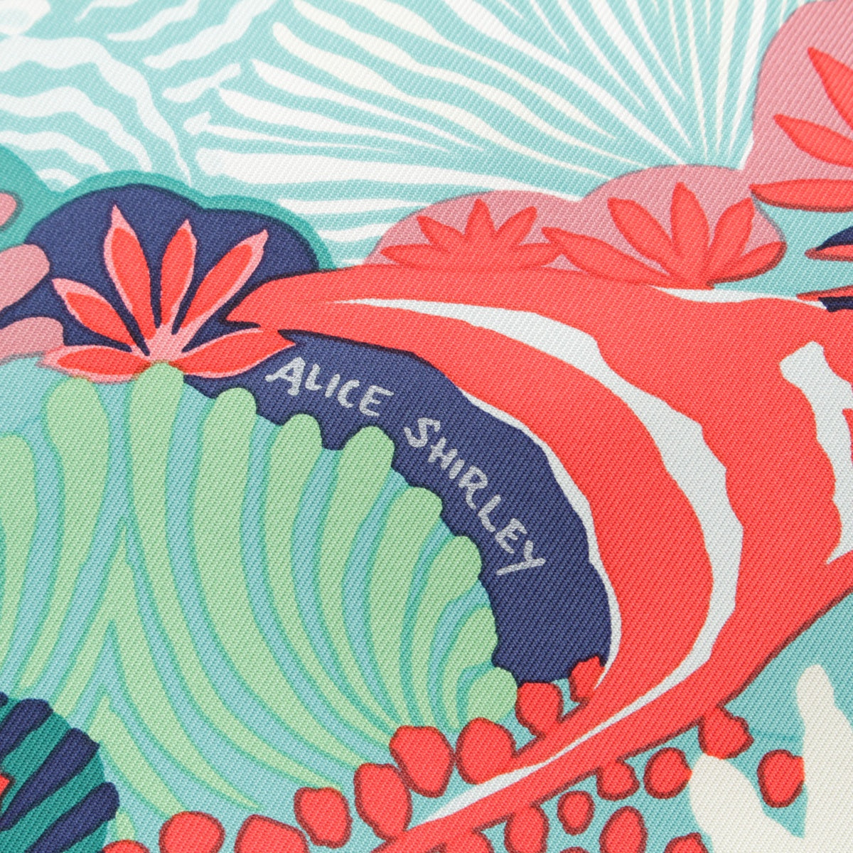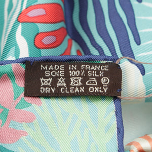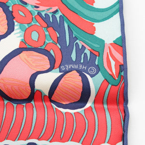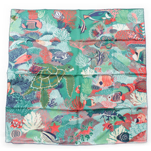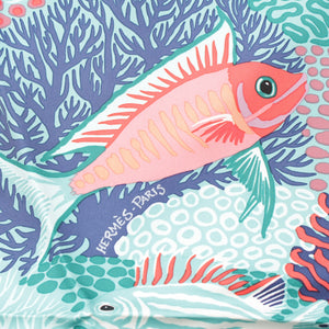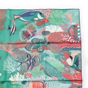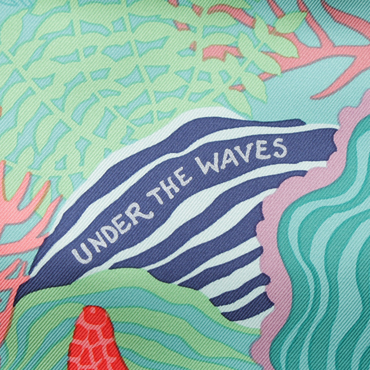HERMES Calle 90 silk UNDER THE WAVES scarf Fish Seaweed green