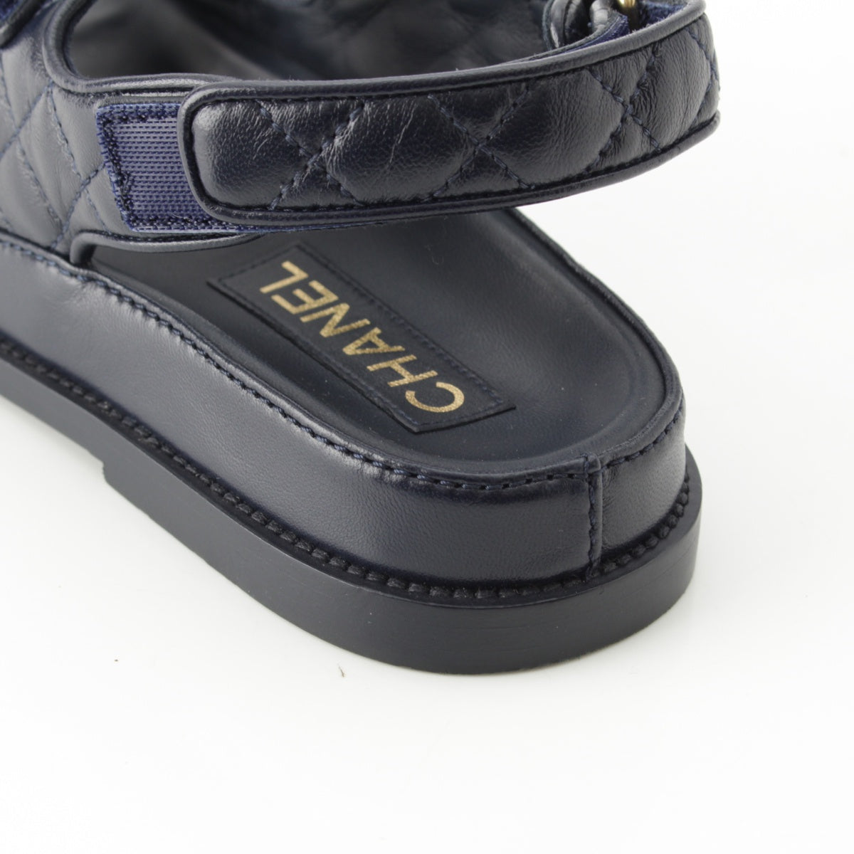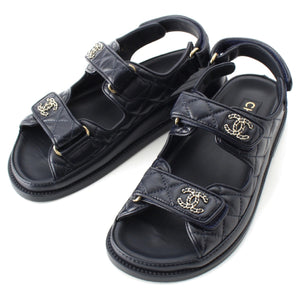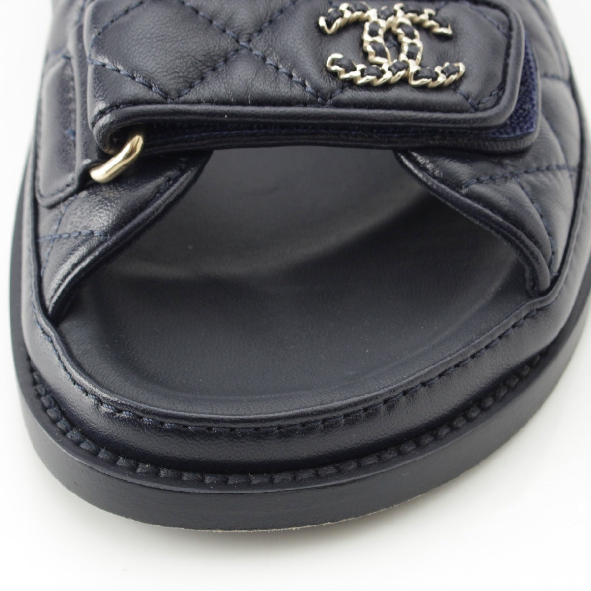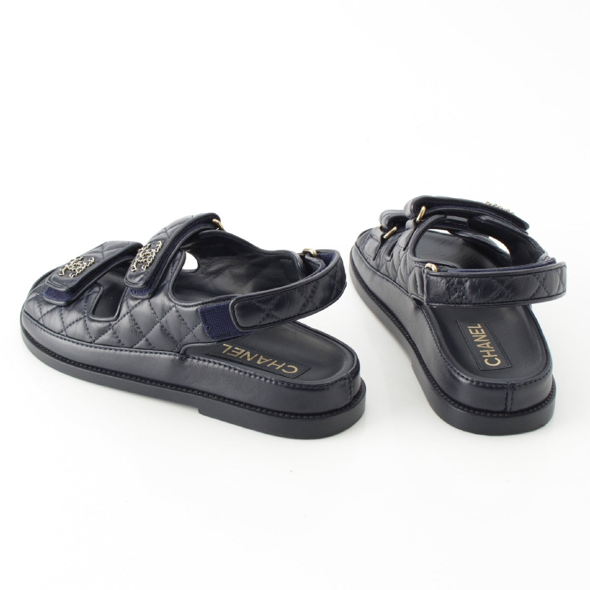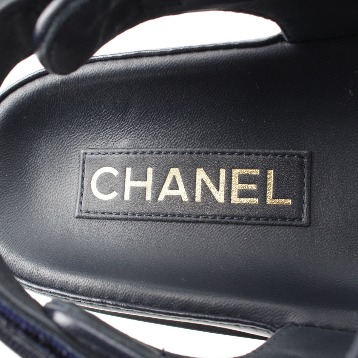 CHANEL leather COCO Mark Matelasse Hood Head Sandals shoes G35927 Navy 37