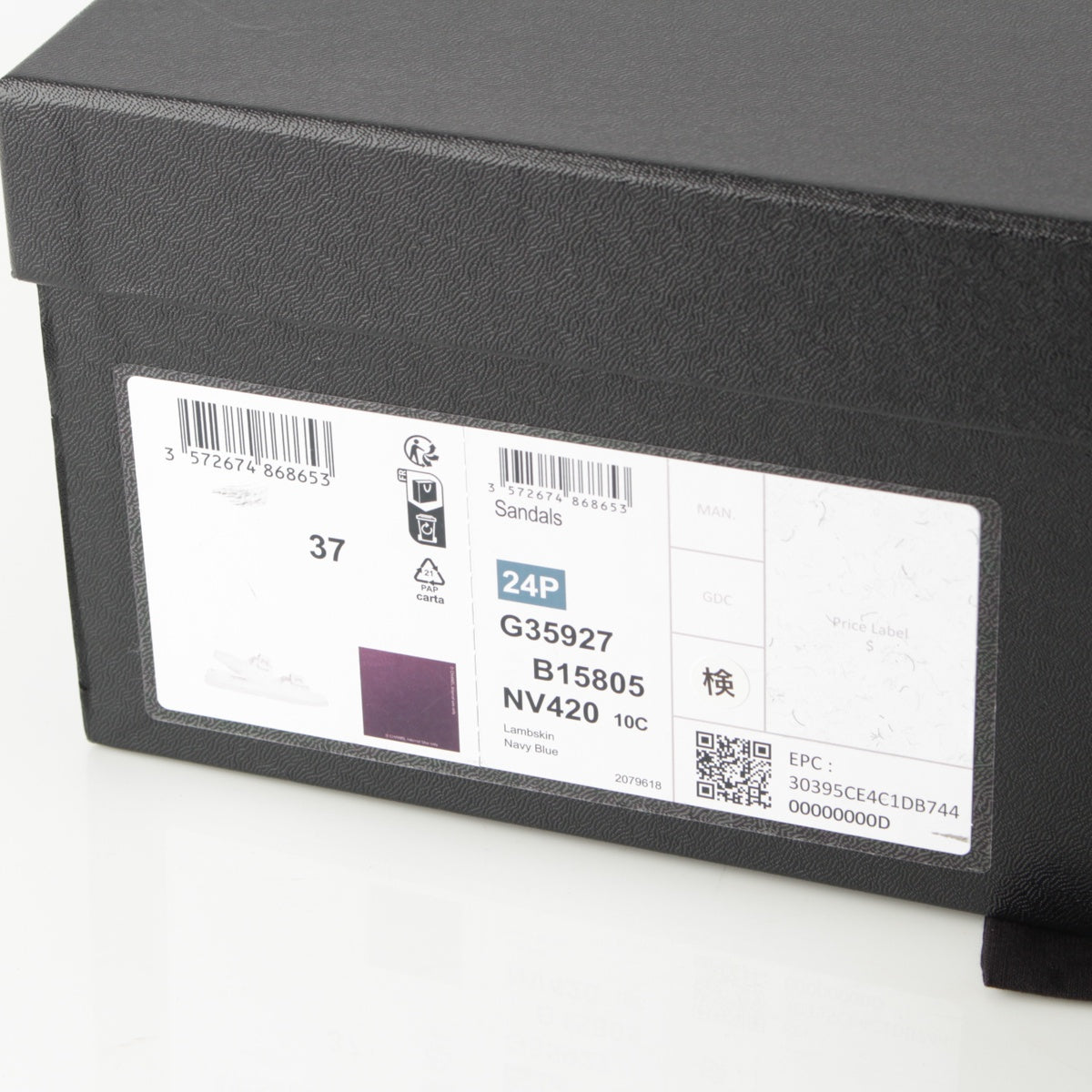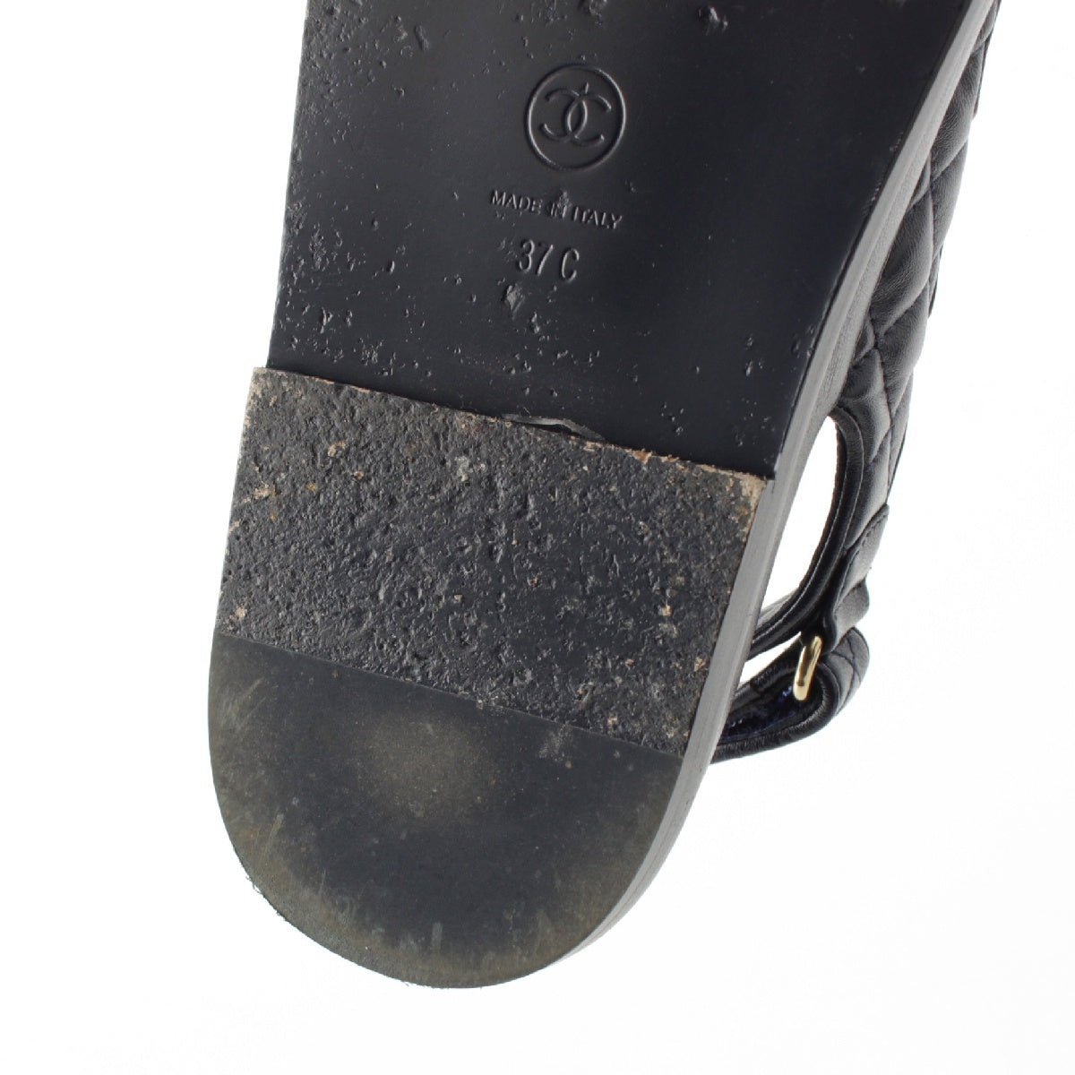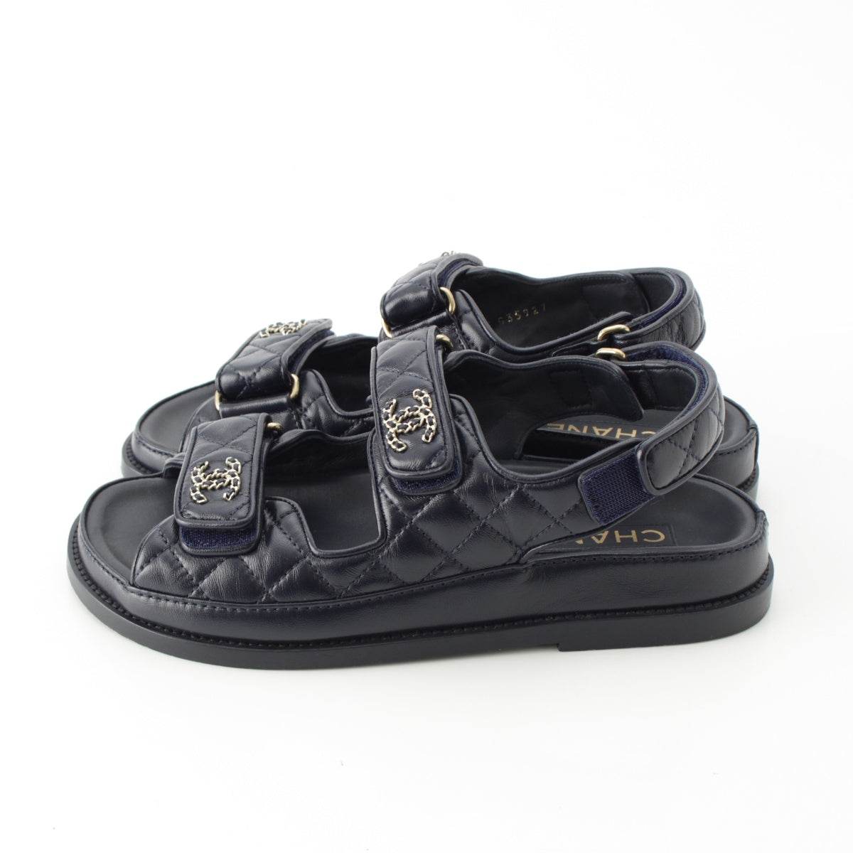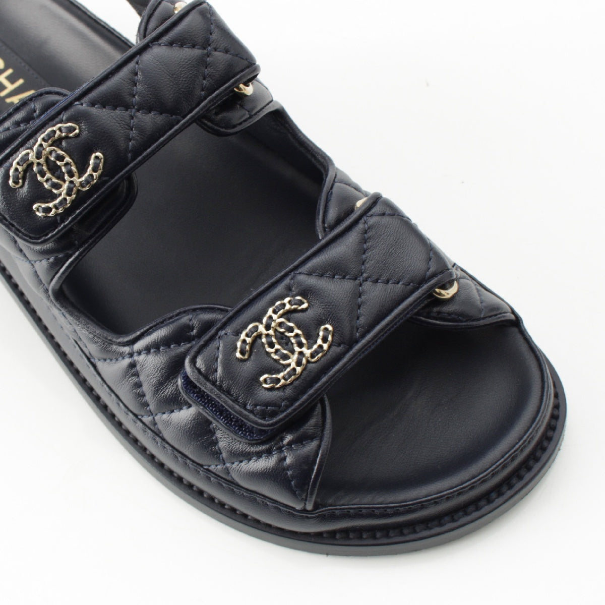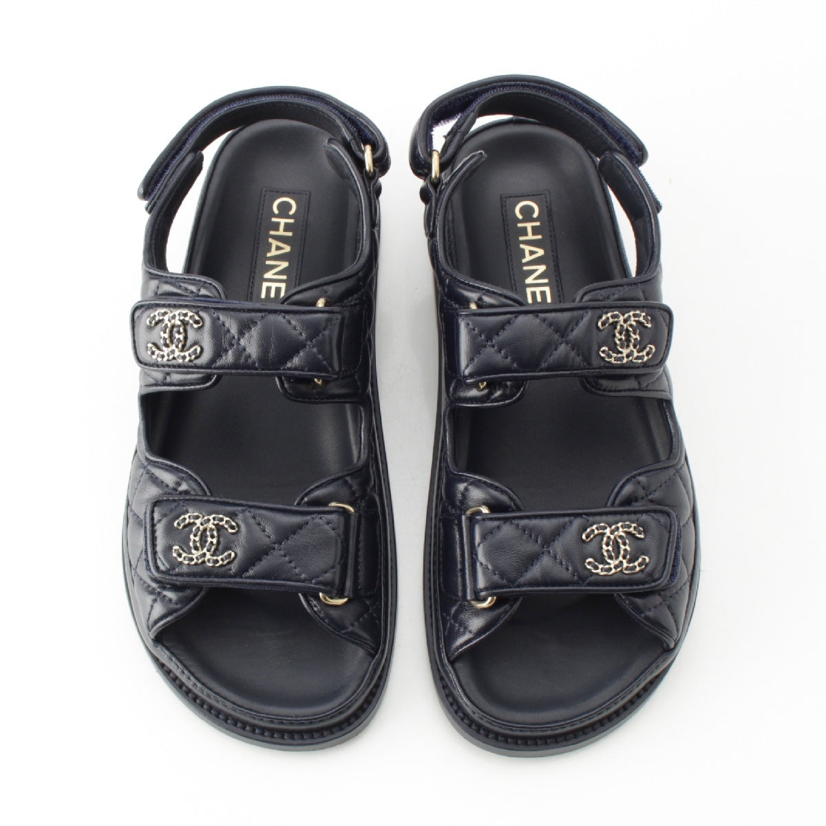 CHANEL leather COCO Mark Matelasse Hood Head Sandals shoes G35927 Navy 37
