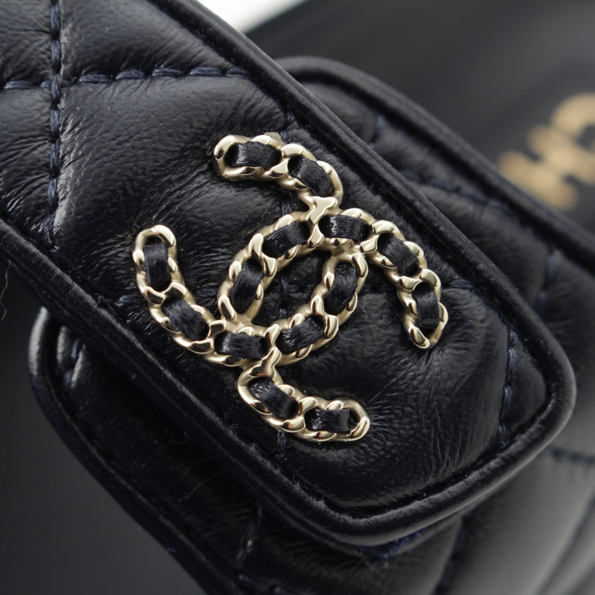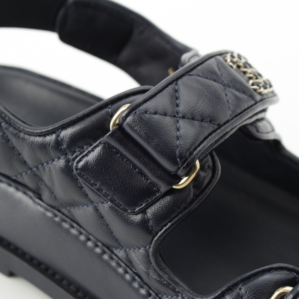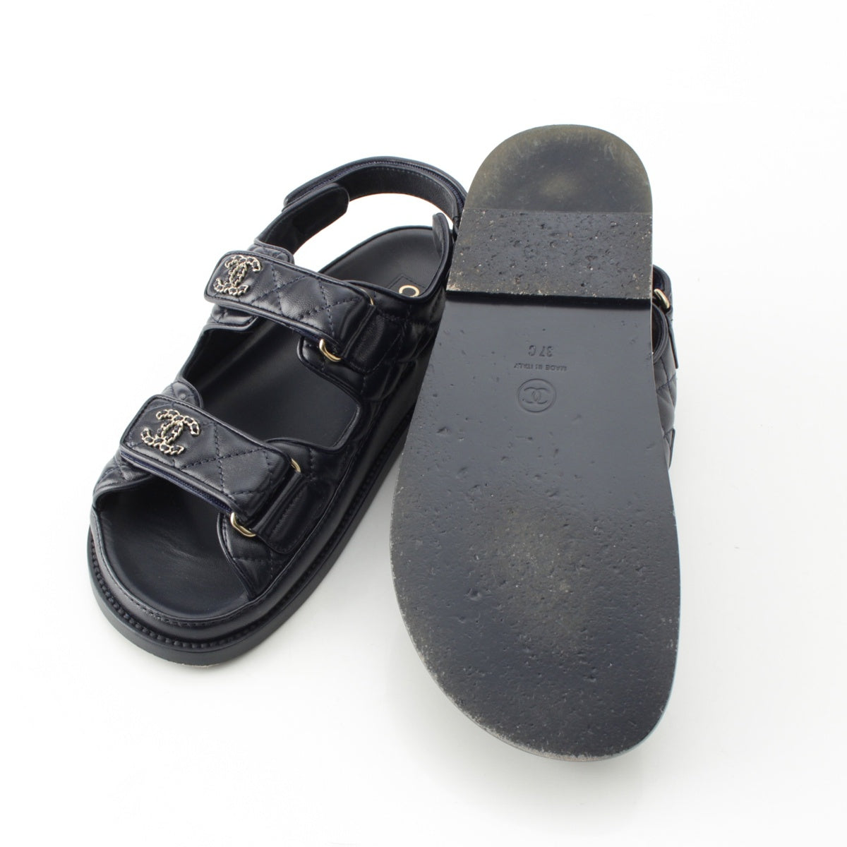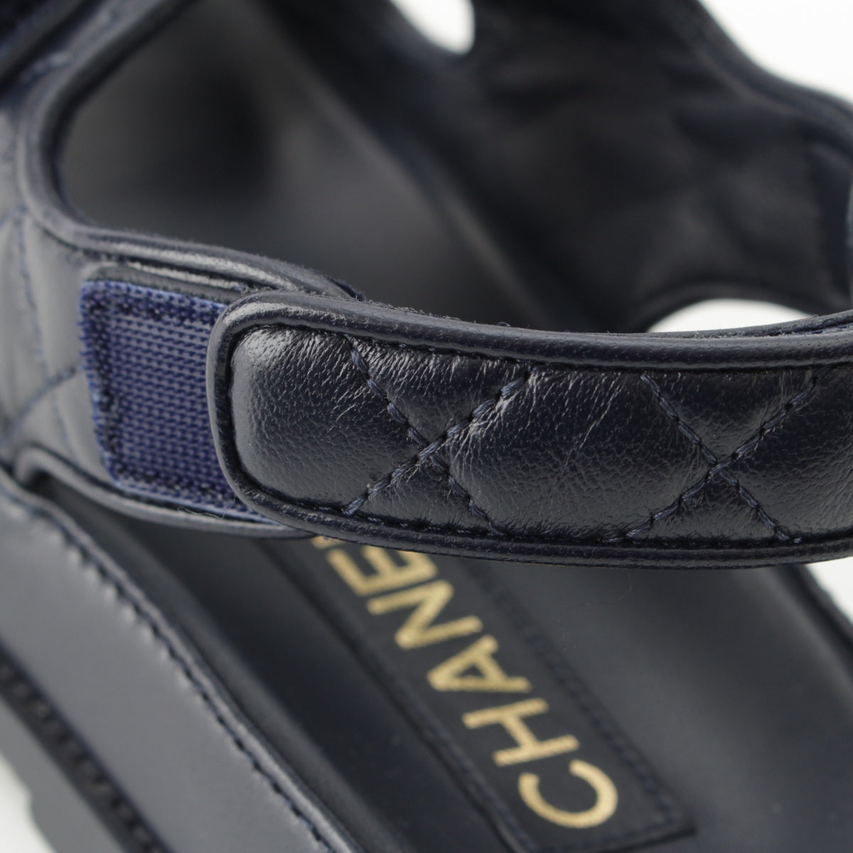 CHANEL leather COCO Mark Matelasse Hood Head Sandals shoes G35927 Navy 37