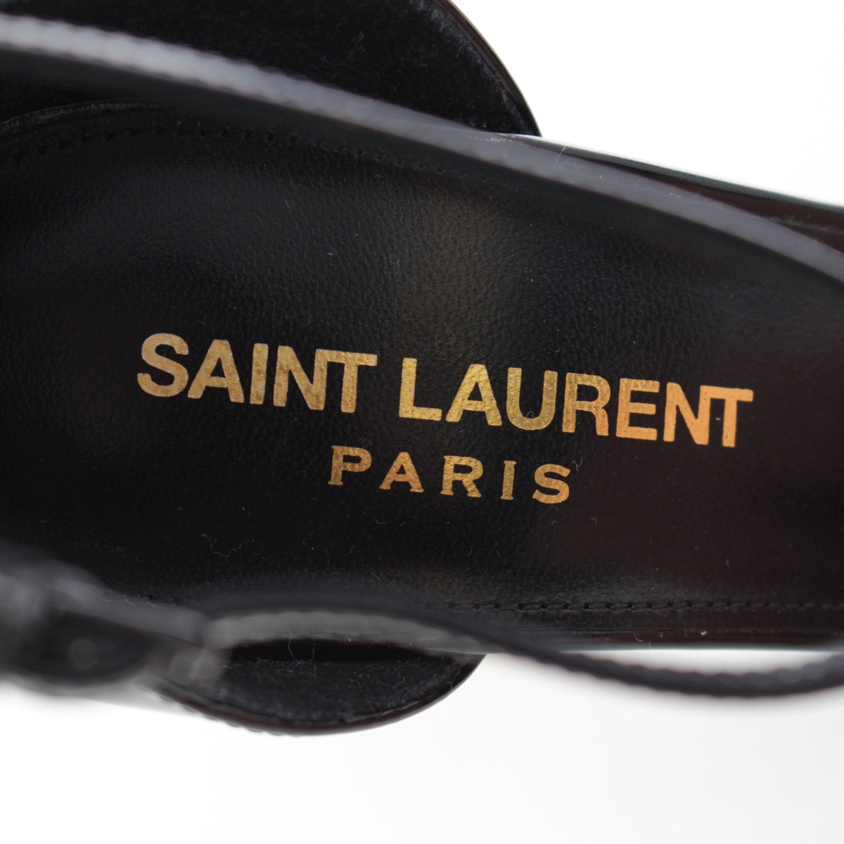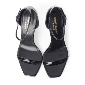 SAINT LAURENT patent logo ankle strap heels Sandals black 35