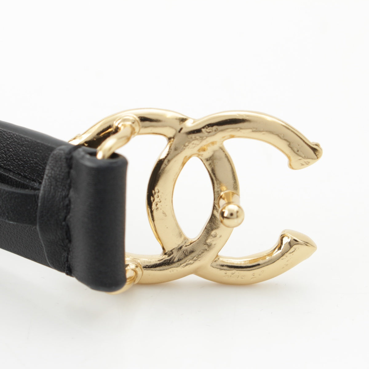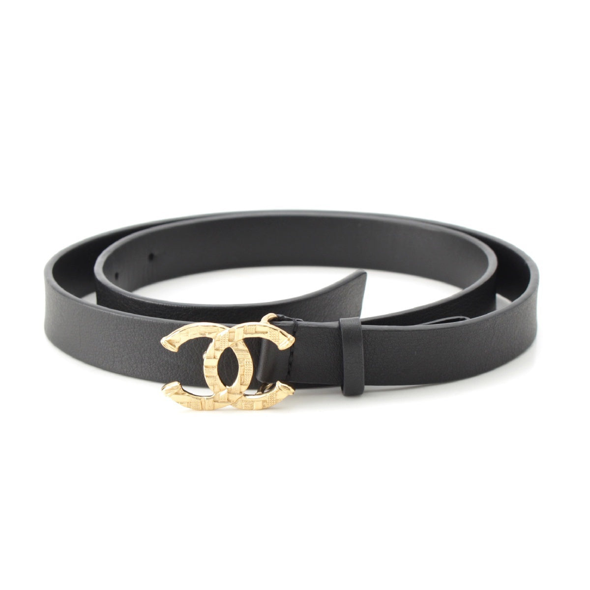 CHANEL A23A COCO Mark Buckle belt Black Gold Metal 80/32