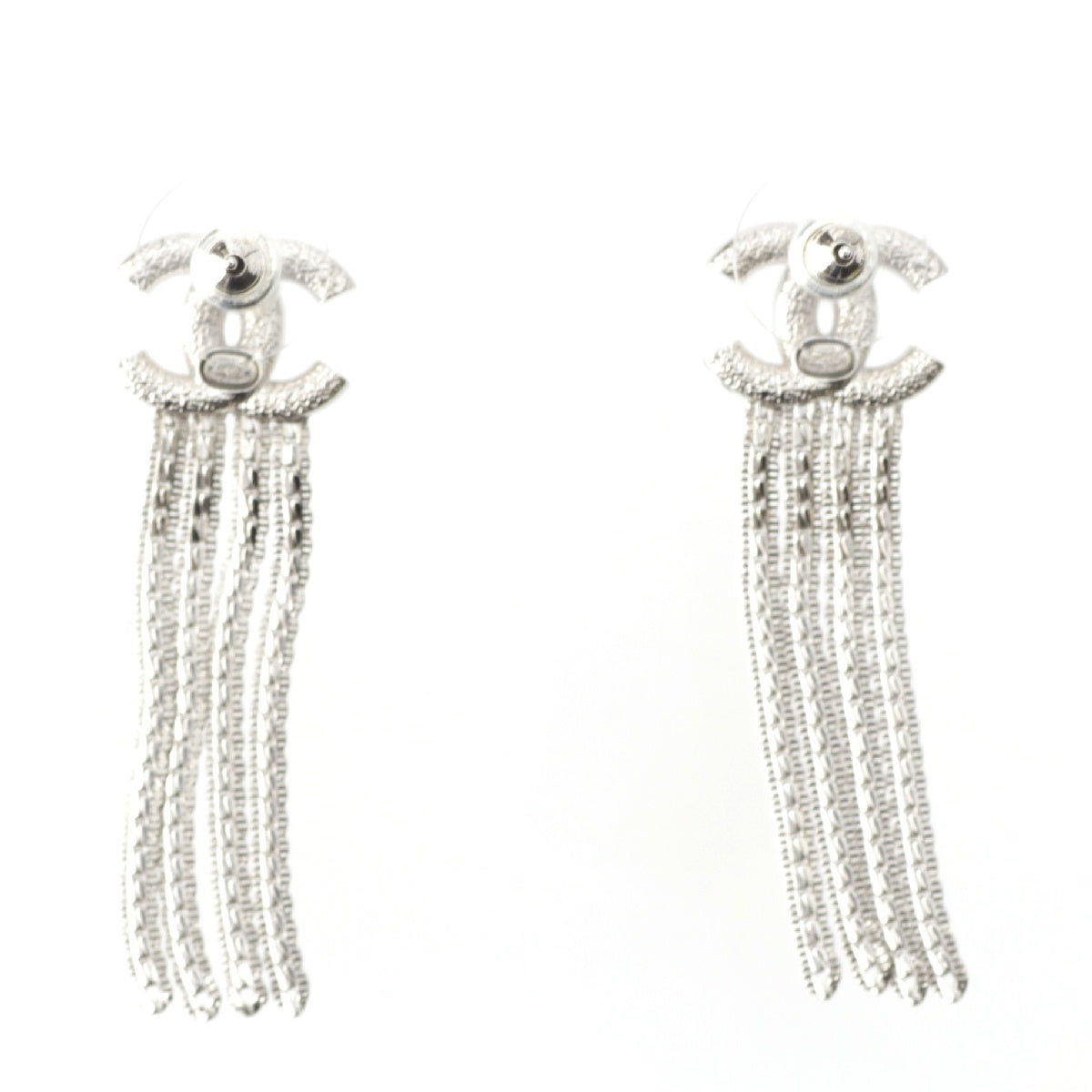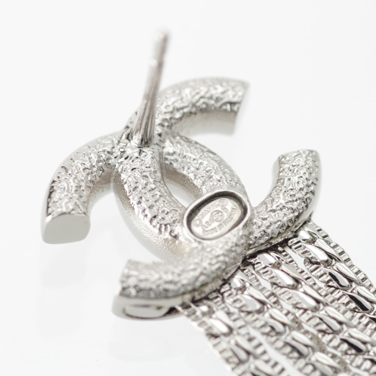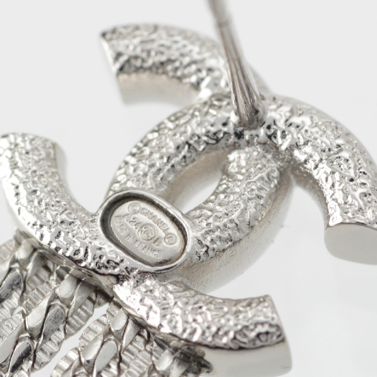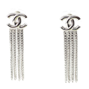 CHANEL Gold Plated COCO Mark Fringe Pierce Accessories A24 B Silver