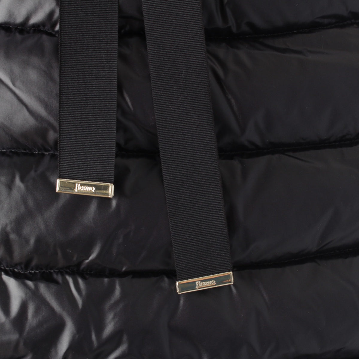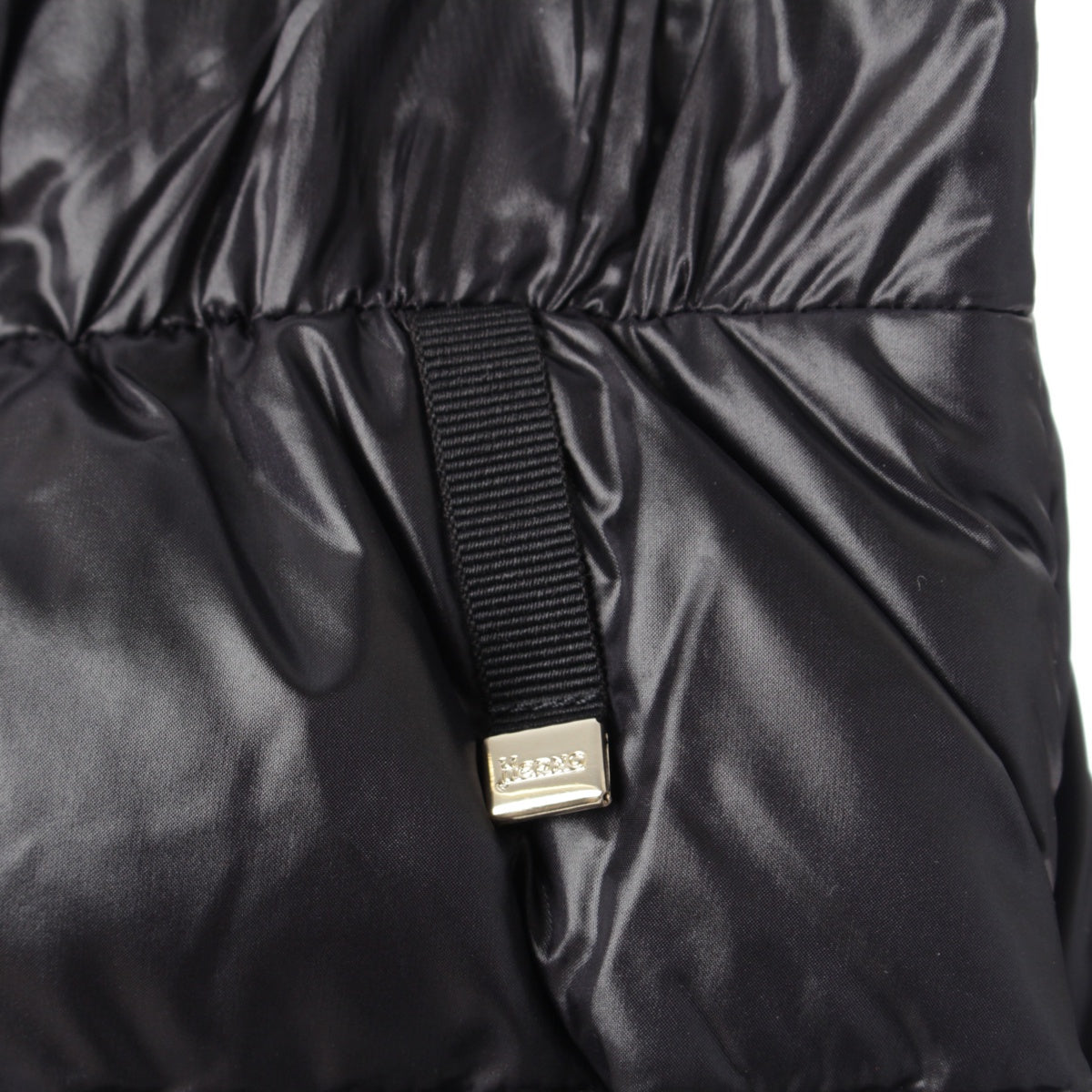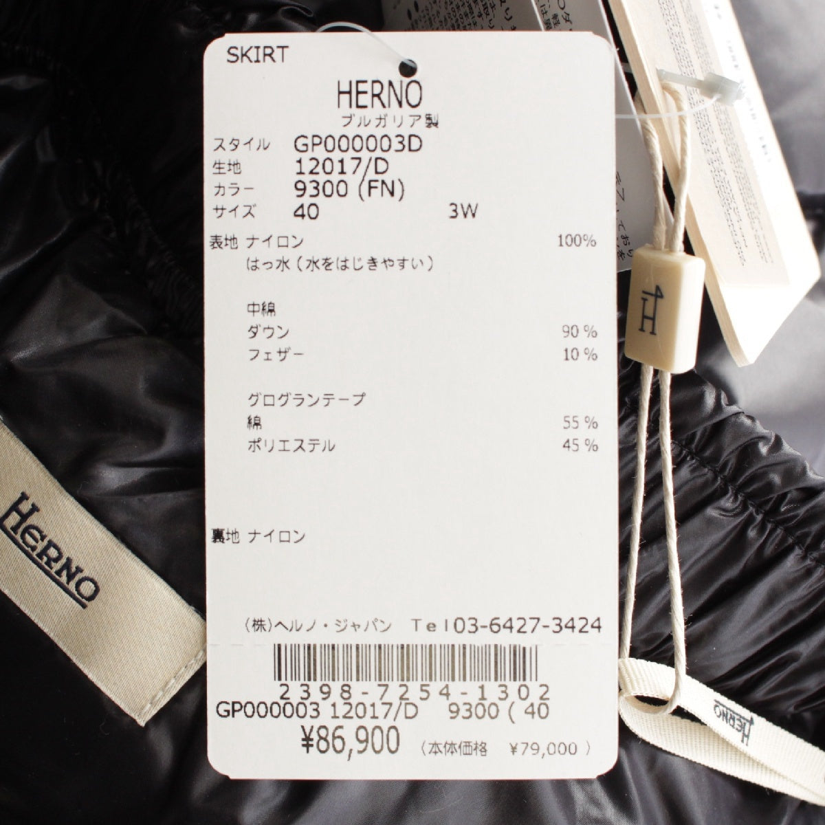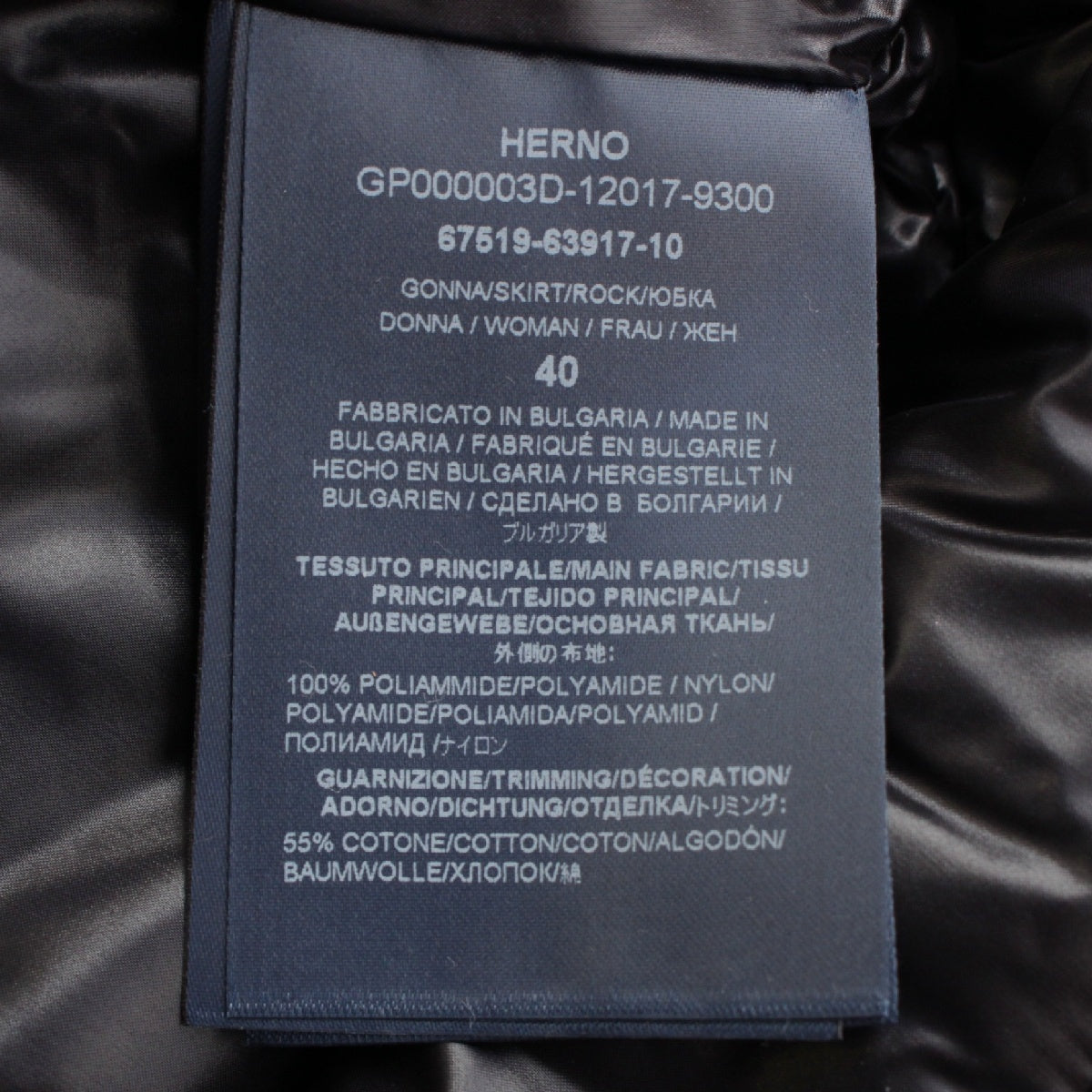 Herno Nylon down ribbon Mini skirt Logo engraving GP000003D Black Silver Metal 40