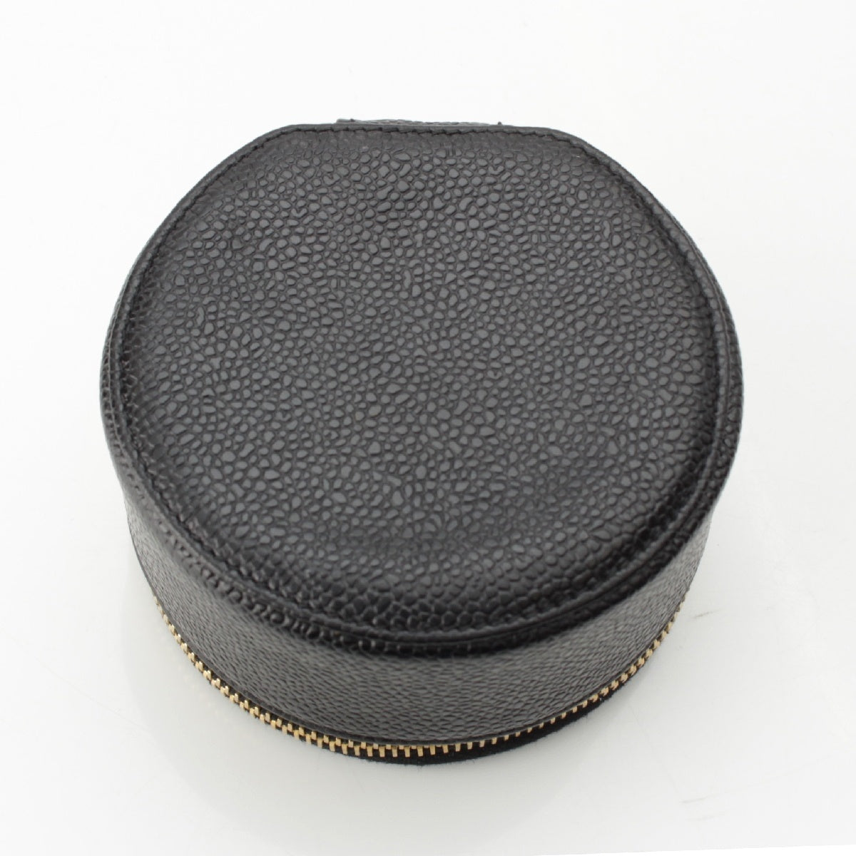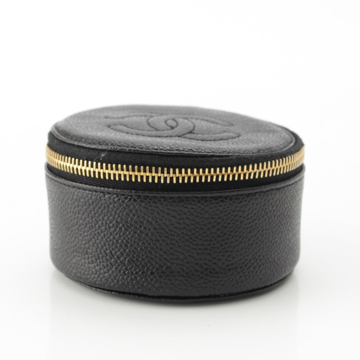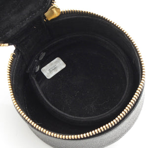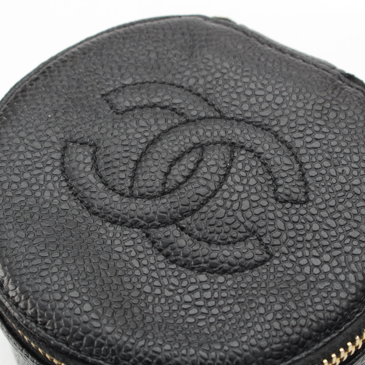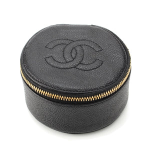 CHANEL Caviar skin Vintage COCO Mark Round Accessory pouch Jewelry case Black Gold Metal Big