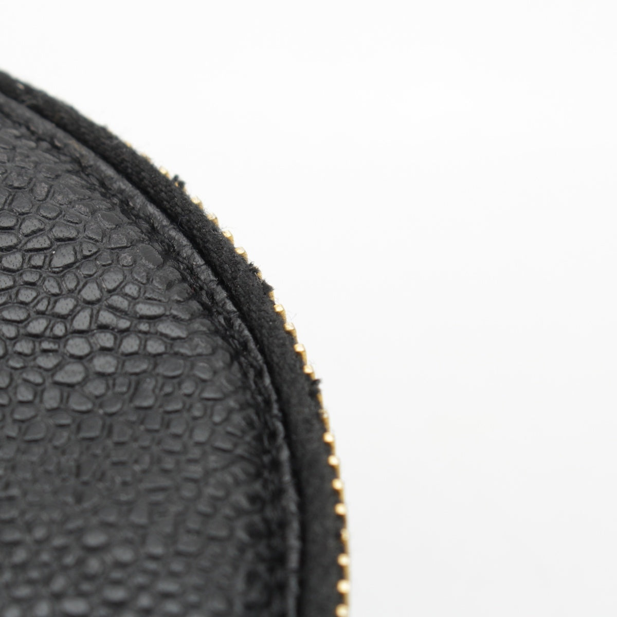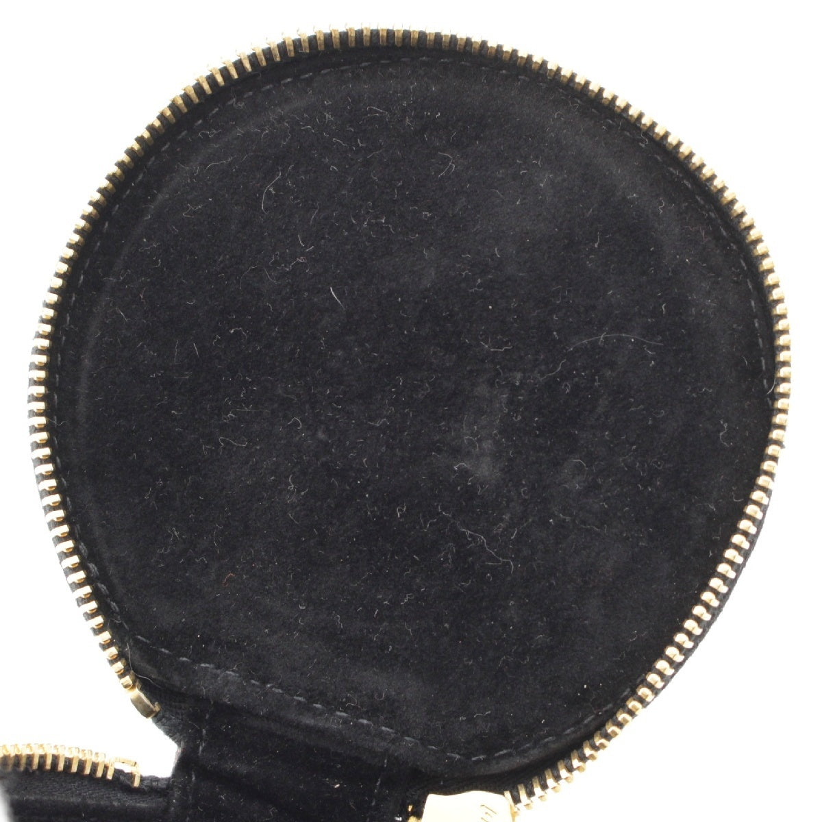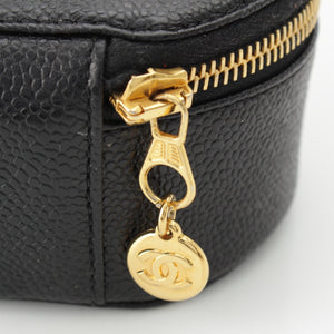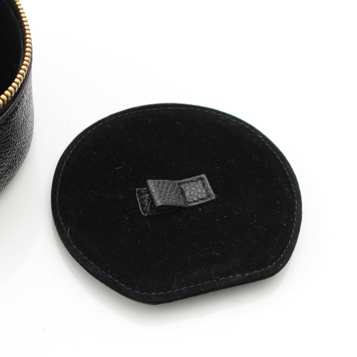 CHANEL Caviar skin Vintage COCO Mark Round Accessory pouch Jewelry case Black Gold Metal Big