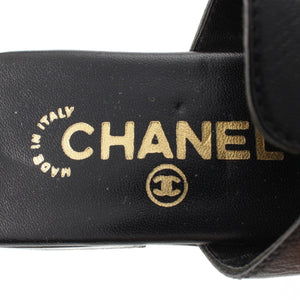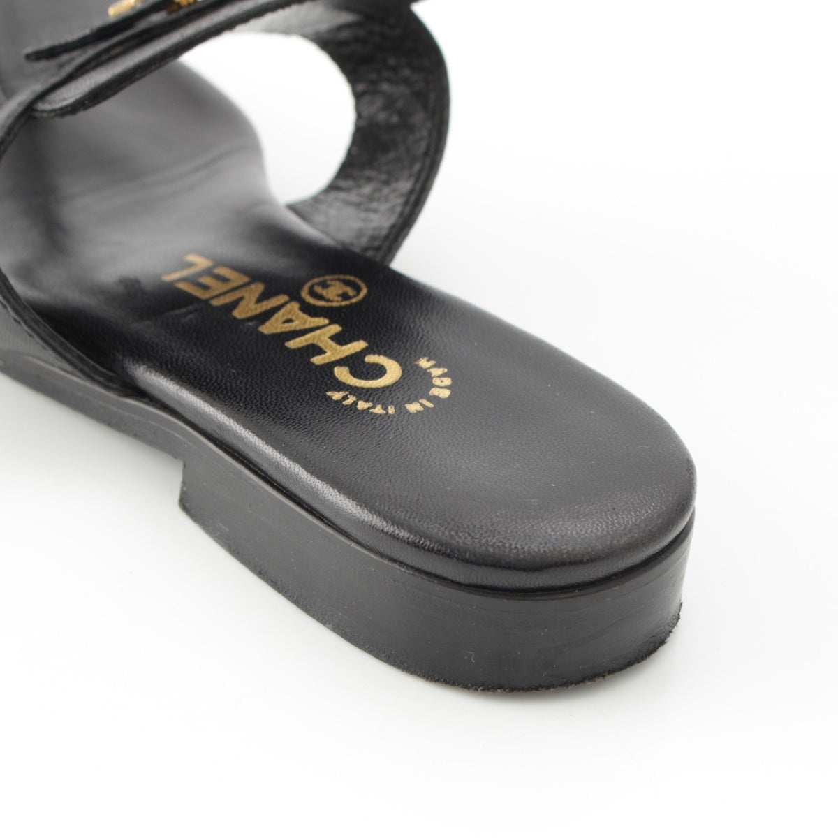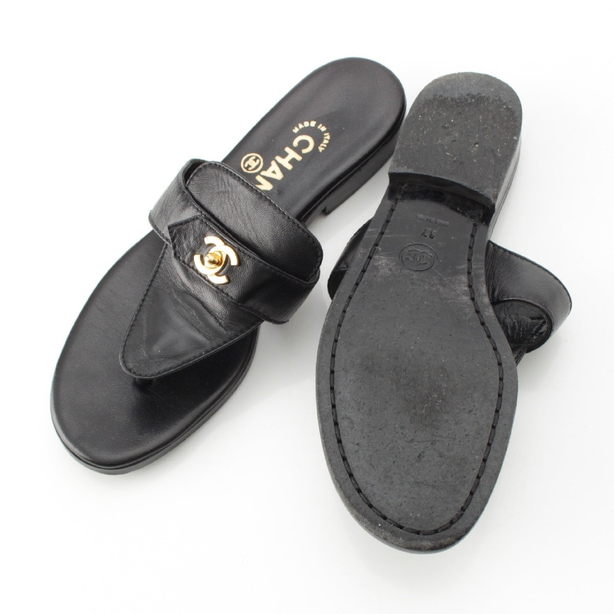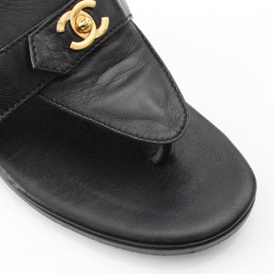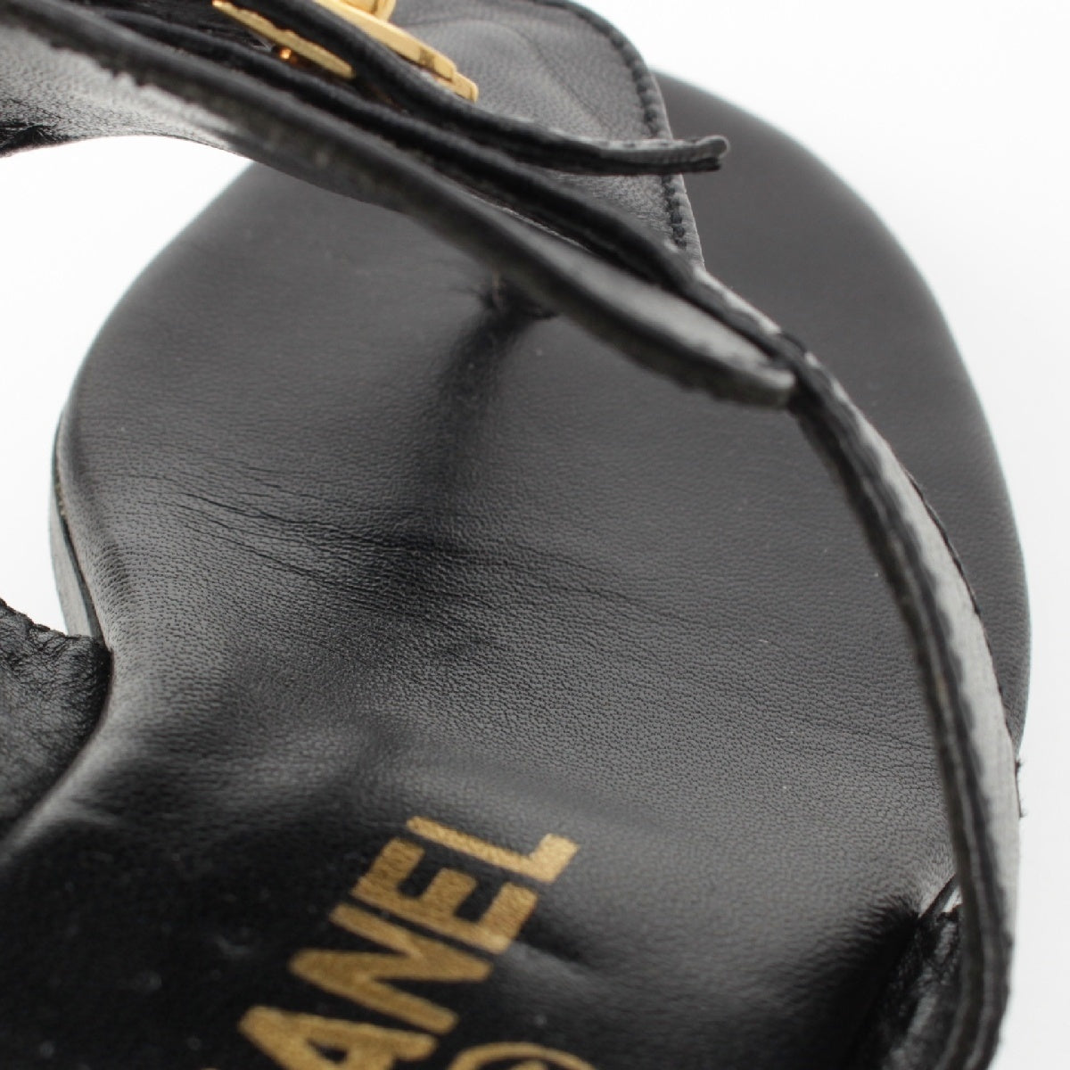CHANEL 96P leather Vintage Turnlock COCO Mark Sandals shoes Black gold 37