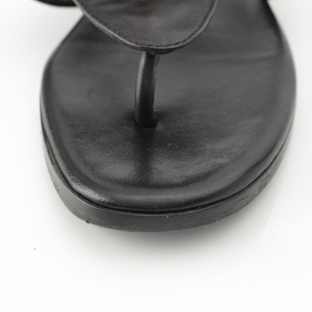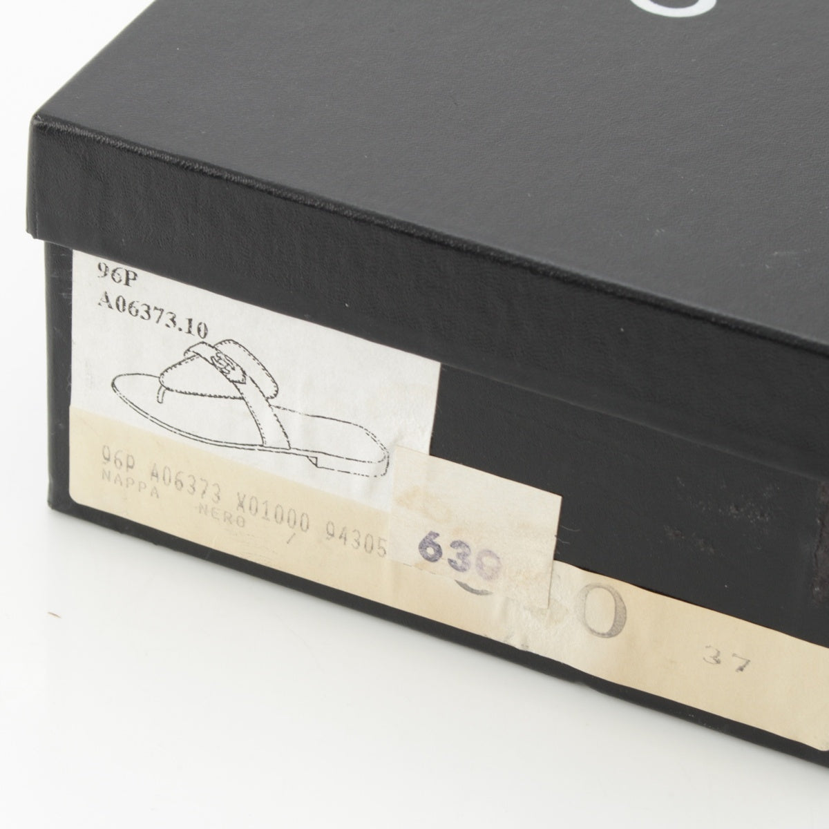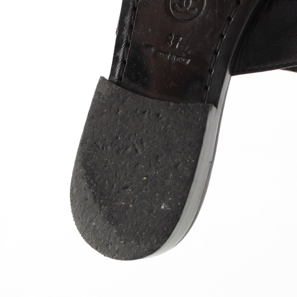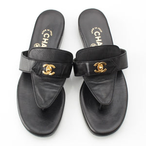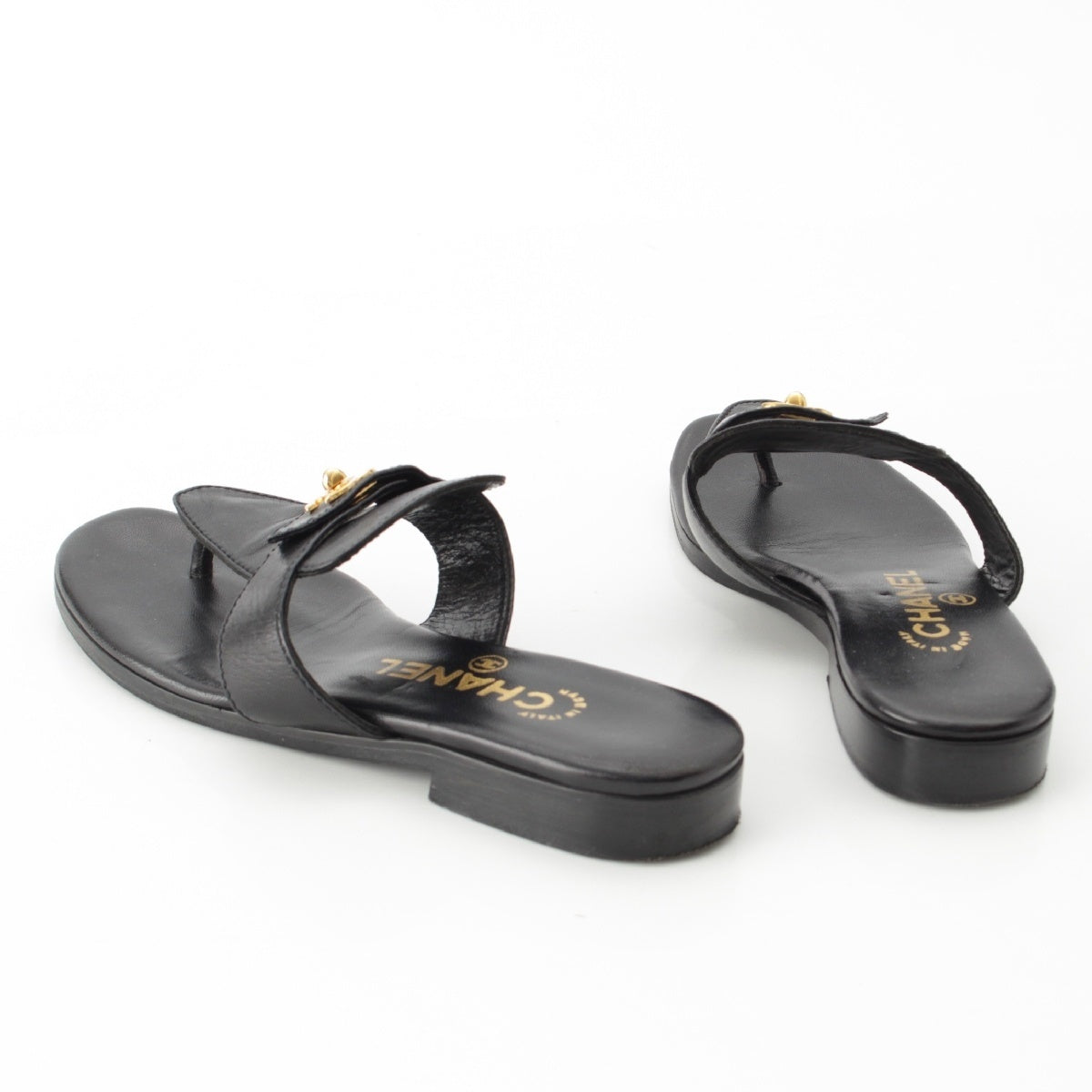 CHANEL 96P leather Vintage Turnlock COCO Mark Sandals shoes Black gold 37