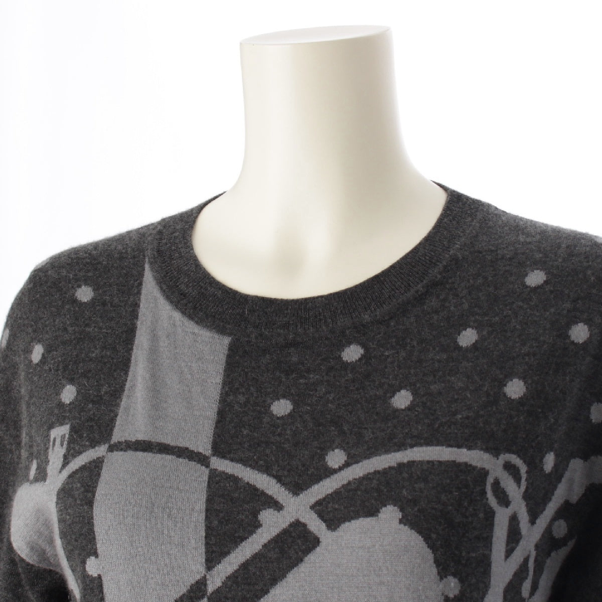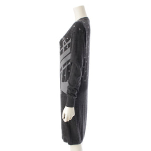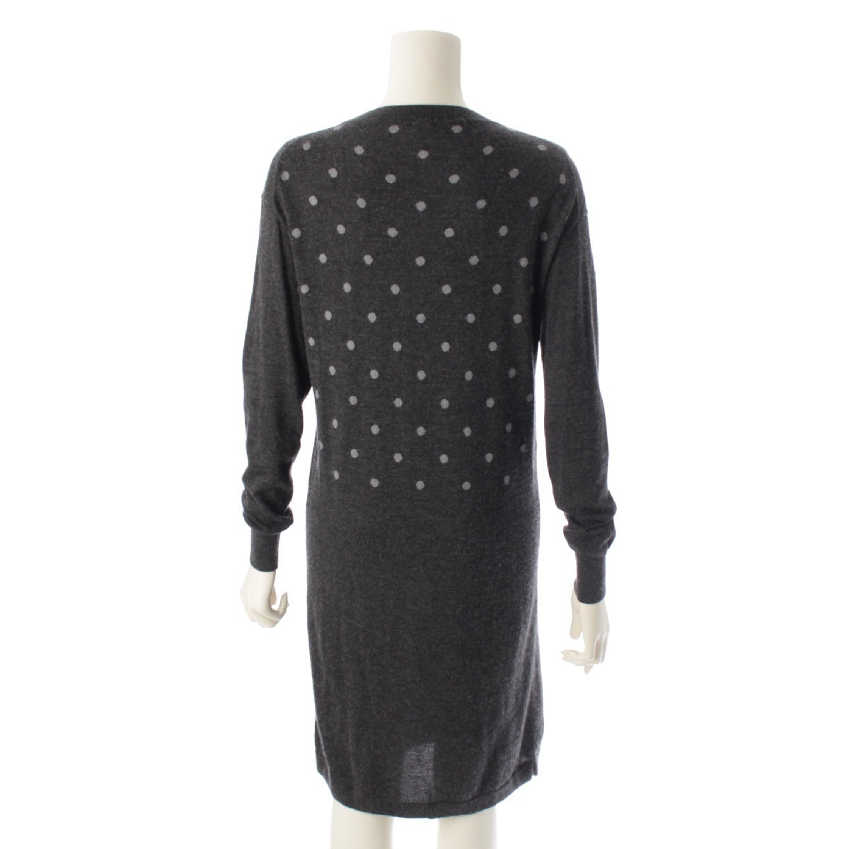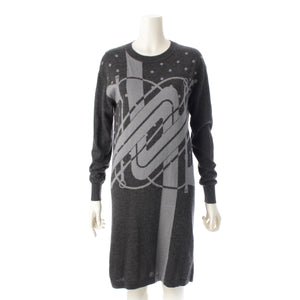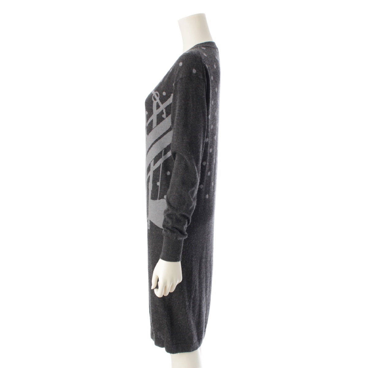 HERMES 21AW cashmere silk Click Clack Dot Pattern Knit one piece Knee-length dress gray 34