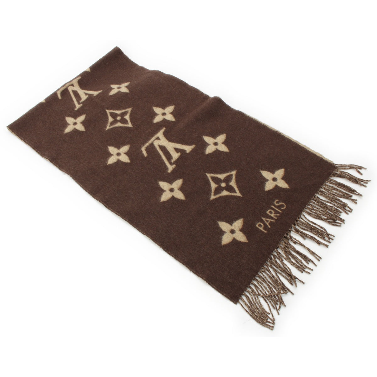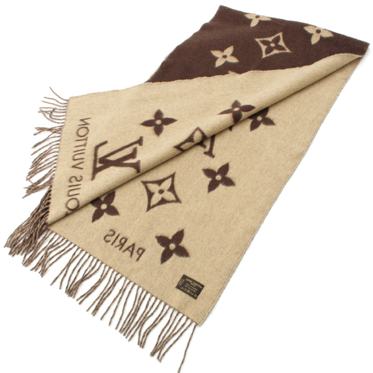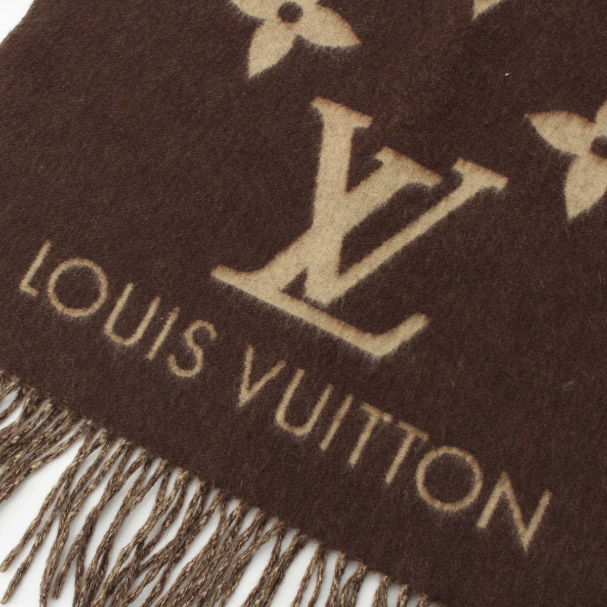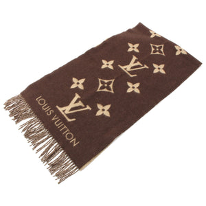 LOUIS VUITTON Escalp Reykjavik cashmere Giant Monogram Fringe Large Scarf Stall shawl M71041 Brown beige