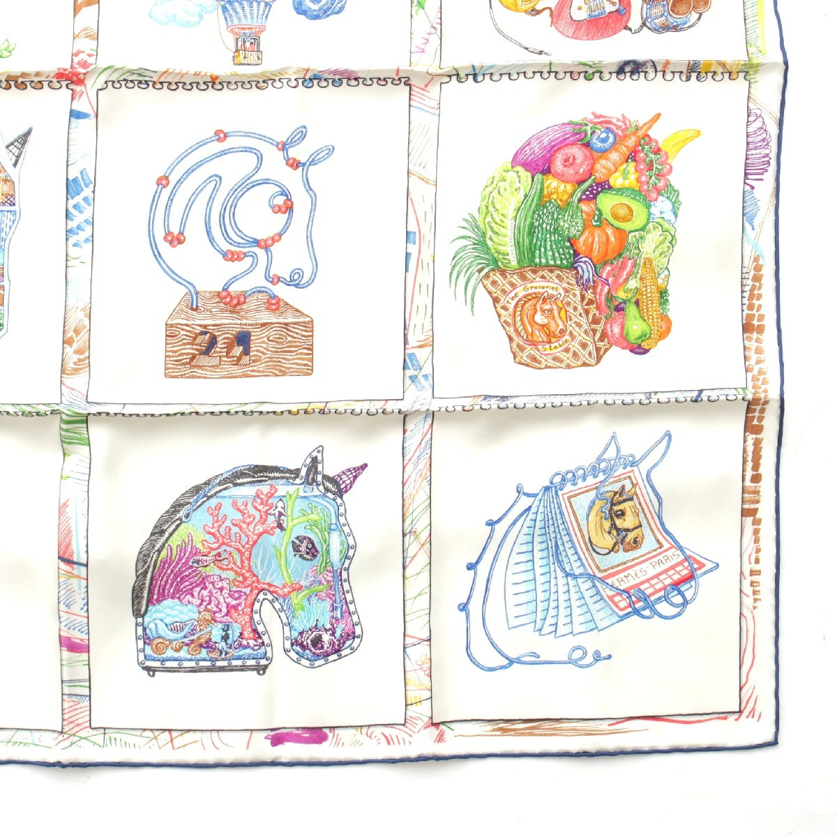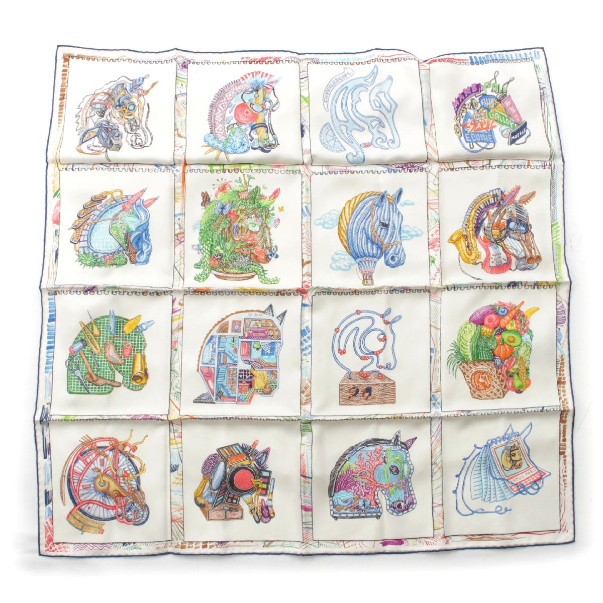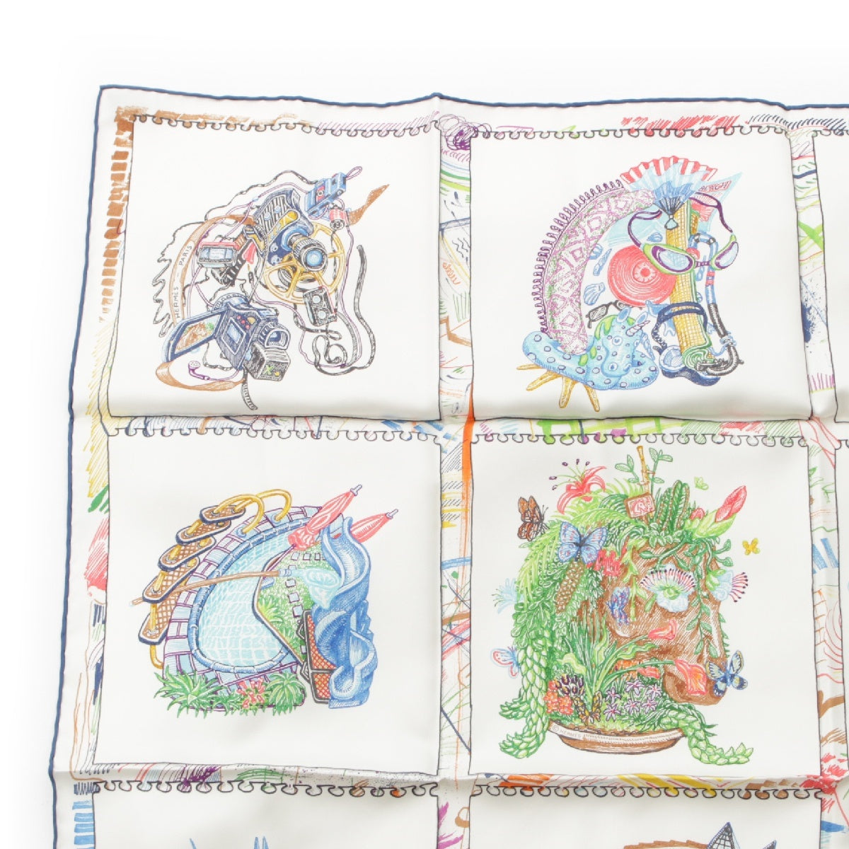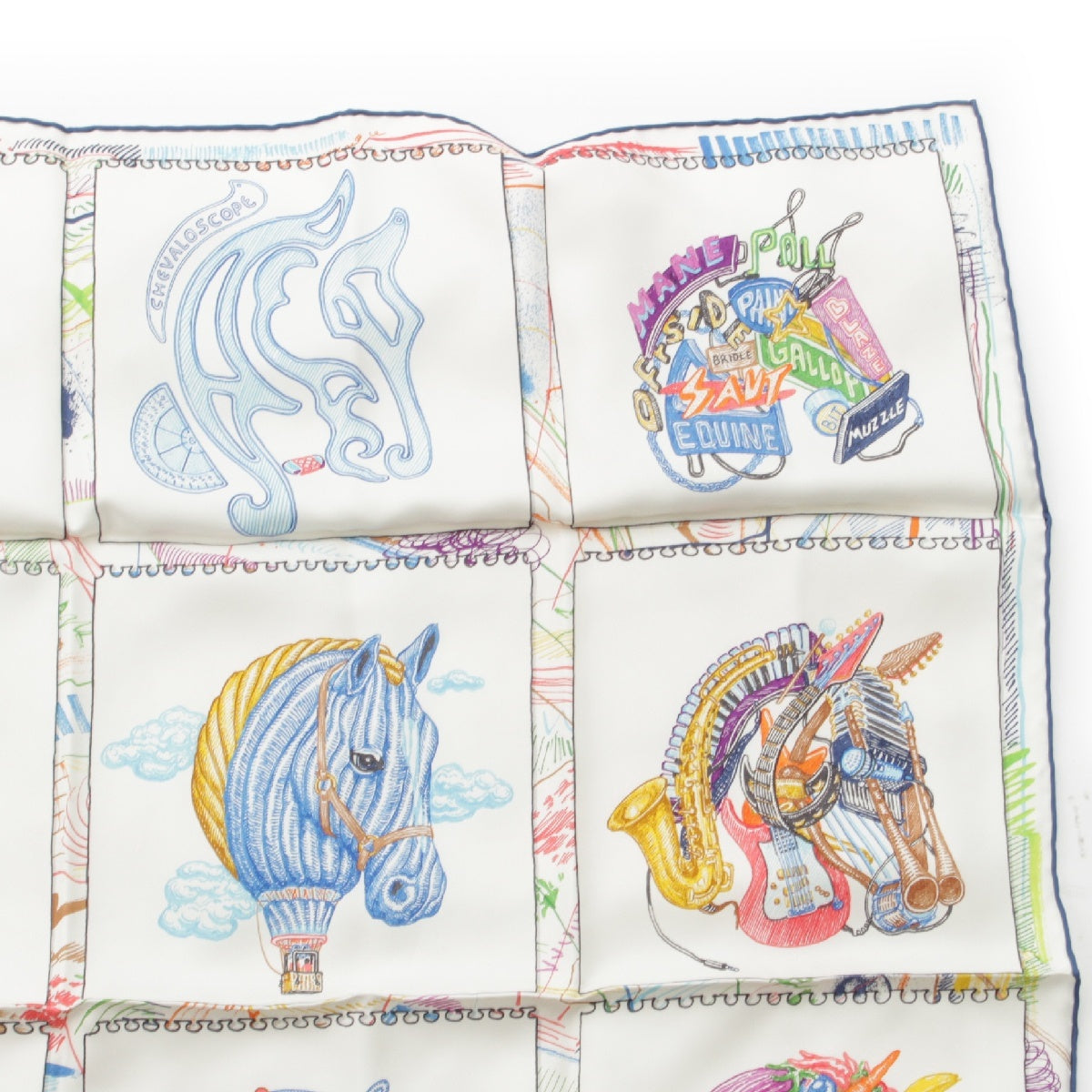 HERMES 23Stainless Steel Calle 90 silk Chevaloscope Chevaloscope scarf Horse horse White multicolor