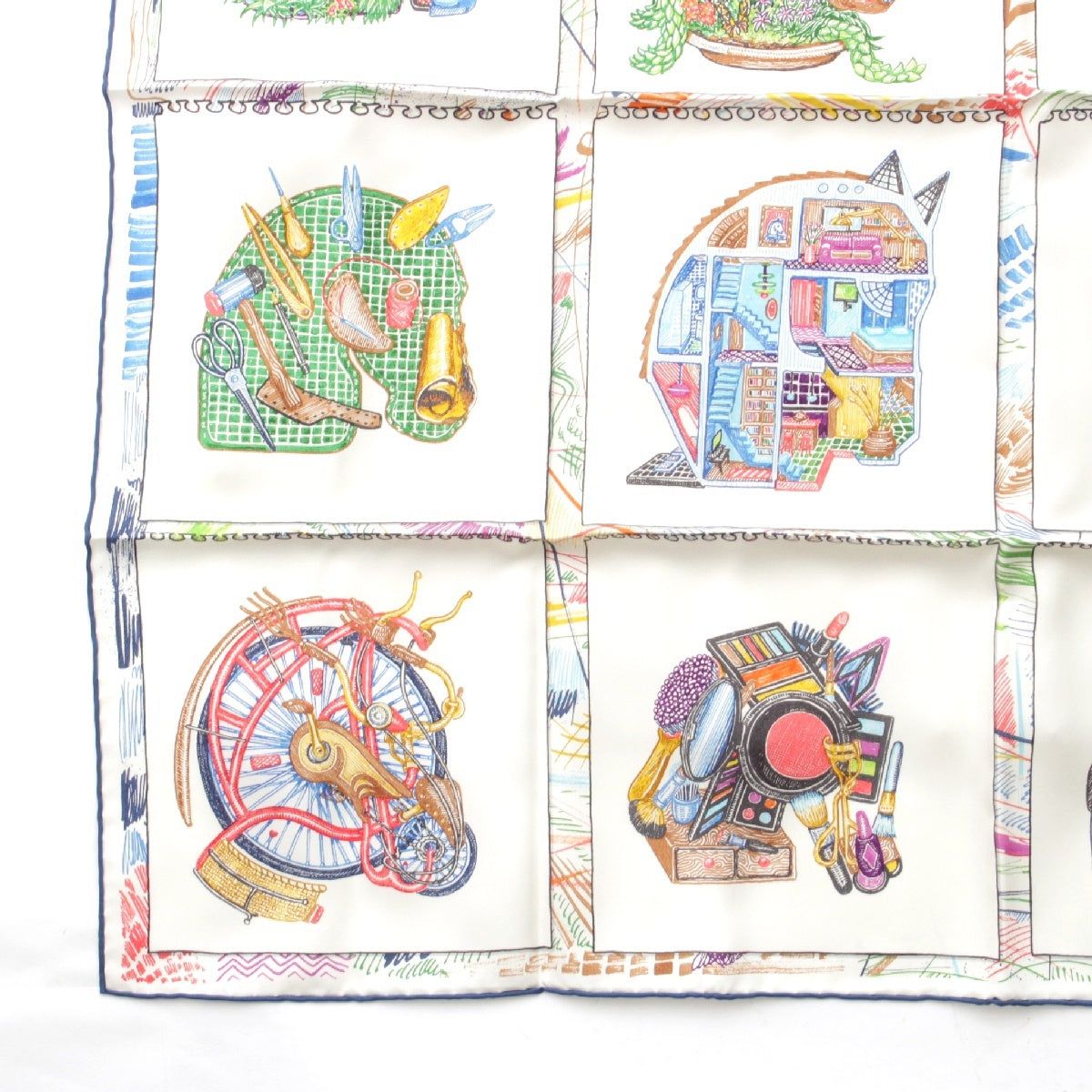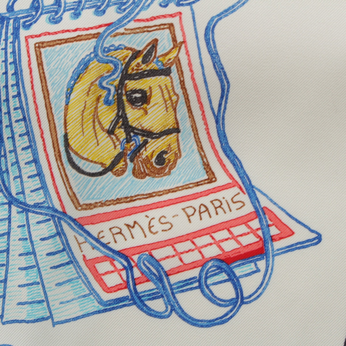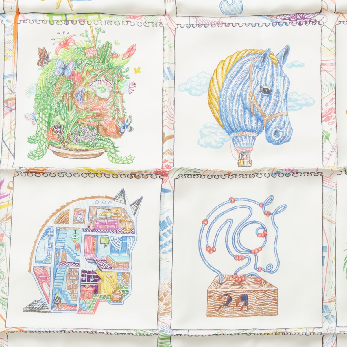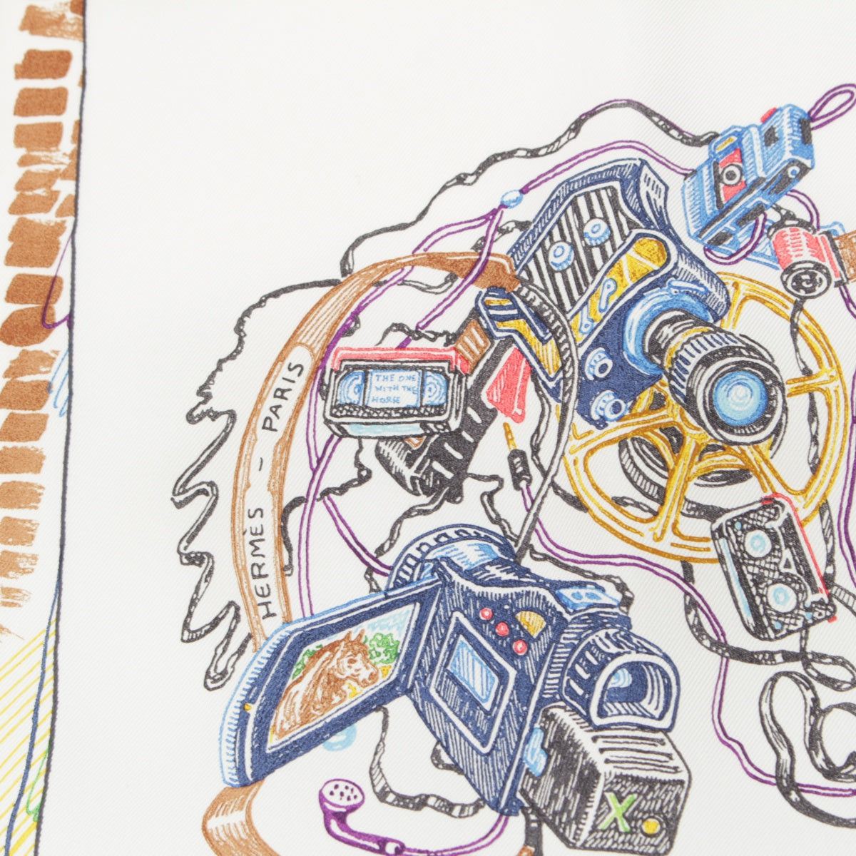 HERMES 23Stainless Steel Calle 90 silk Chevaloscope Chevaloscope scarf Horse horse White multicolor