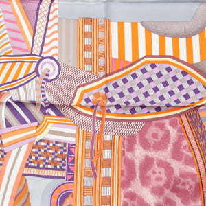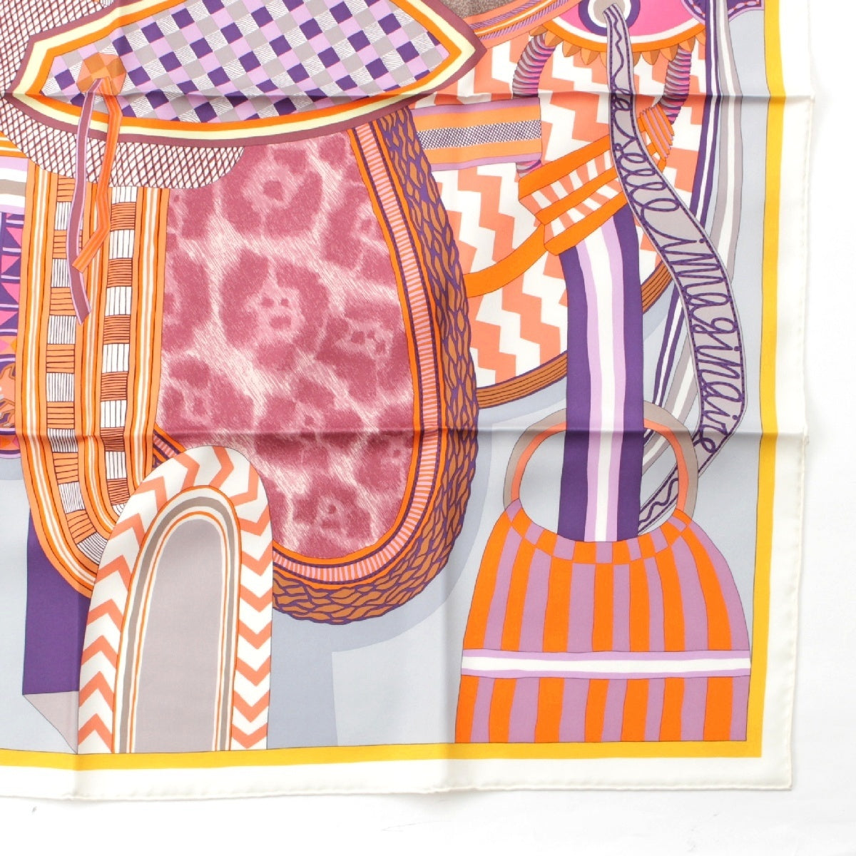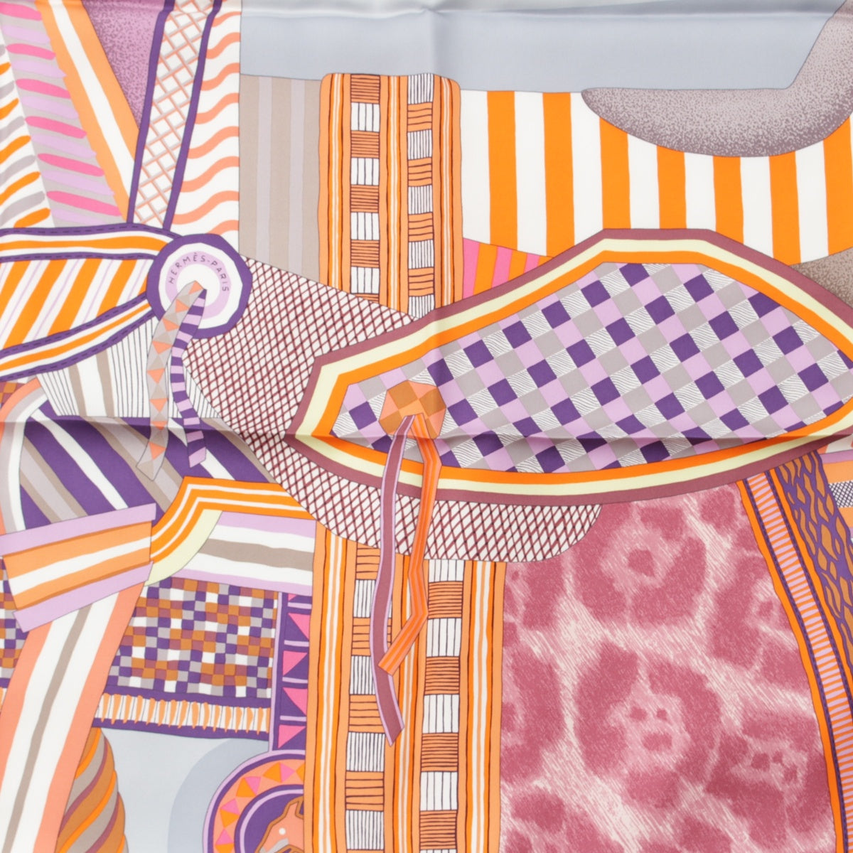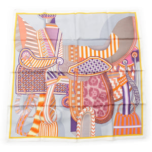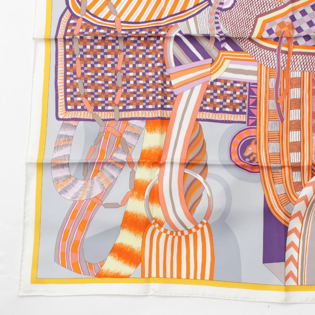 HERMES silk Carré 90 La Selle Imaginaire Imaginary Saddle scarf Blue orange