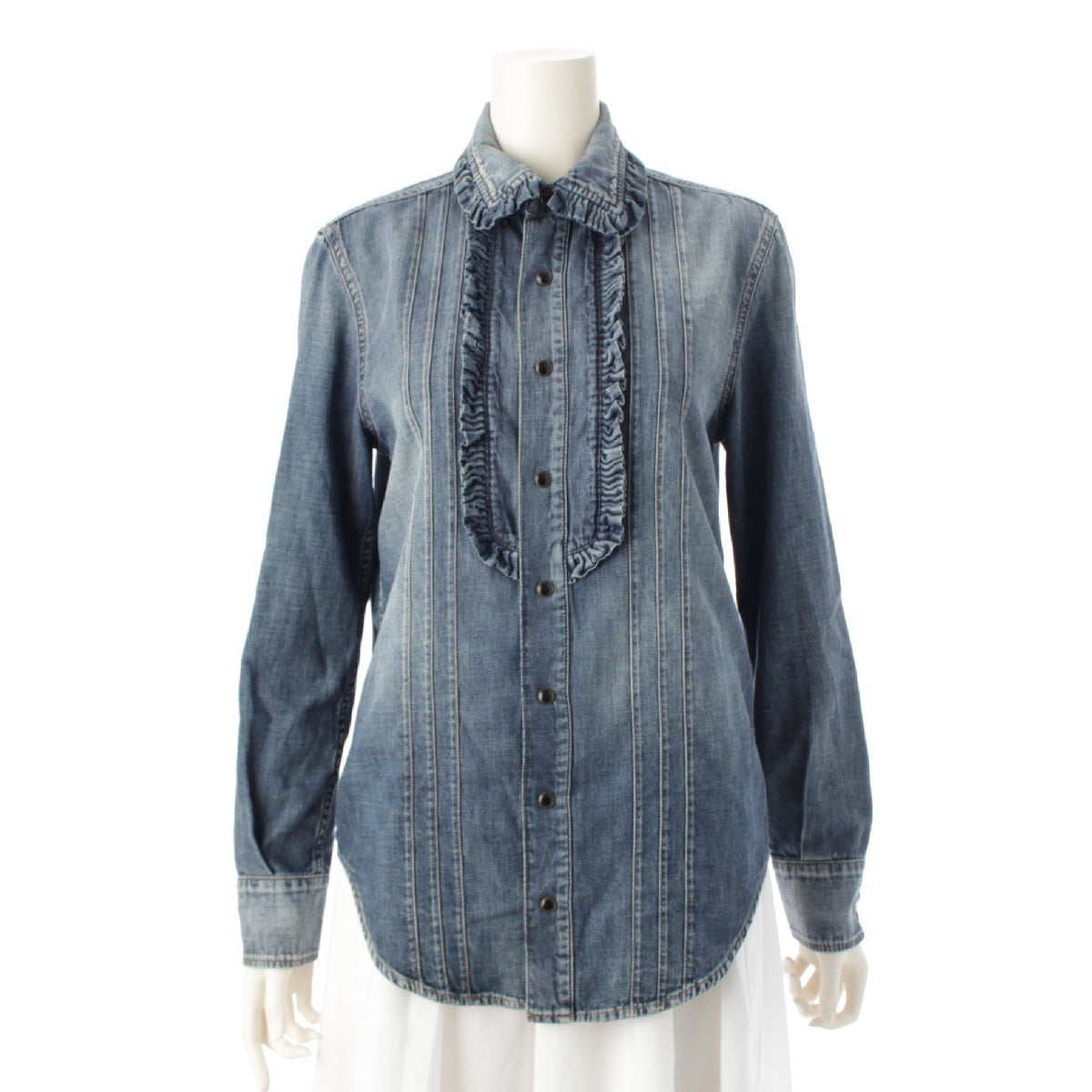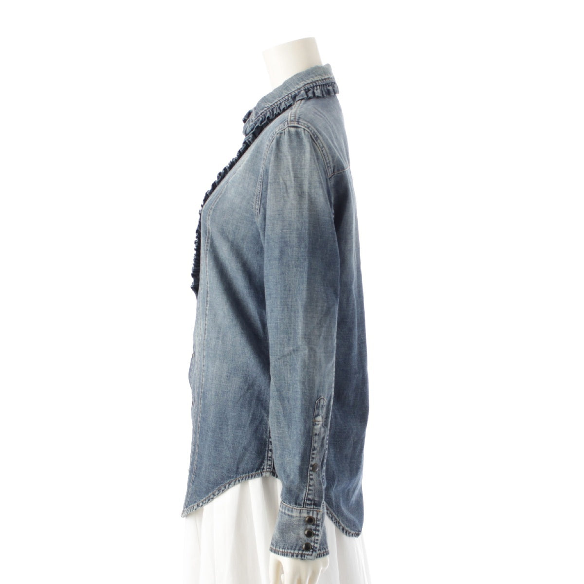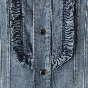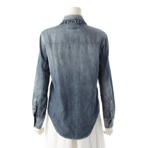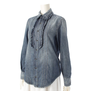 SAINT LAURENT 21 years denim Frill Long sleeve shirt blouse tops 663871 blue L
