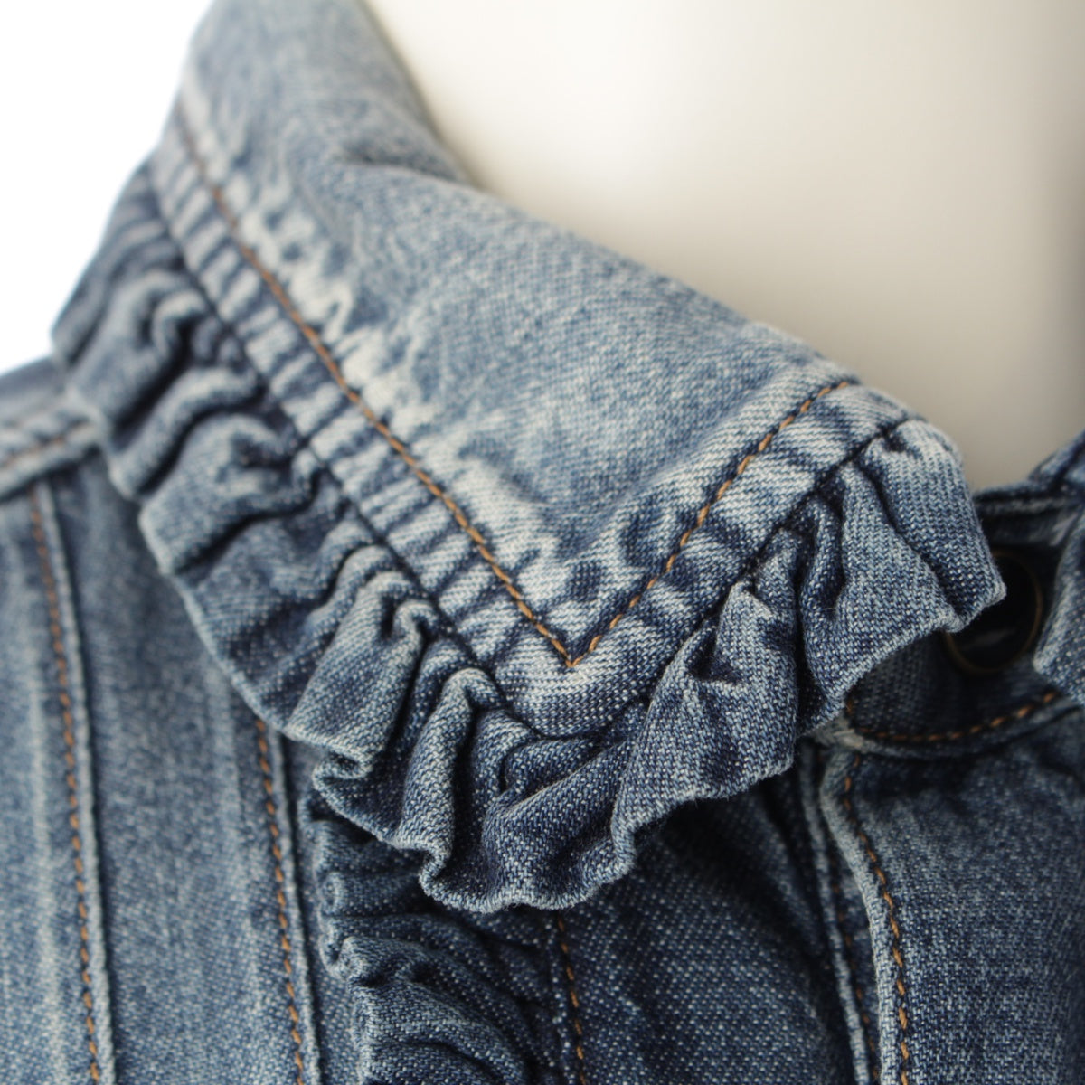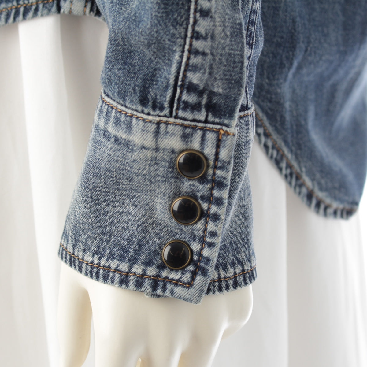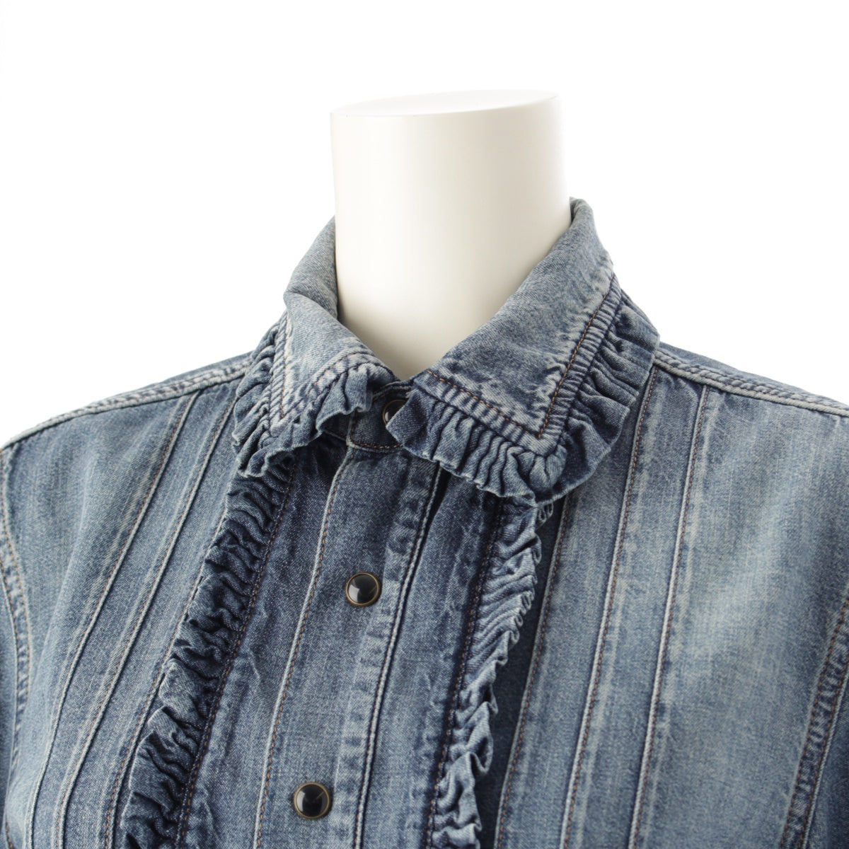 SAINT LAURENT 21 years denim Frill Long sleeve shirt blouse tops 663871 blue L