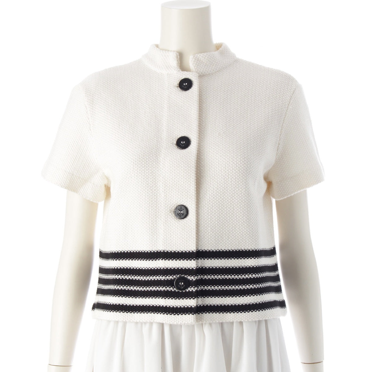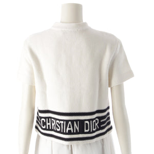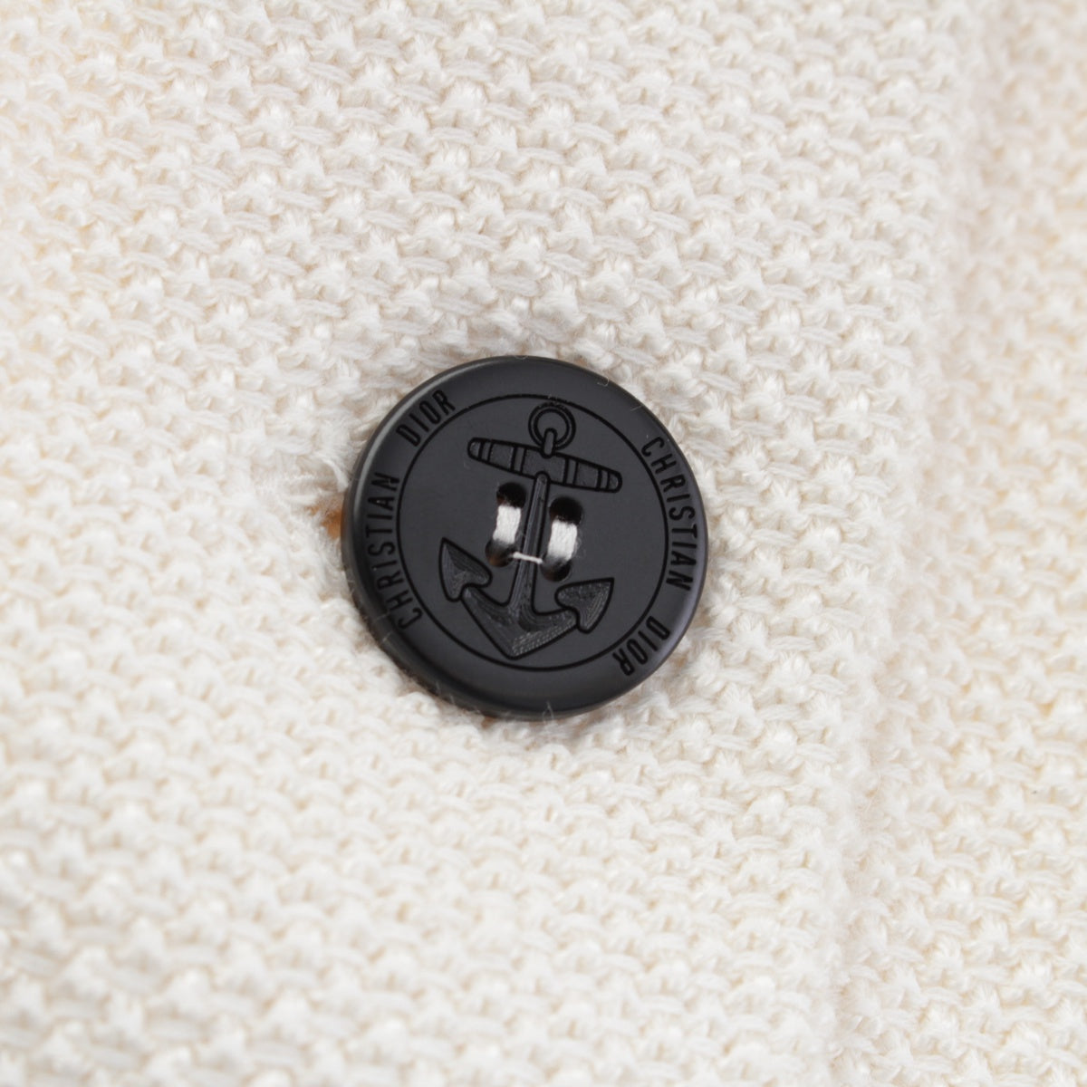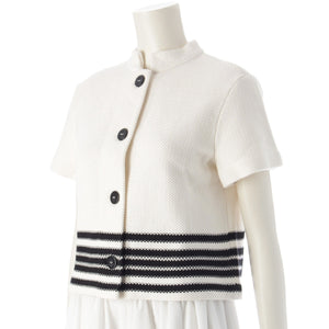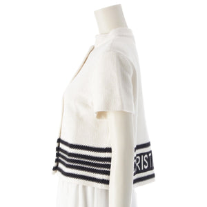 Dior 24 years Cotton silk knit Jacket Logo Short sleeve Anchor motif button 414V61BM647 White black 34
