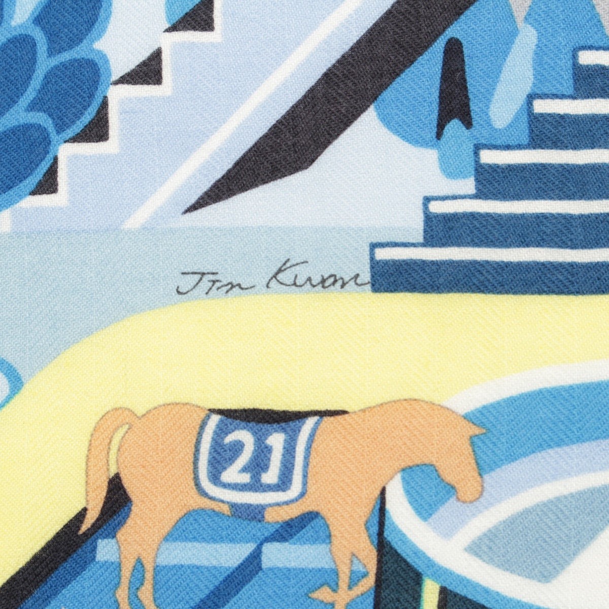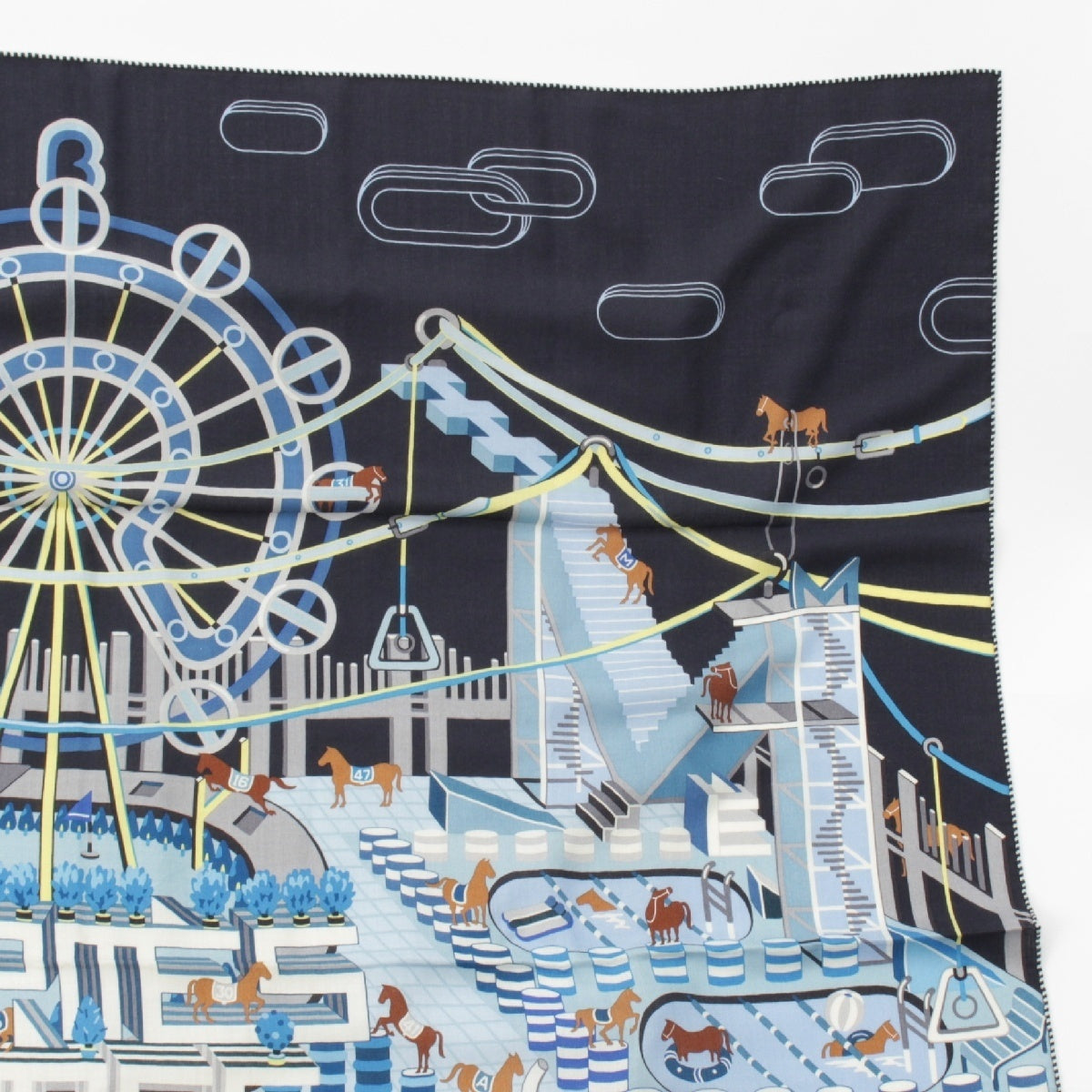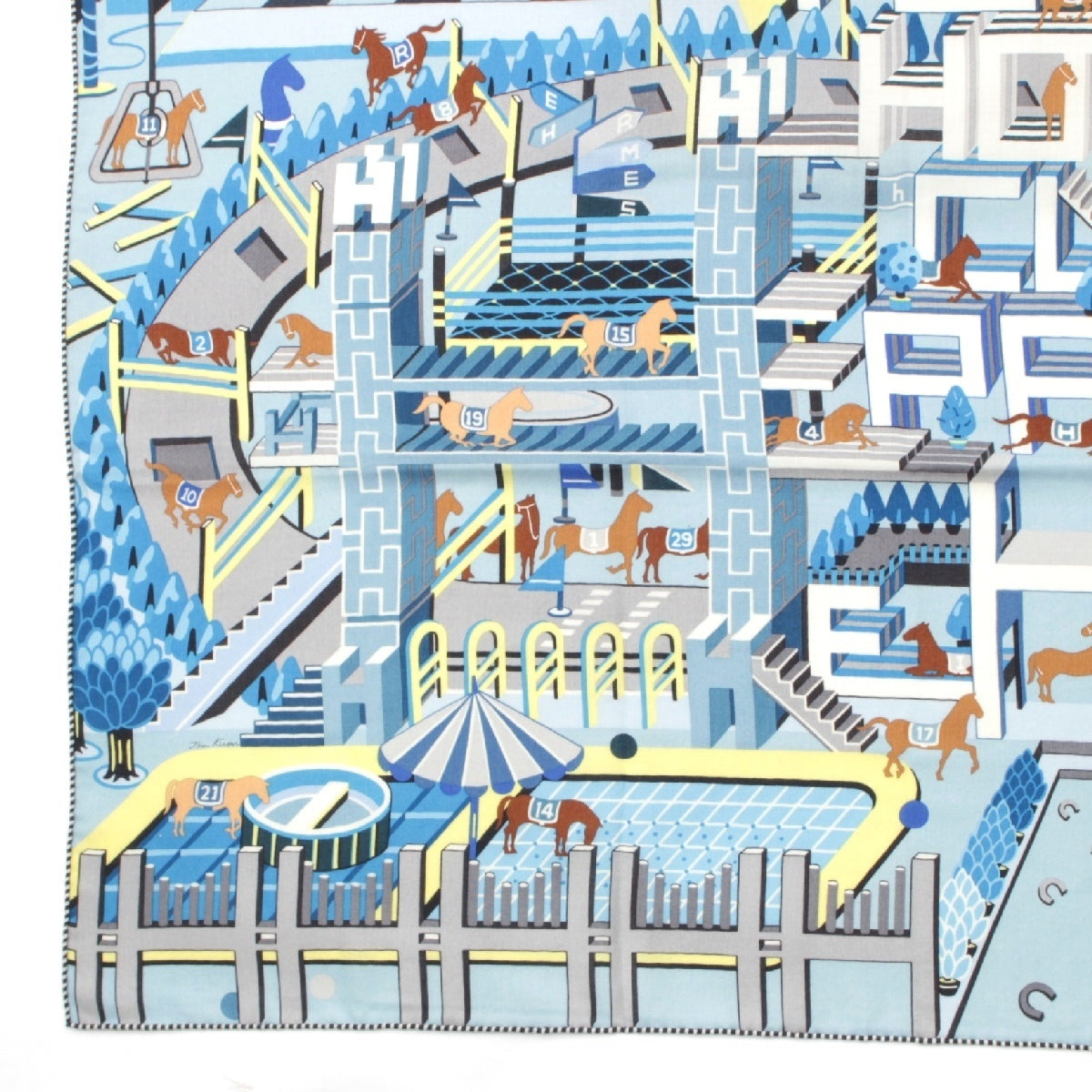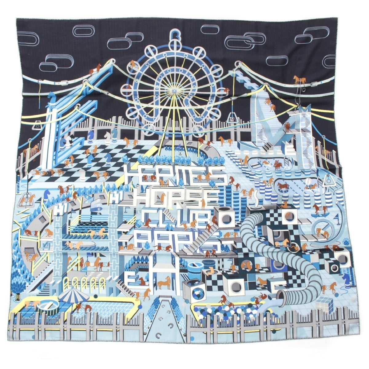 HERMES Caregean cashmere silk Horse Club HORSE CLUB Large scarf Horse Accessories 23SS blue