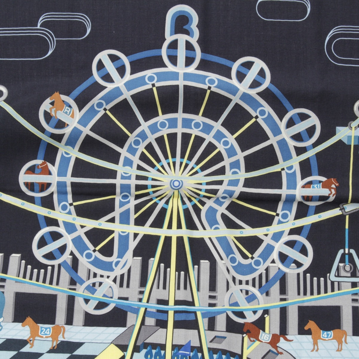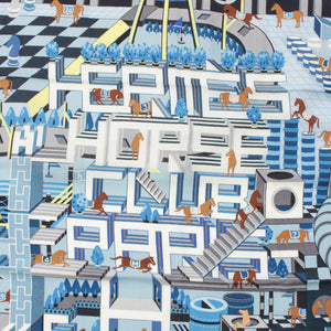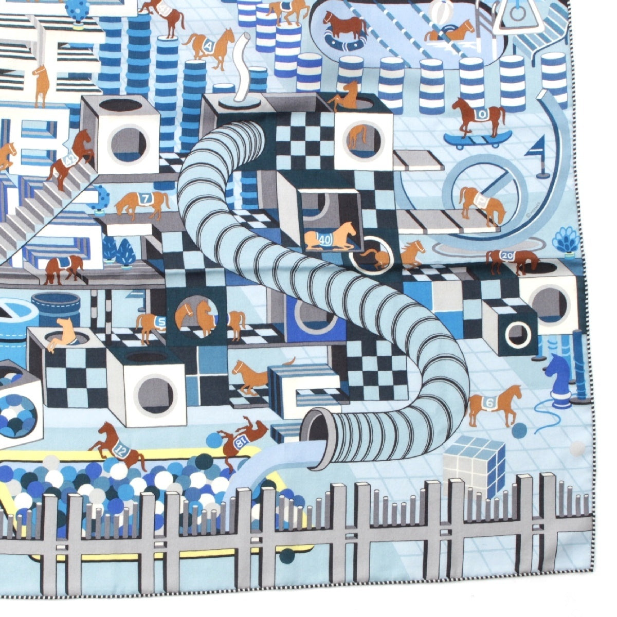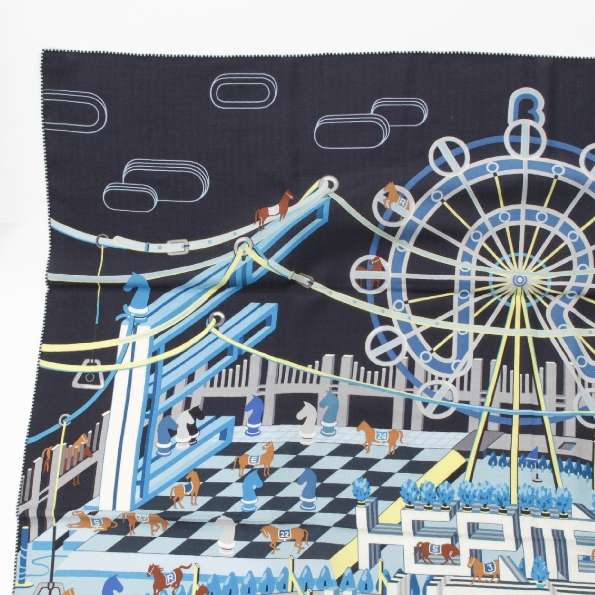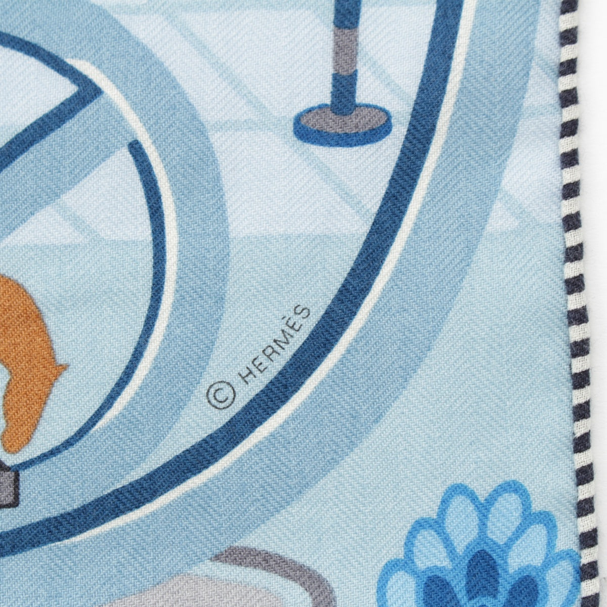 HERMES Caregean cashmere silk Horse Club HORSE CLUB Large scarf Horse Accessories 23SS blue