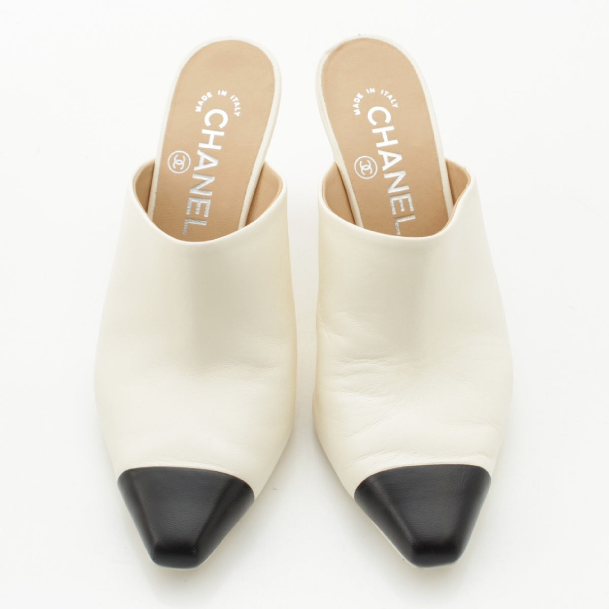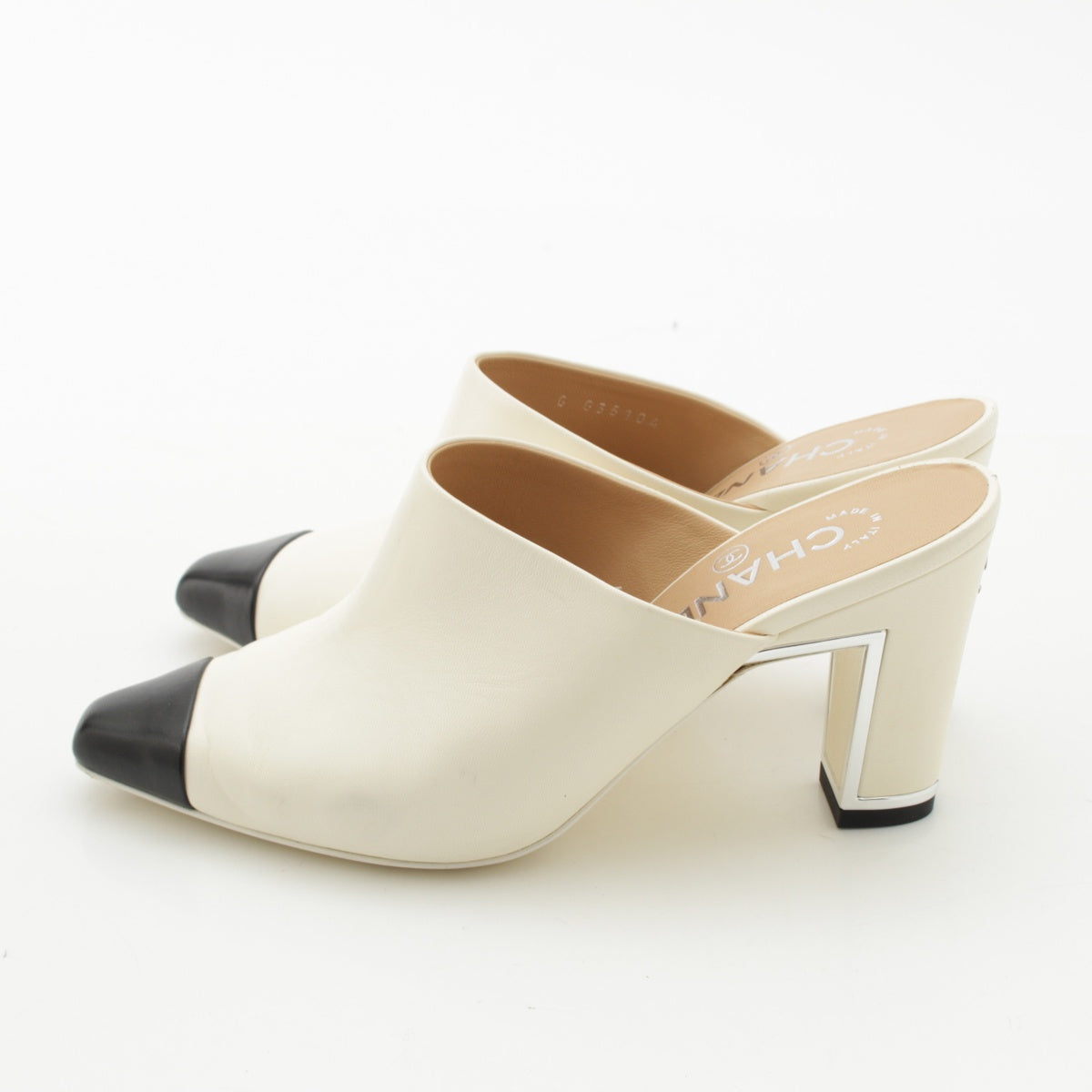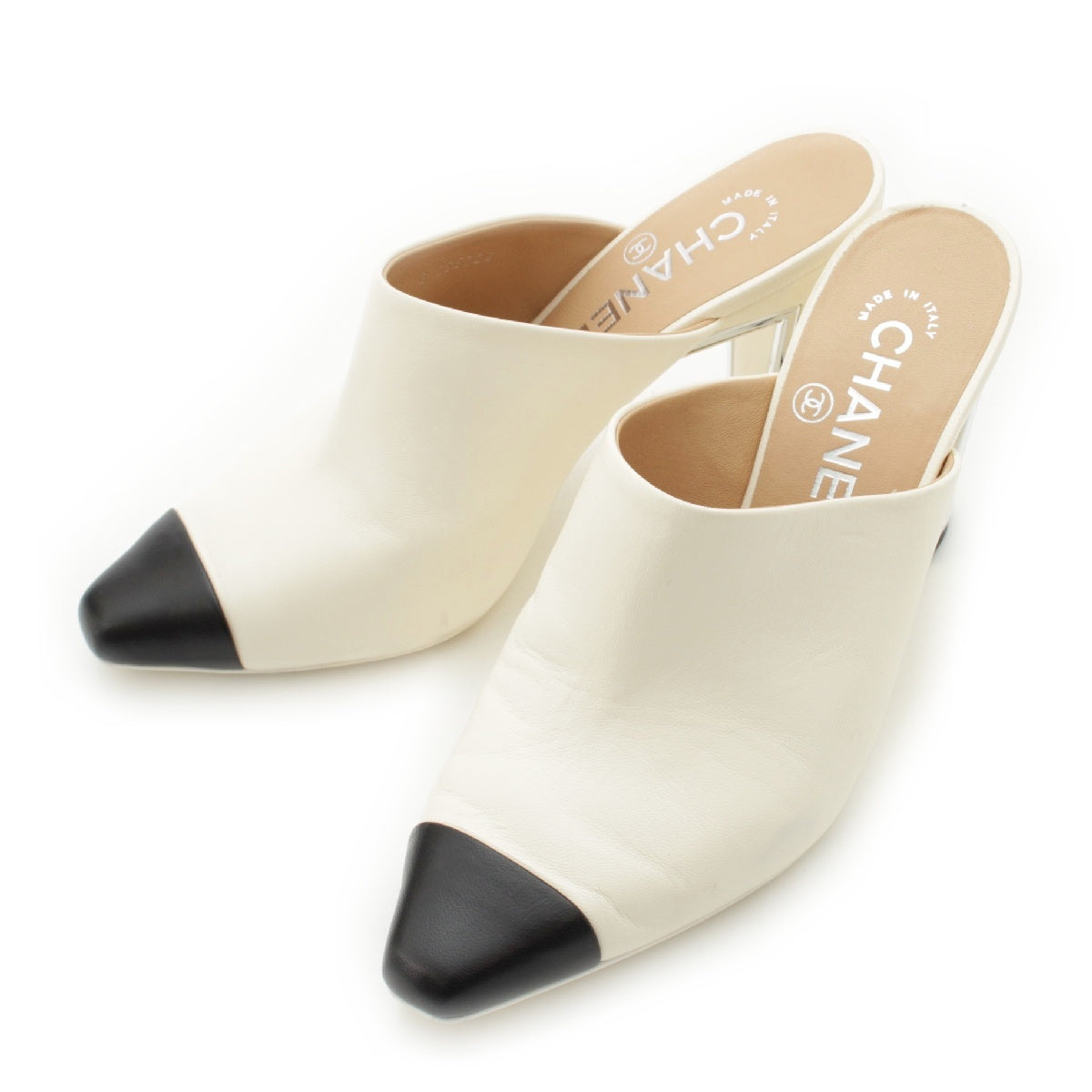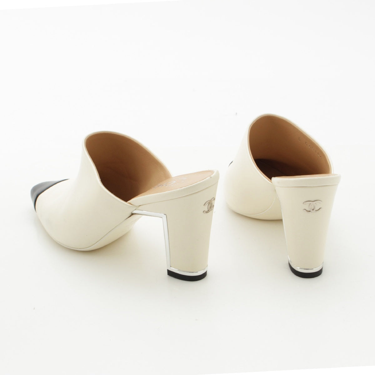 CHANEL lambskin Cap toe heeled sandals Mule shoes G35104 White x black 35 1/2
