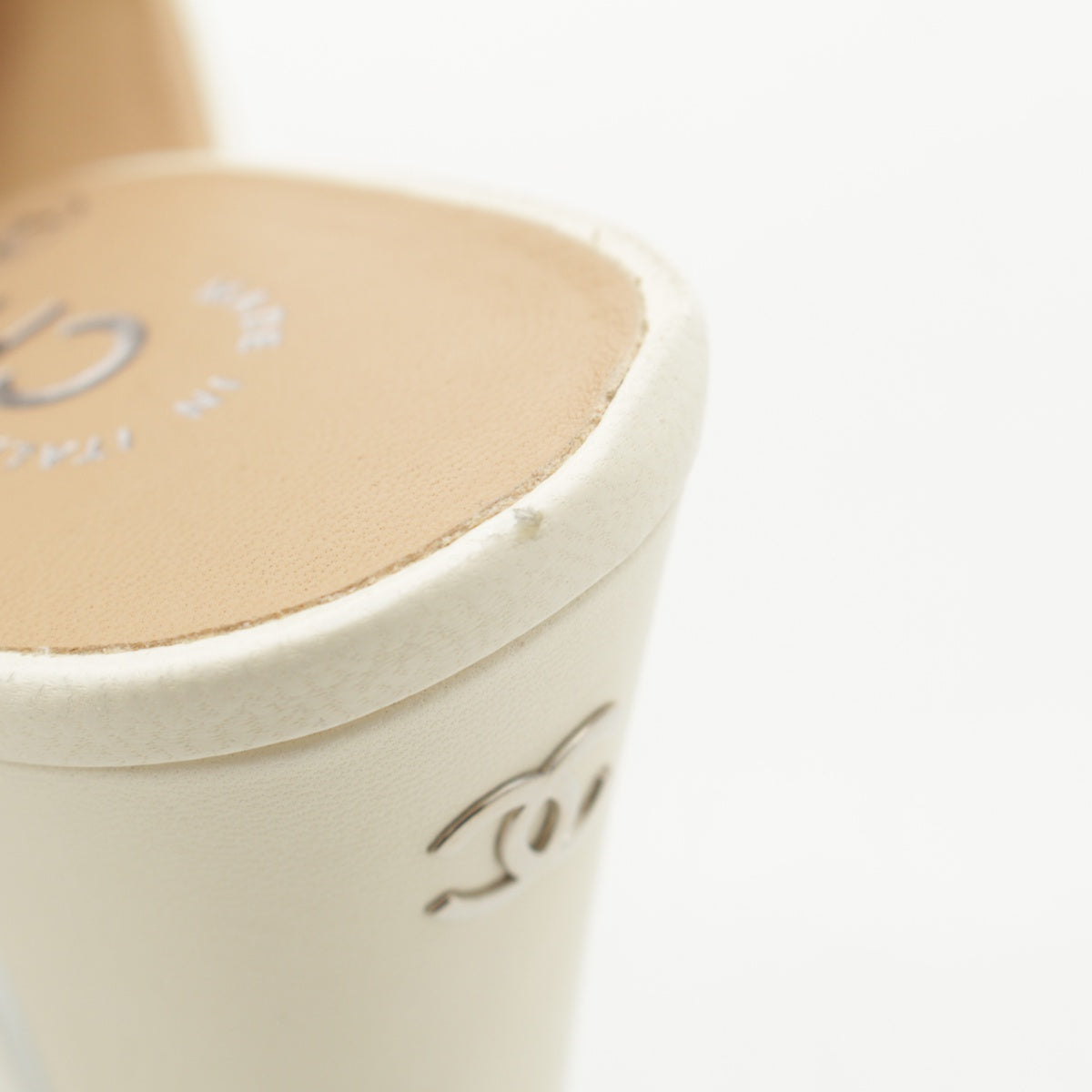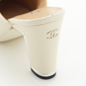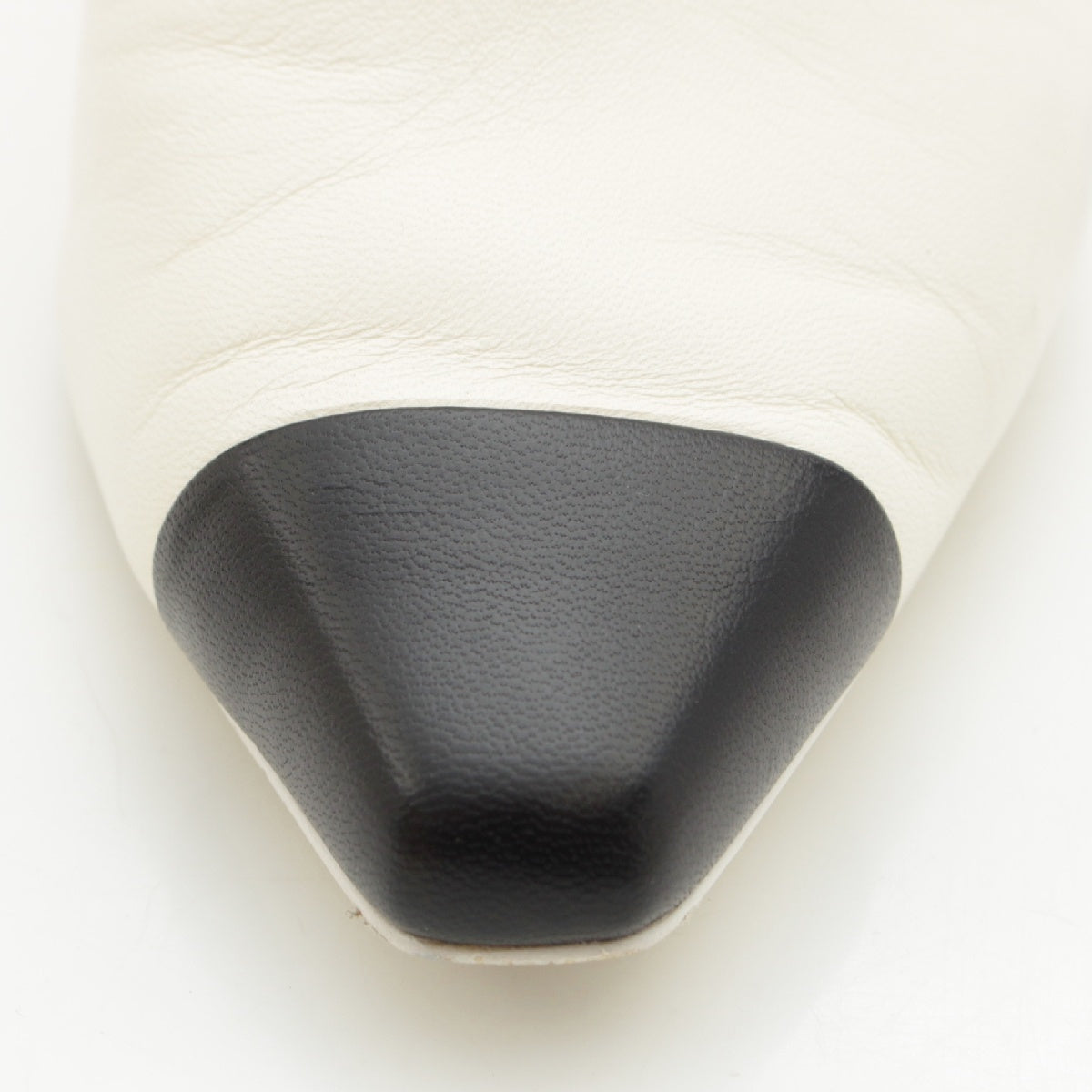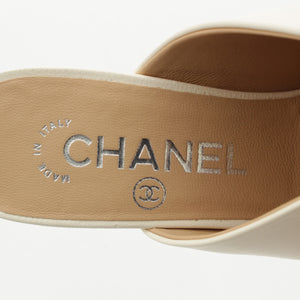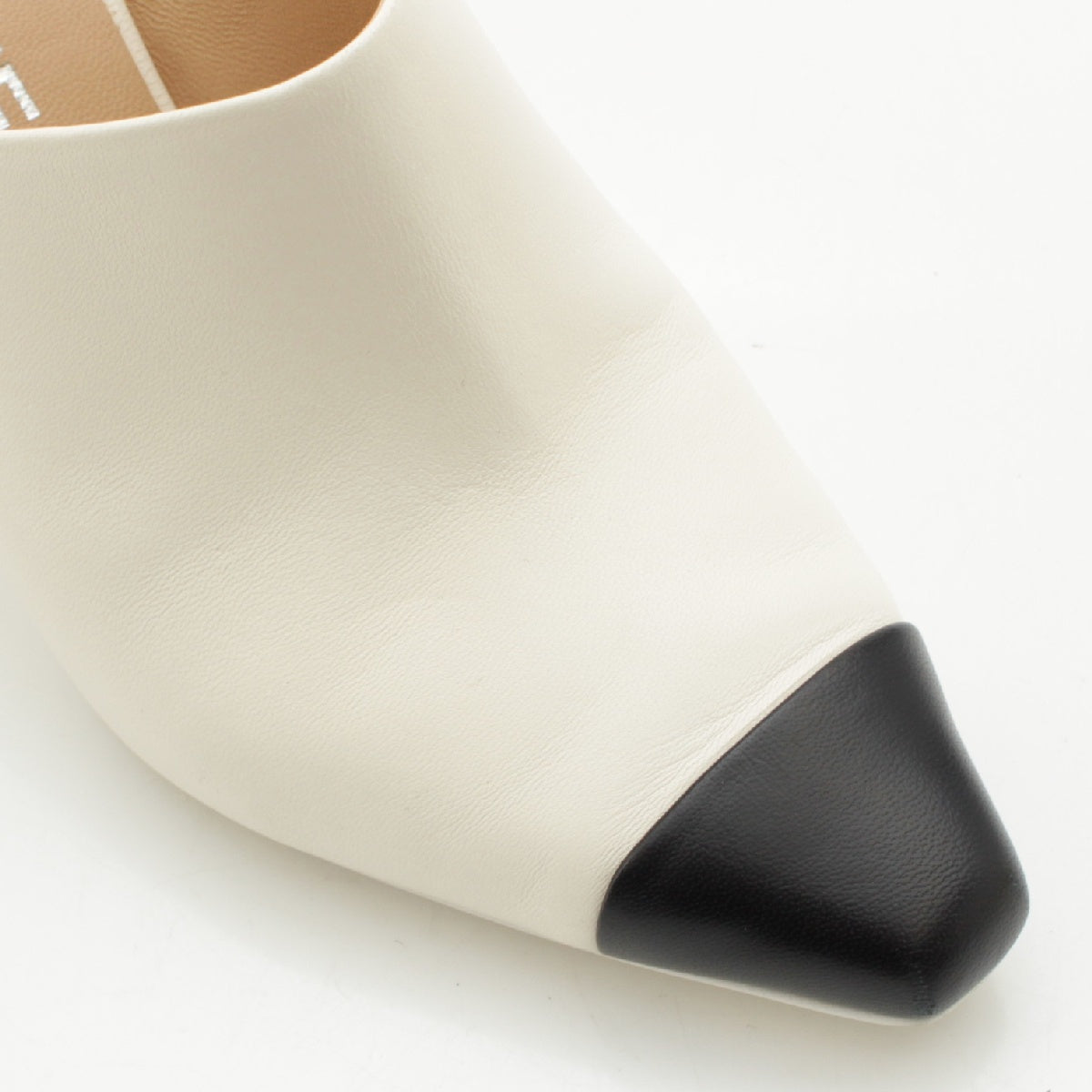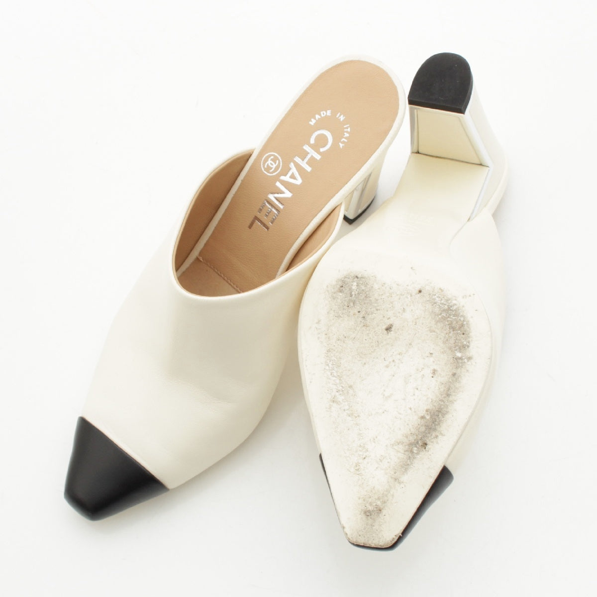 CHANEL lambskin Cap toe heeled sandals Mule shoes G35104 White x black 35 1/2