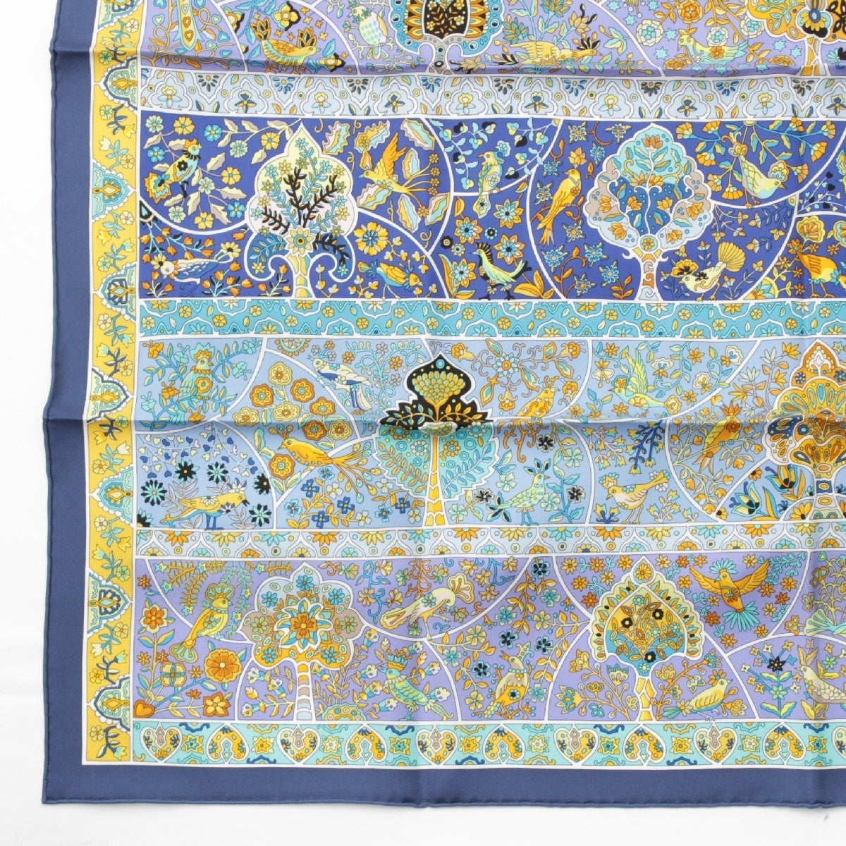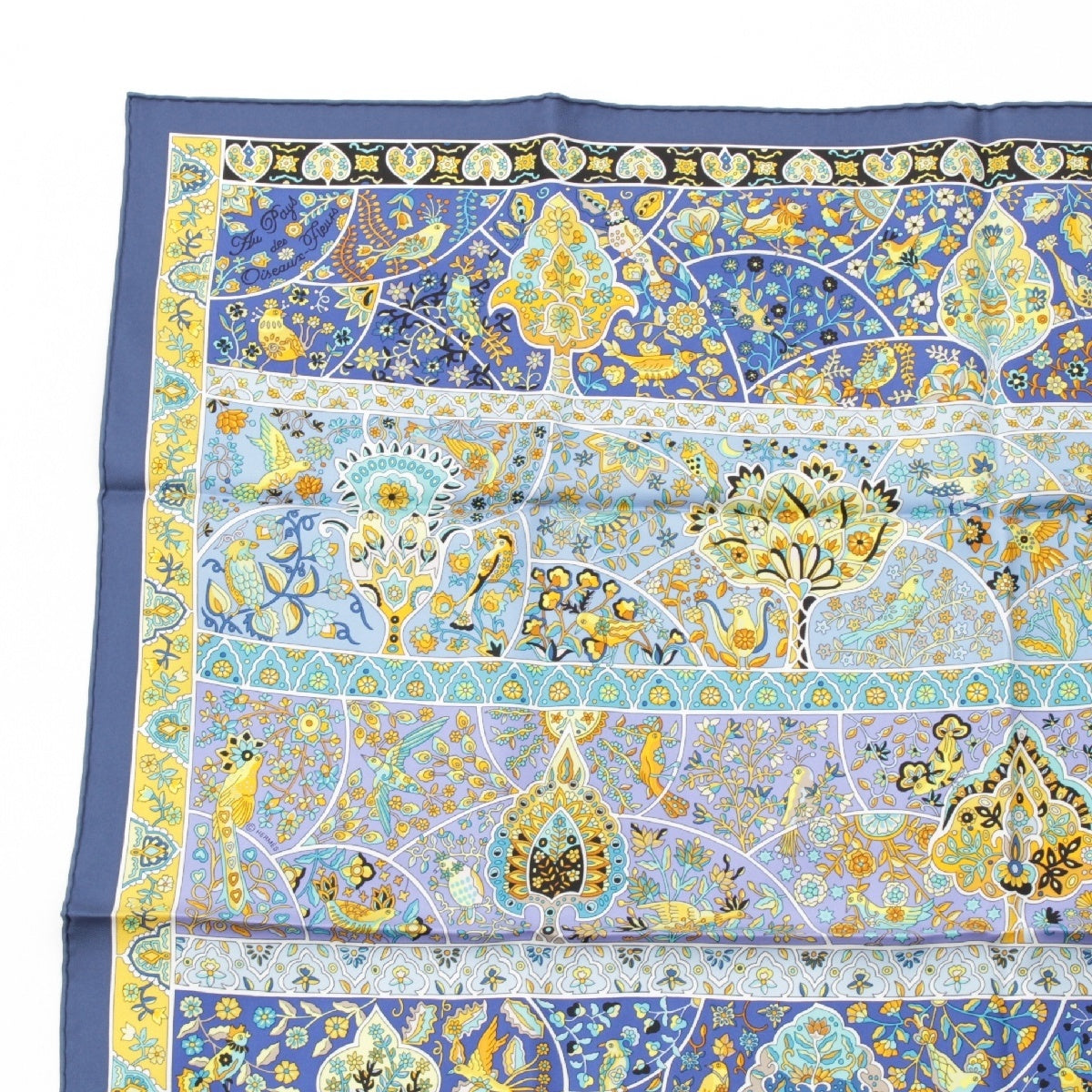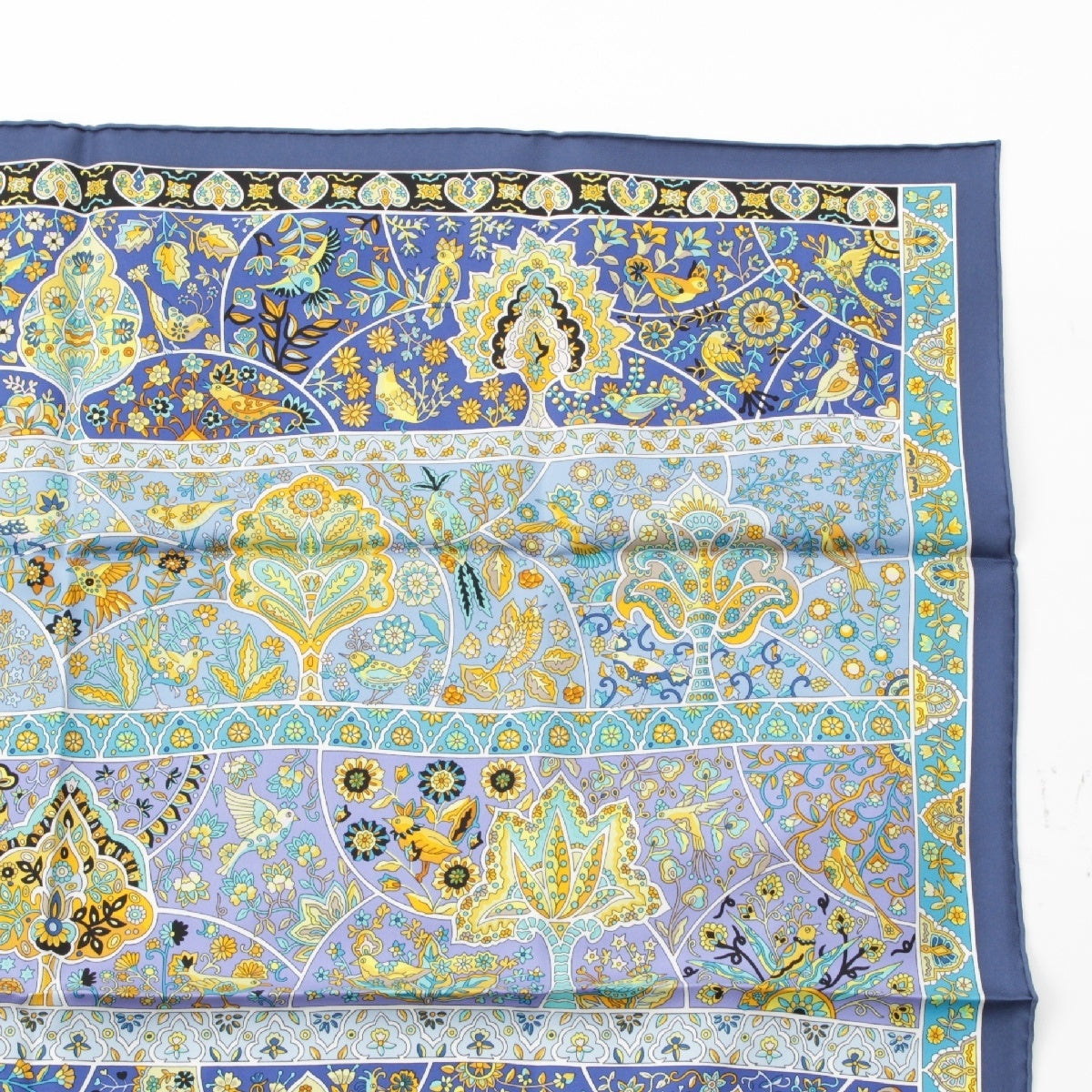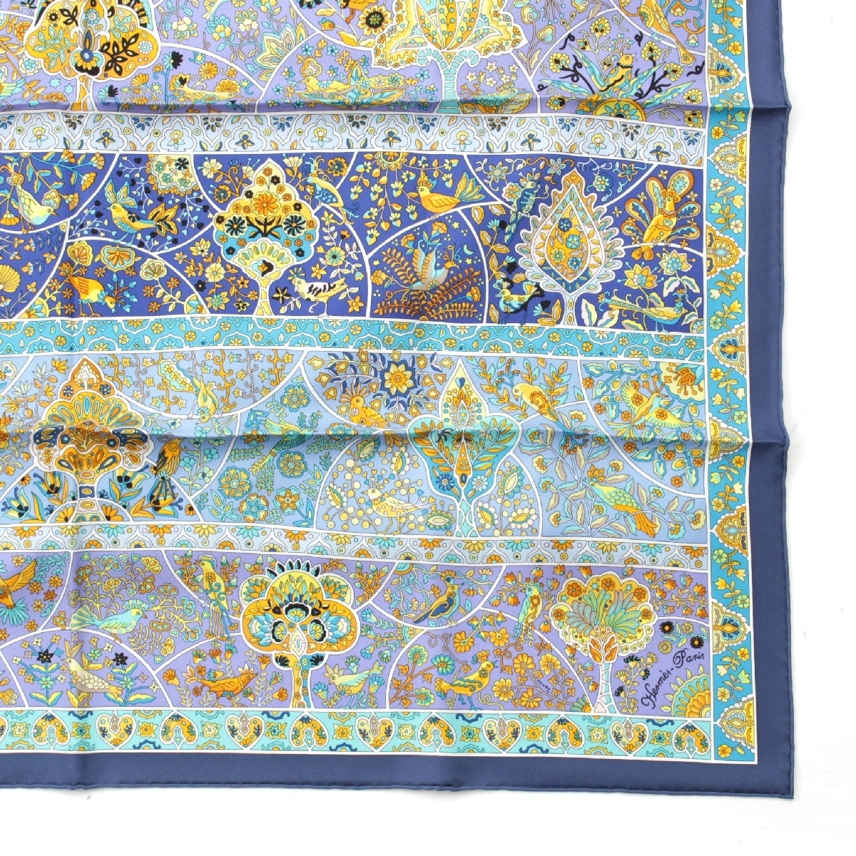 HERMES silk Carré 90 Au Pays des Oiseaux Fleurs In the Land of Blooming Birds scarf blue