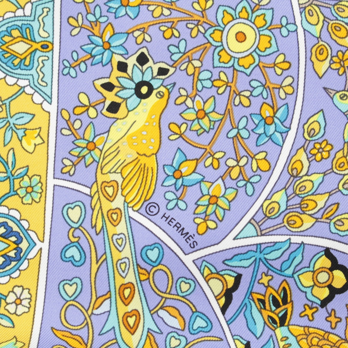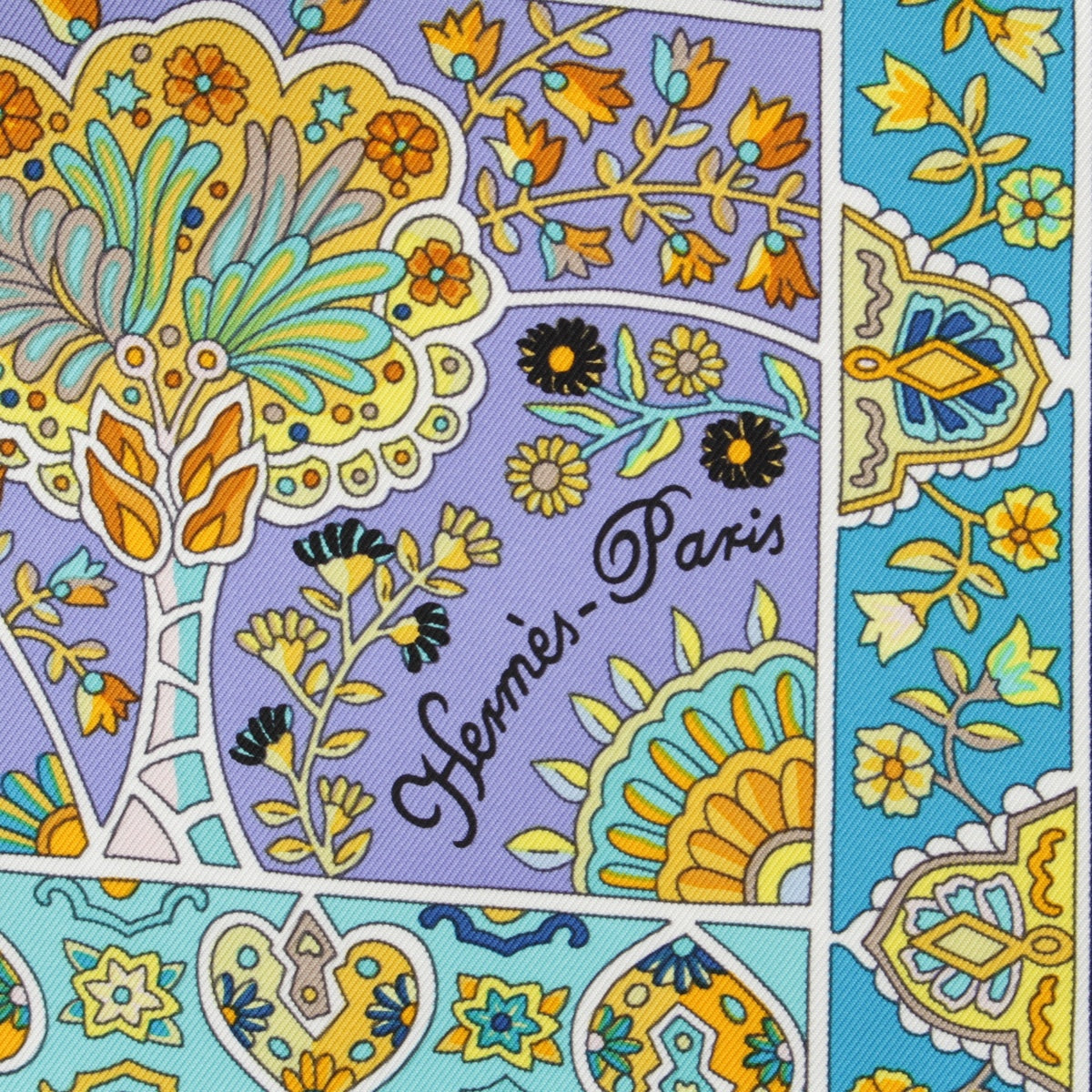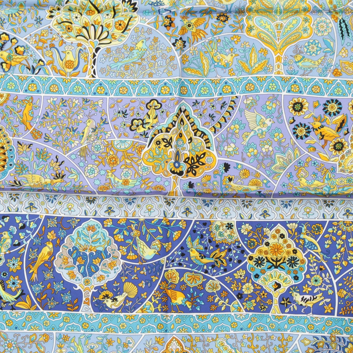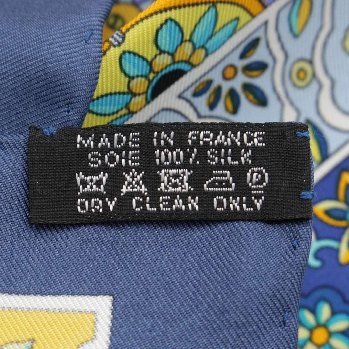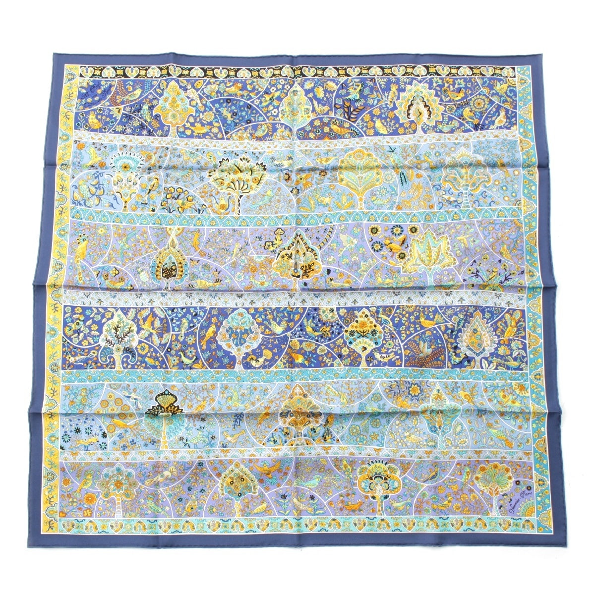 HERMES silk Carré 90 Au Pays des Oiseaux Fleurs In the Land of Blooming Birds scarf blue