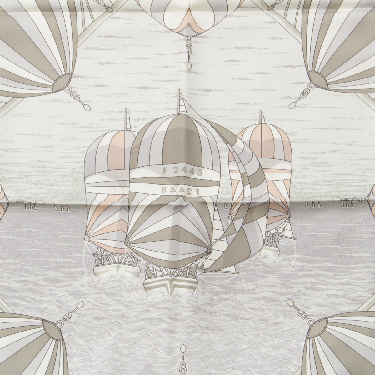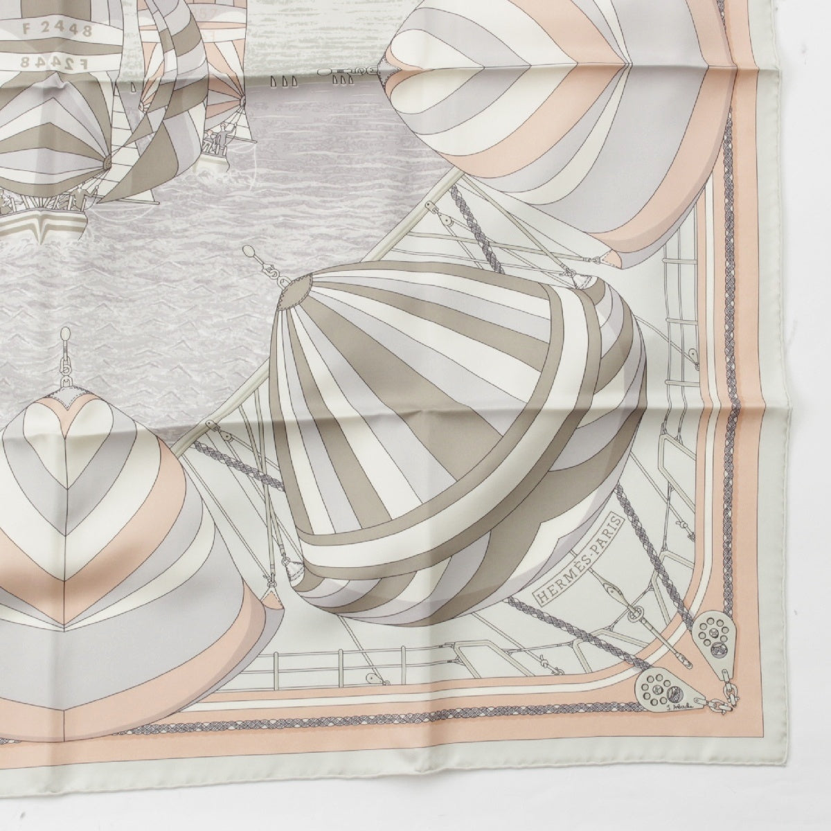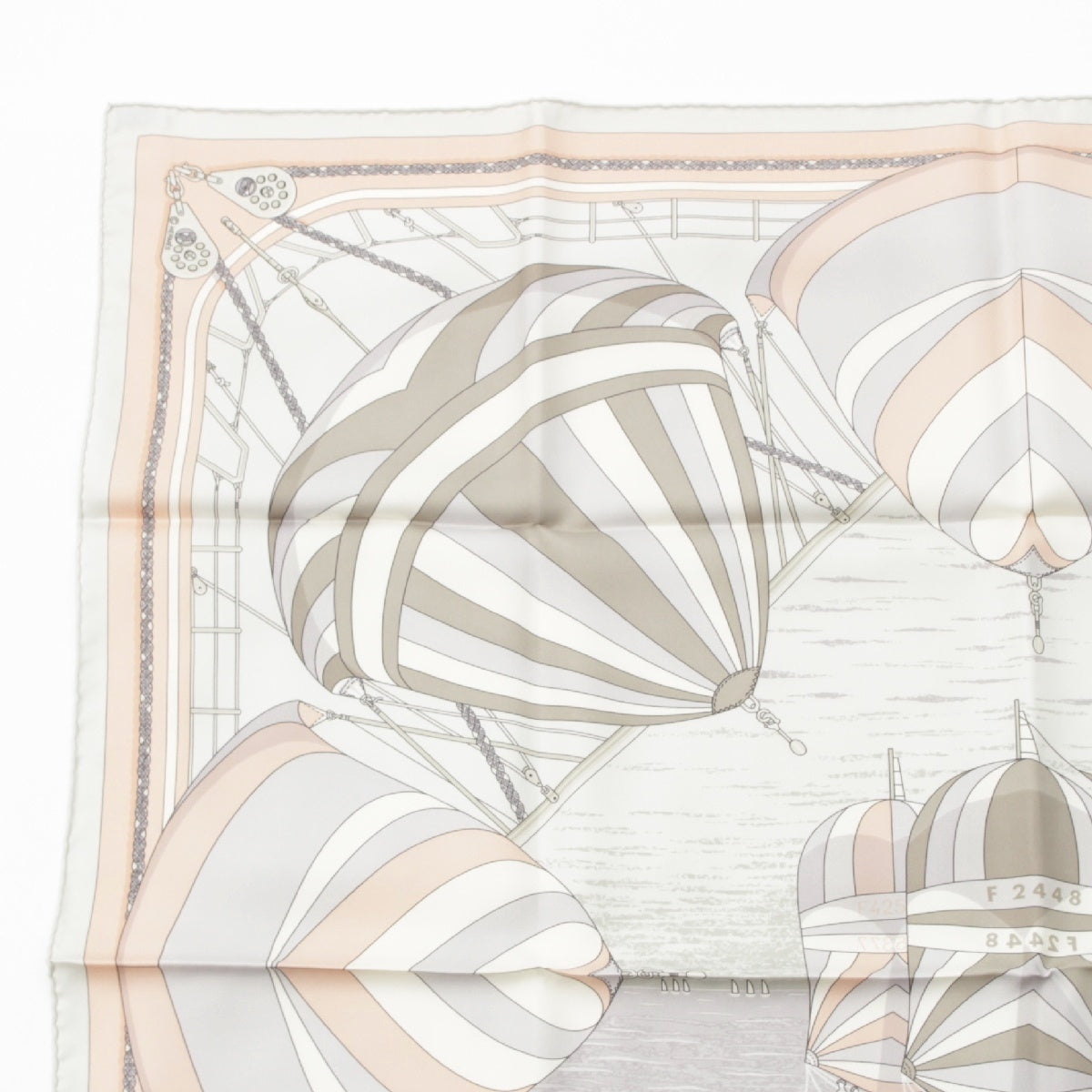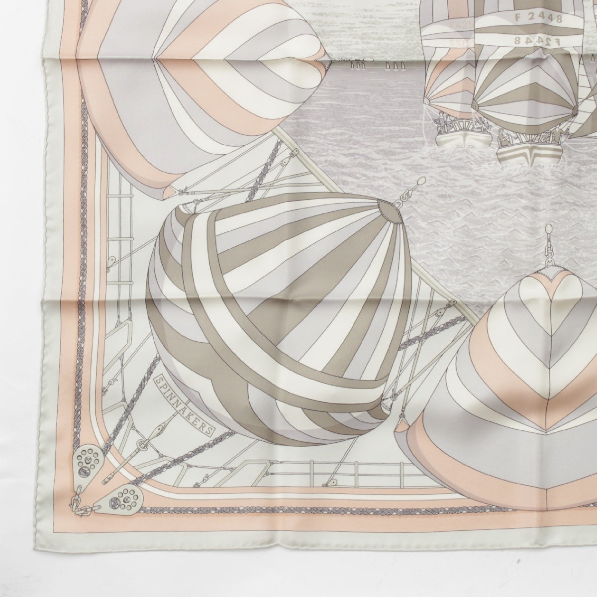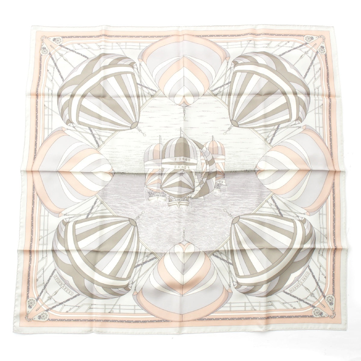 HERMES silk Carre 90 SPINNAKERS scarf Beige x pink