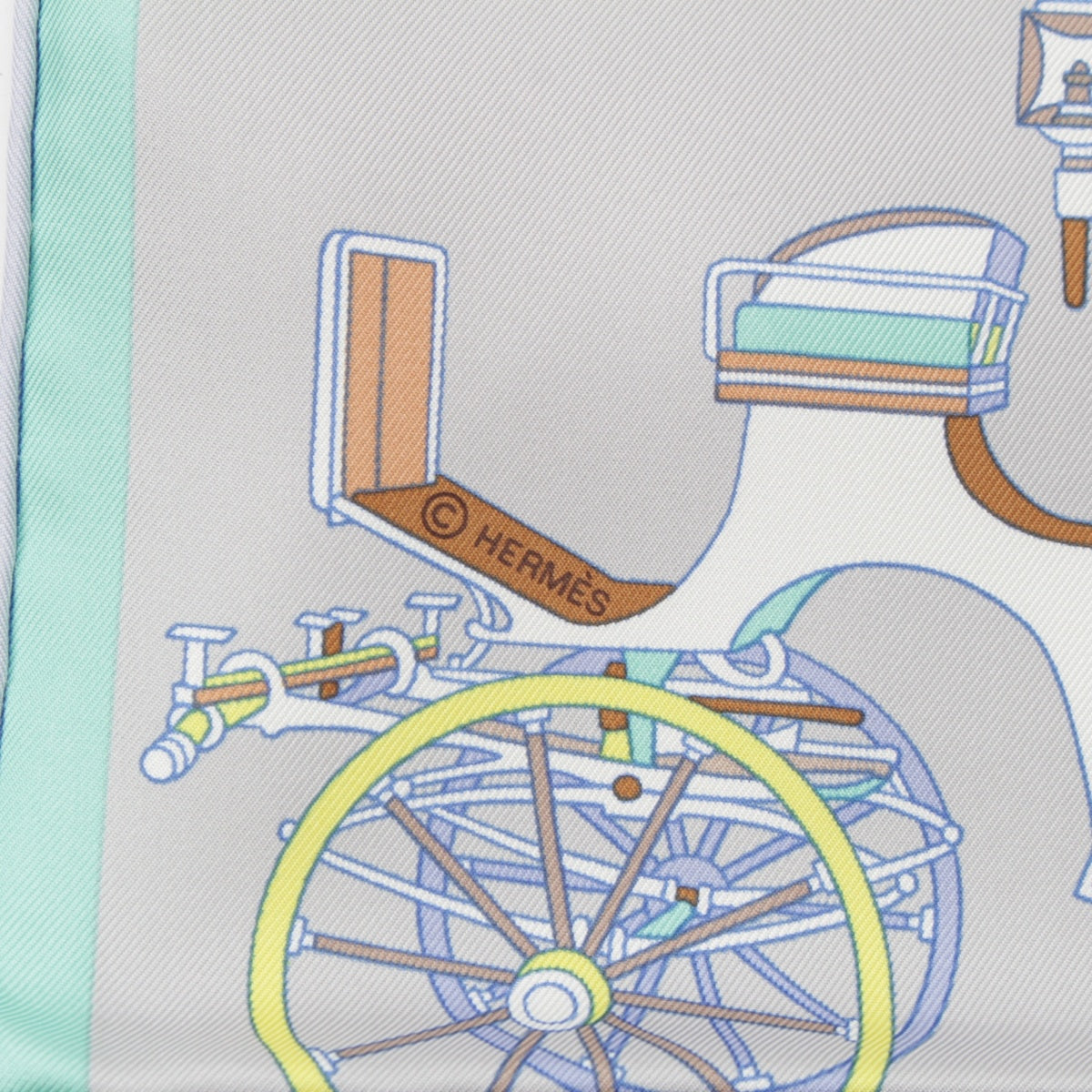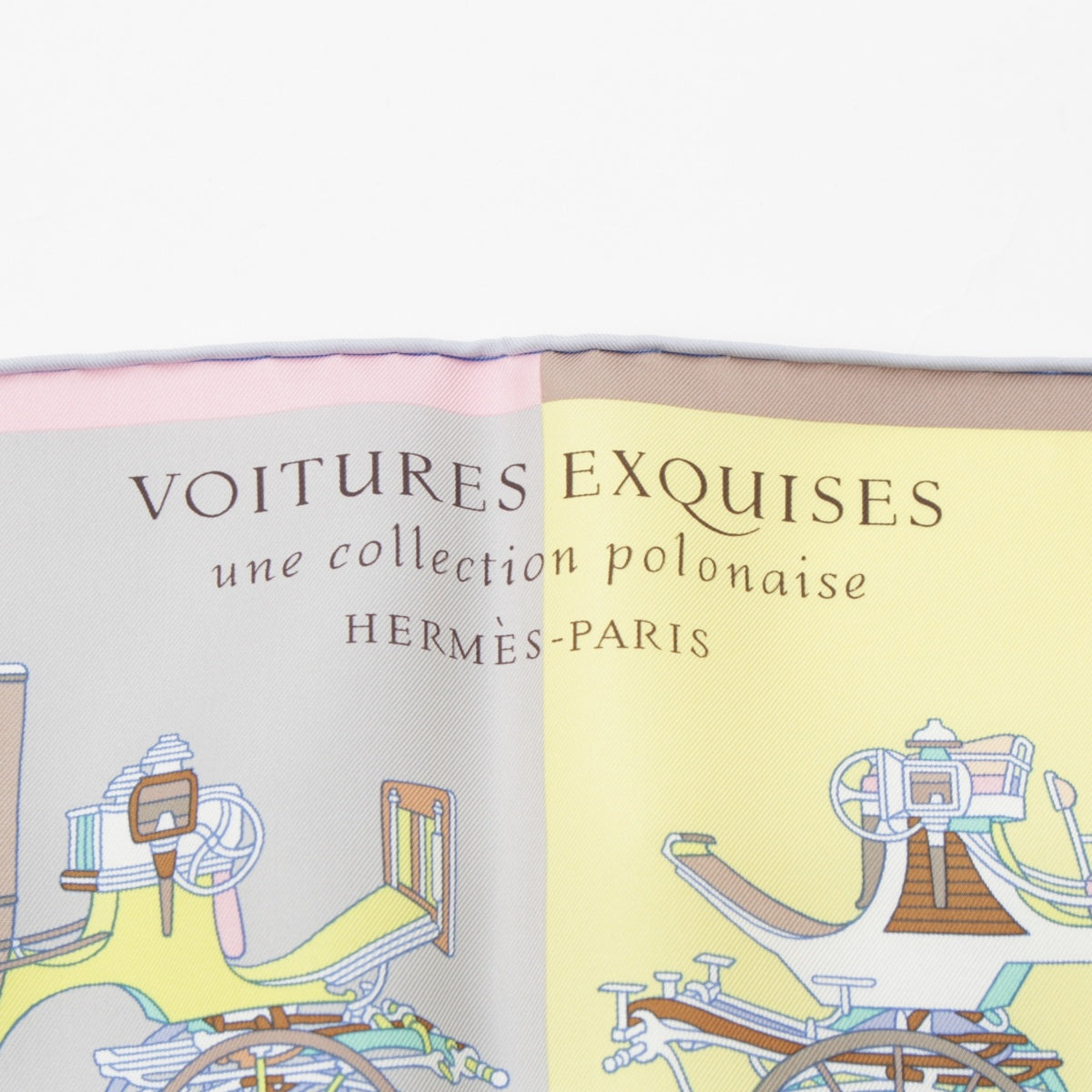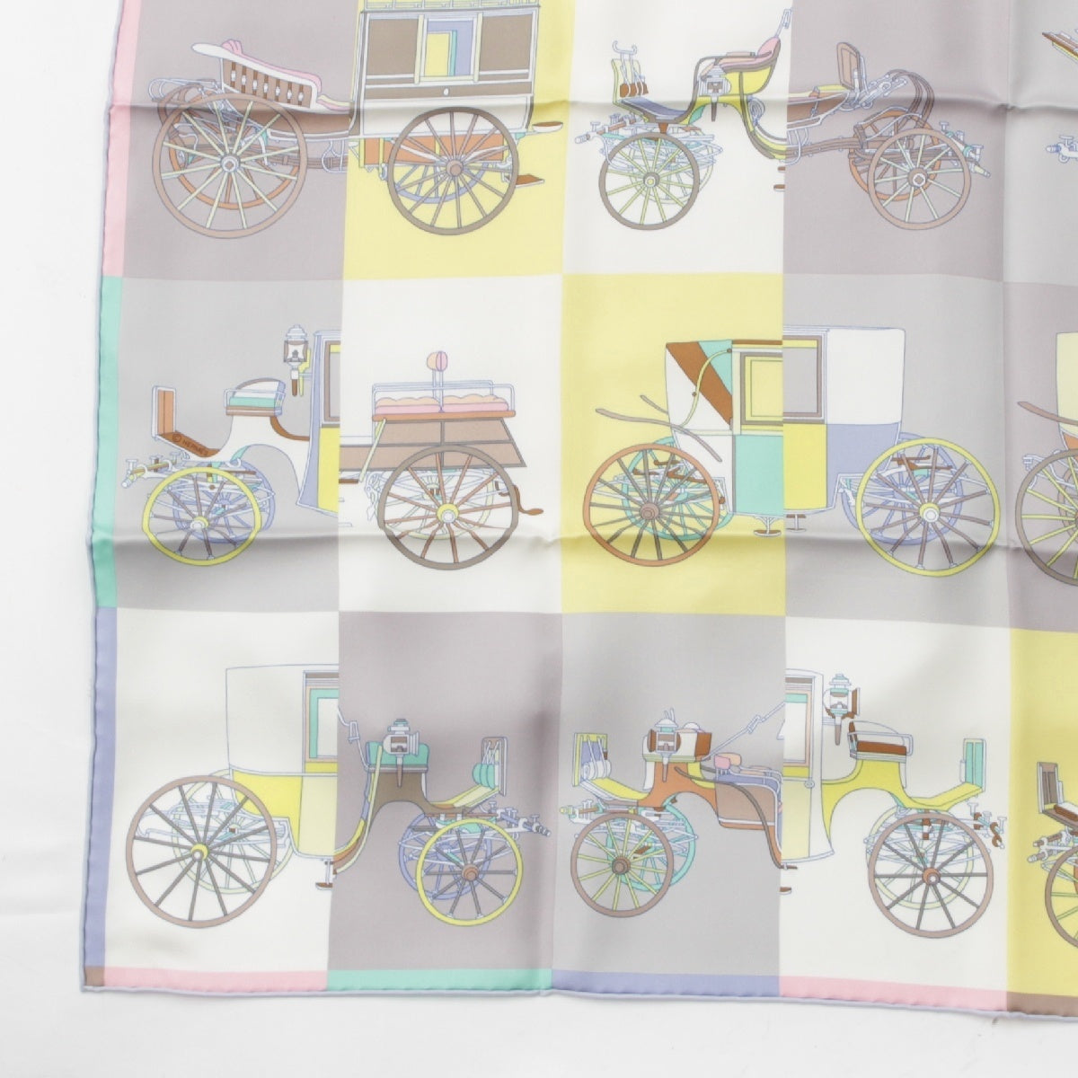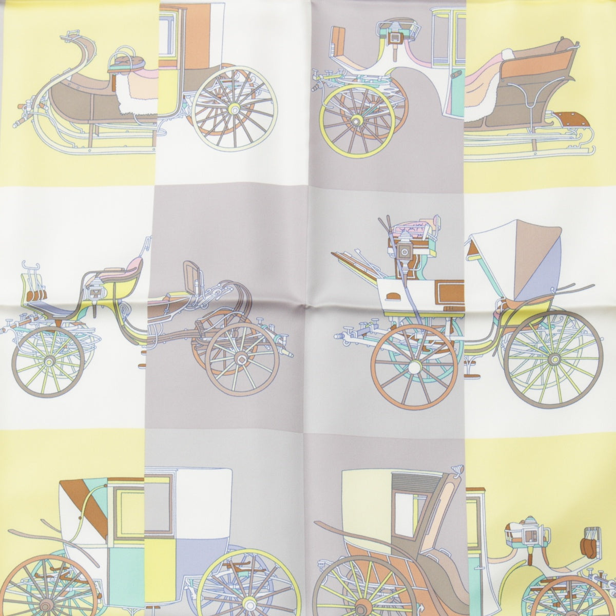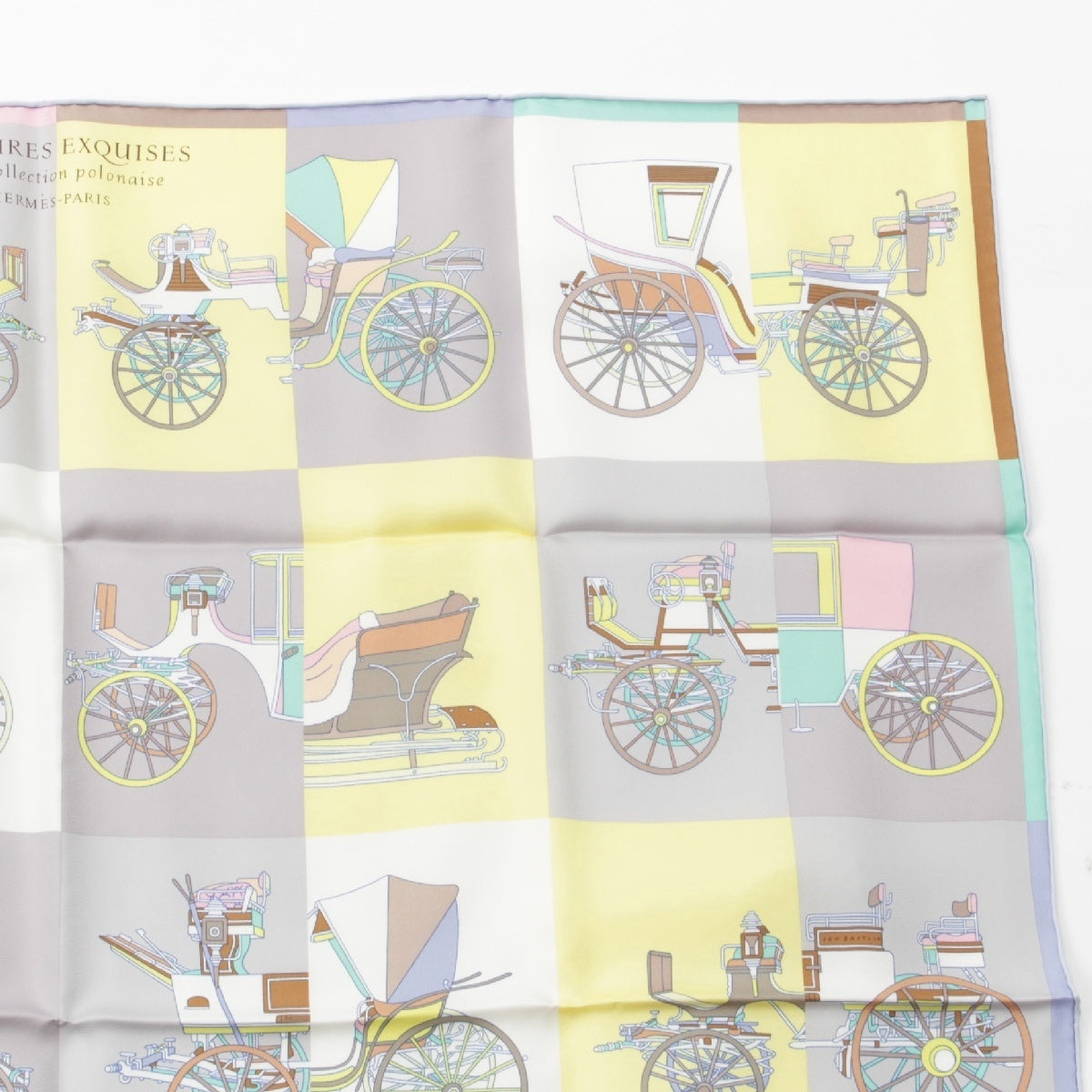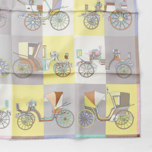 HERMES silk Carre 90 Voitures Exquises Elaborate carriage scarf yellow