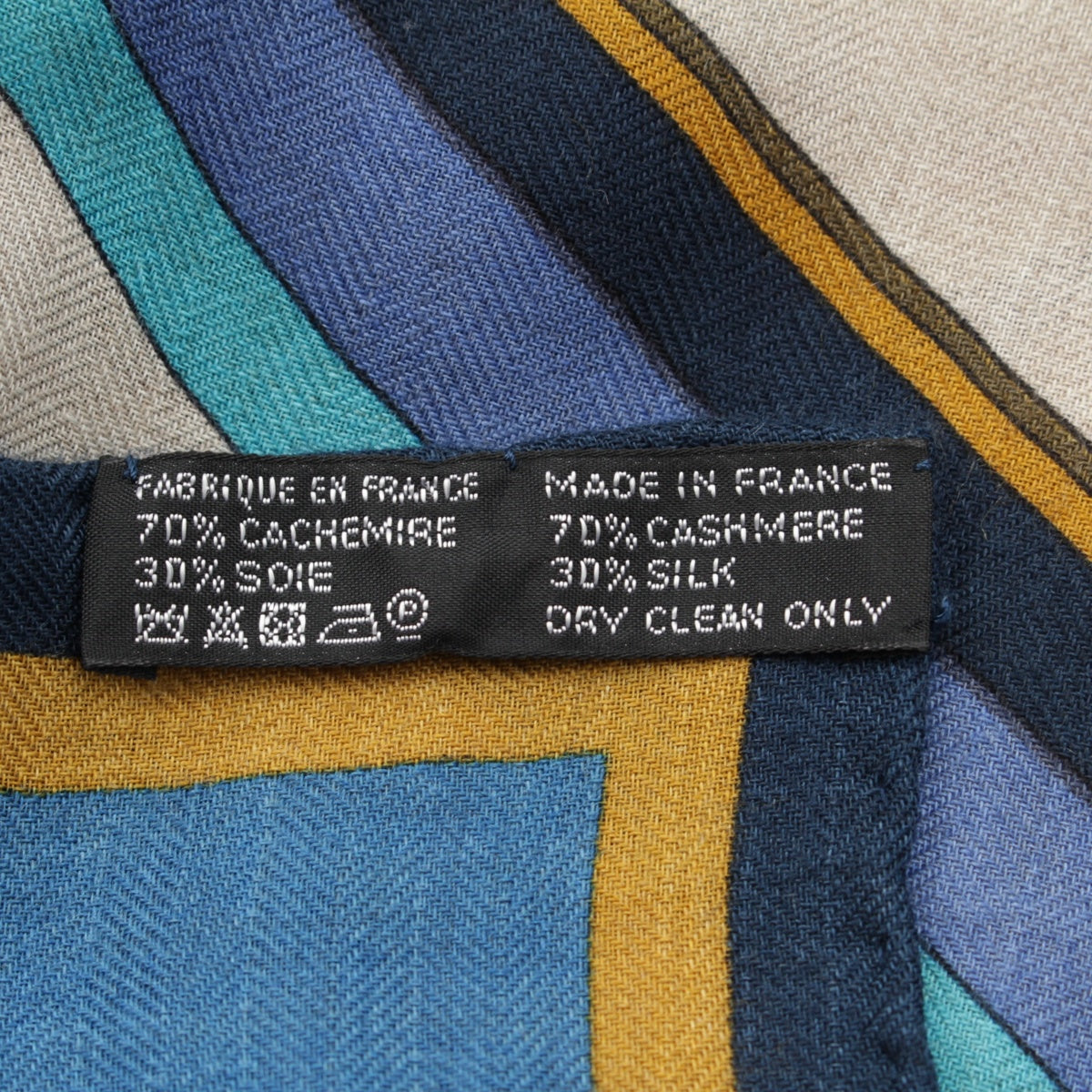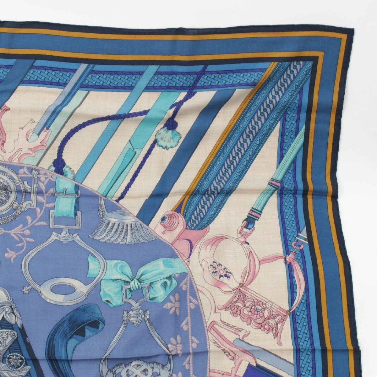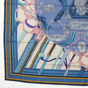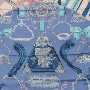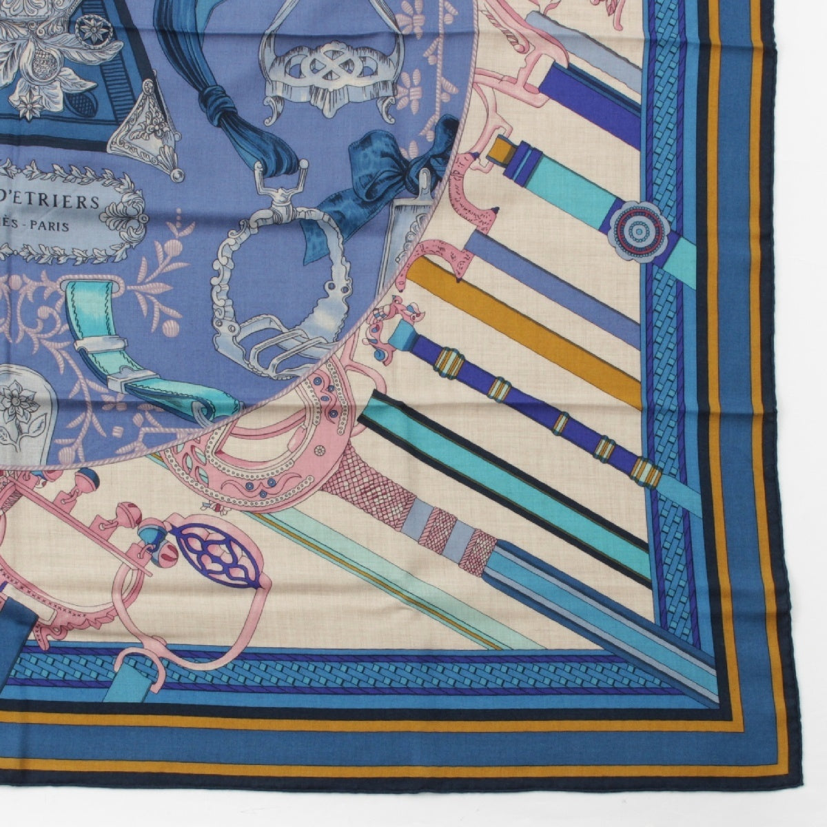 HERMES Cashmere x silk Carre Geant 140 Duo d'Etriers Stirrup Duo scarf blue