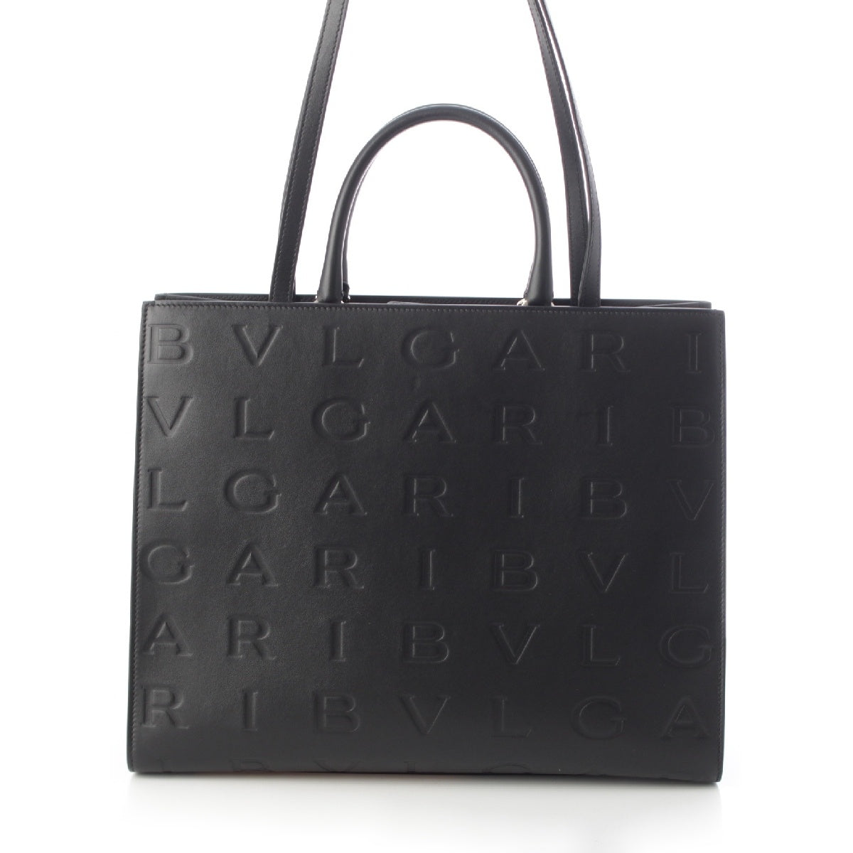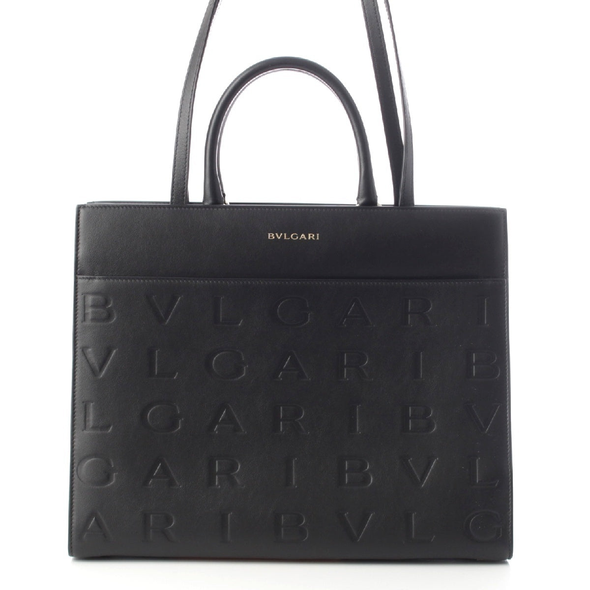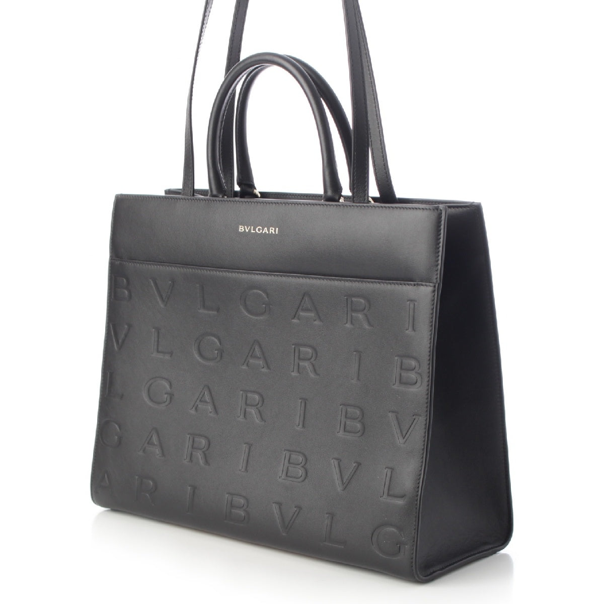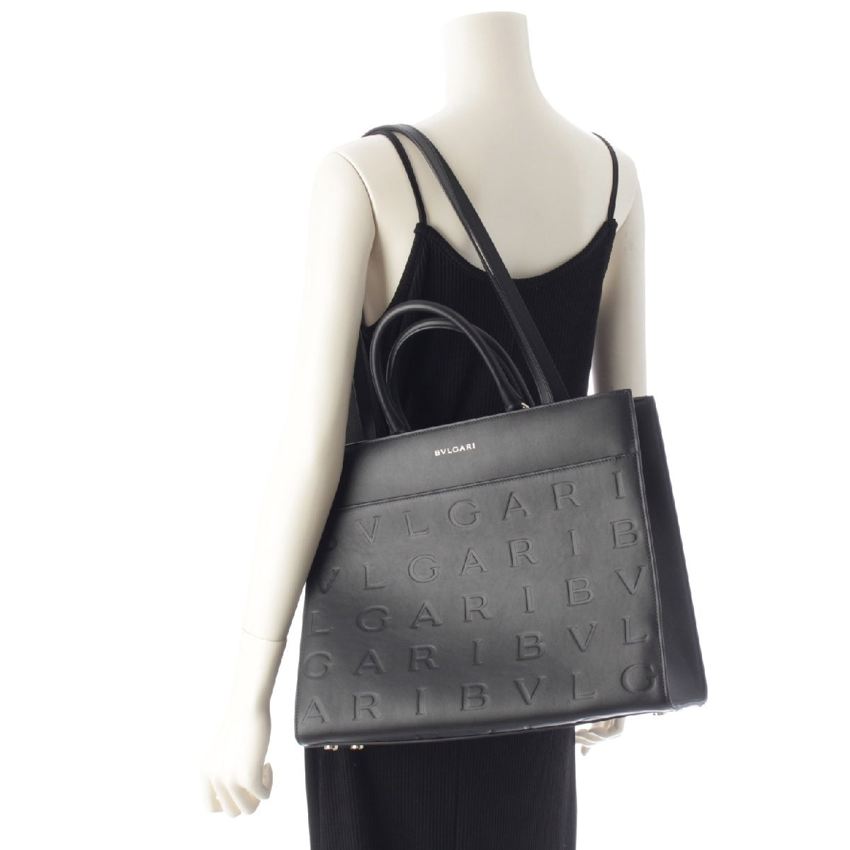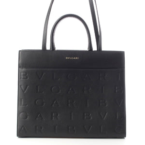 BVLGARI infinitum Calf leather Serpenti 2way Shoulder Bag with Logo Print Tote Bag Handbag black