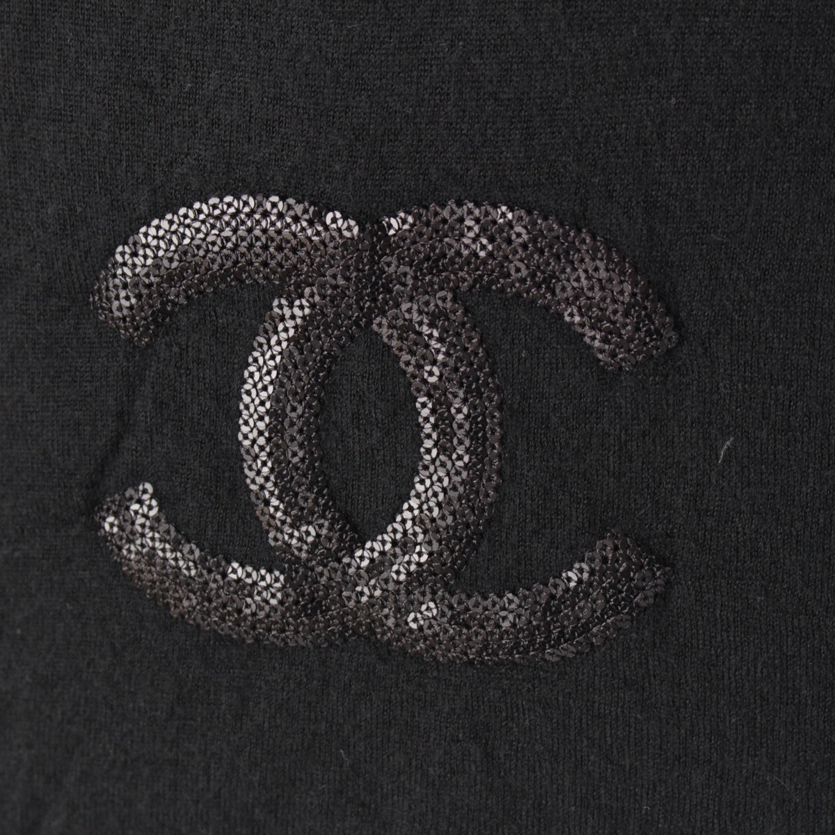 CHANEL 09A Sports line Sequin COCO Mark V-neck knit Parker Hoodies Sweaters Tops P36083 black