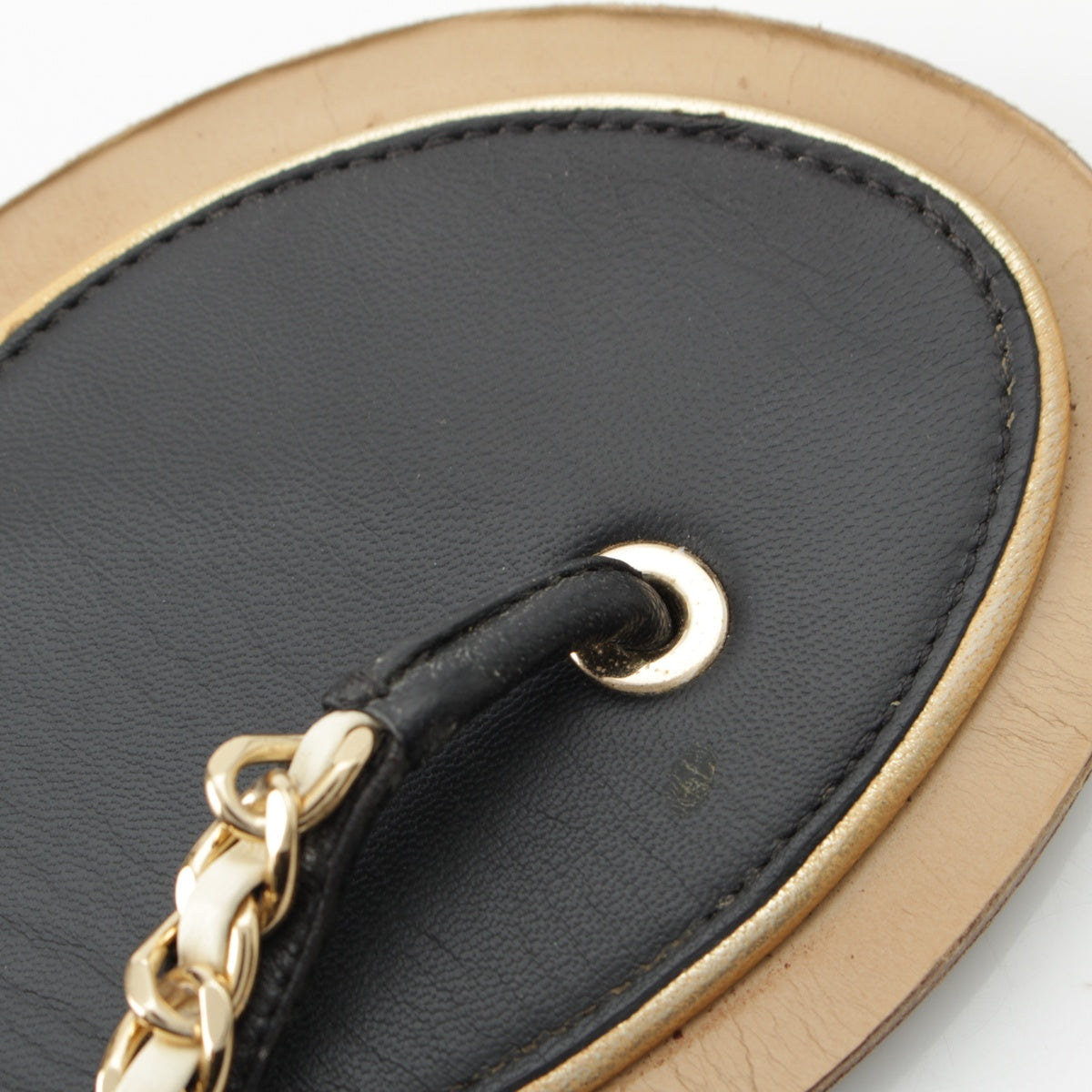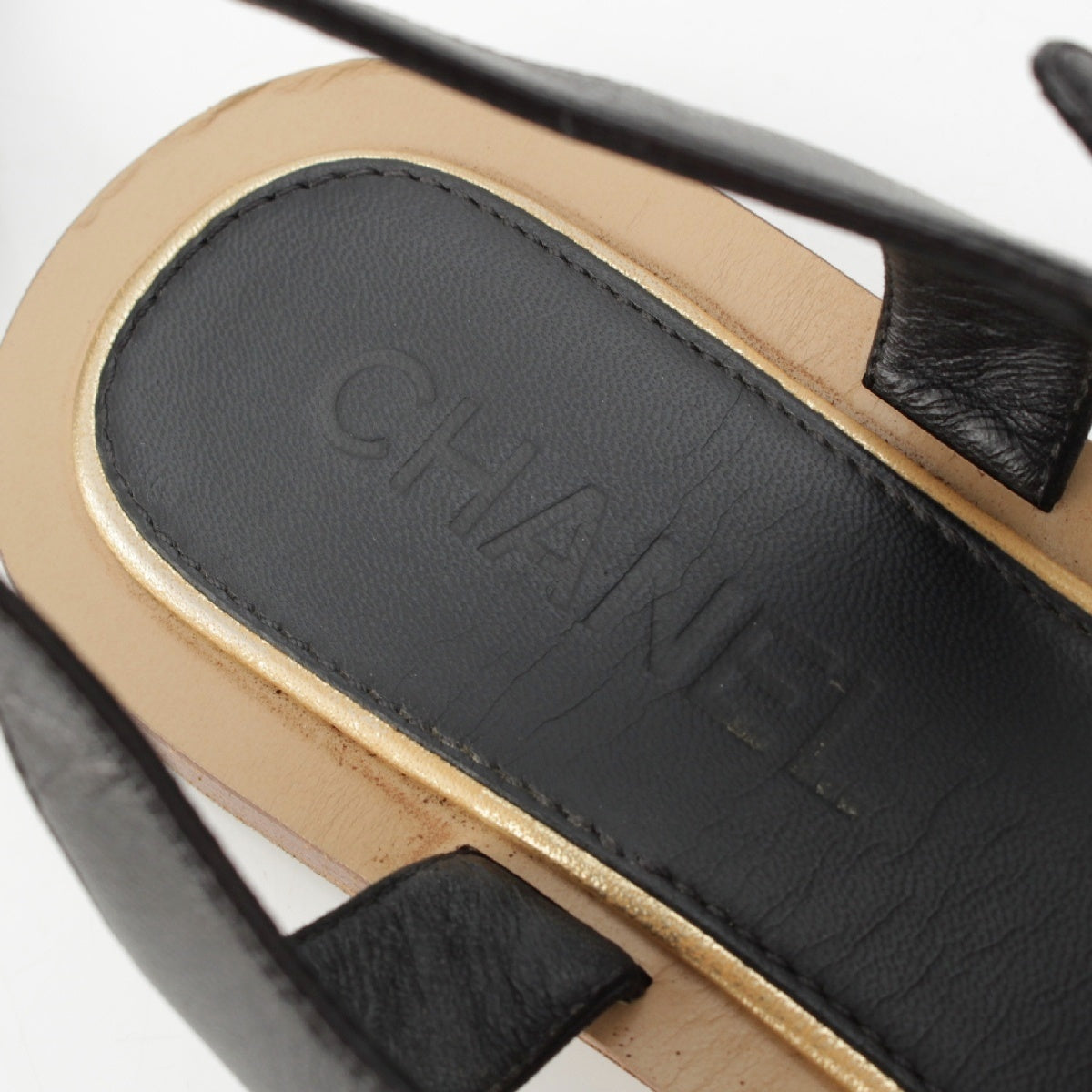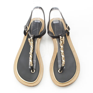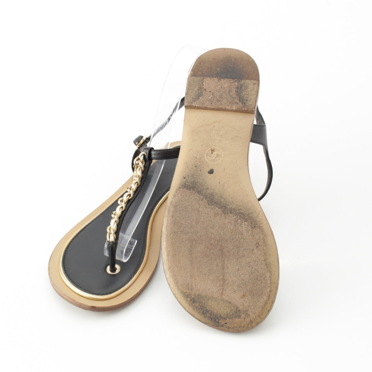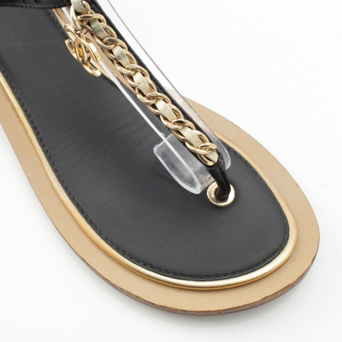 CHANEL leather COCO Mark Chain Thong Sandals shoes Black x beige 37