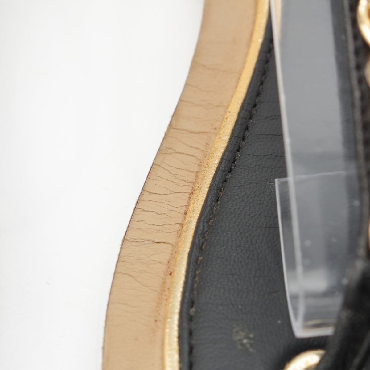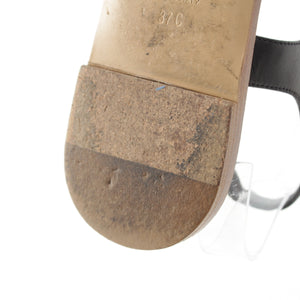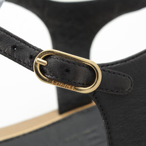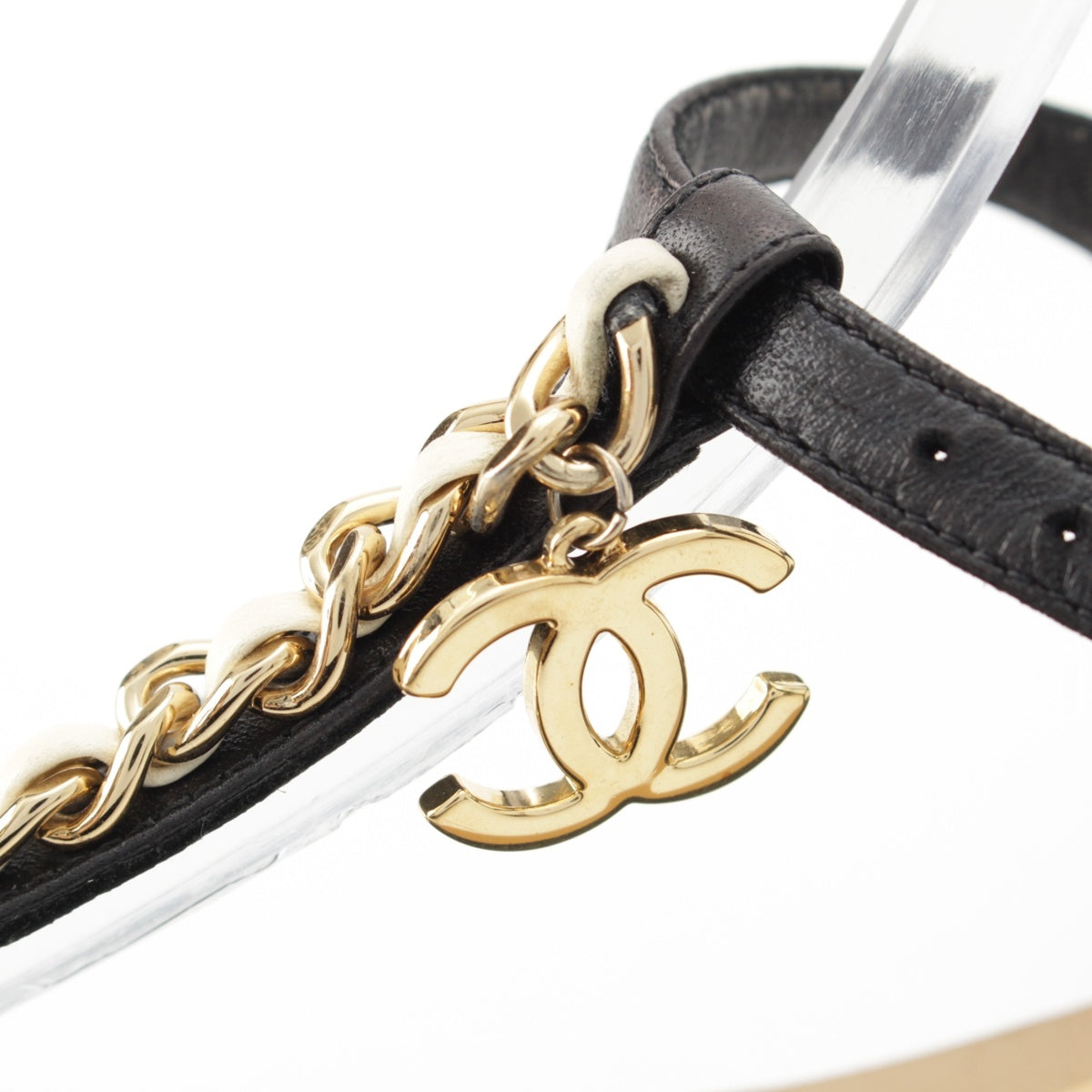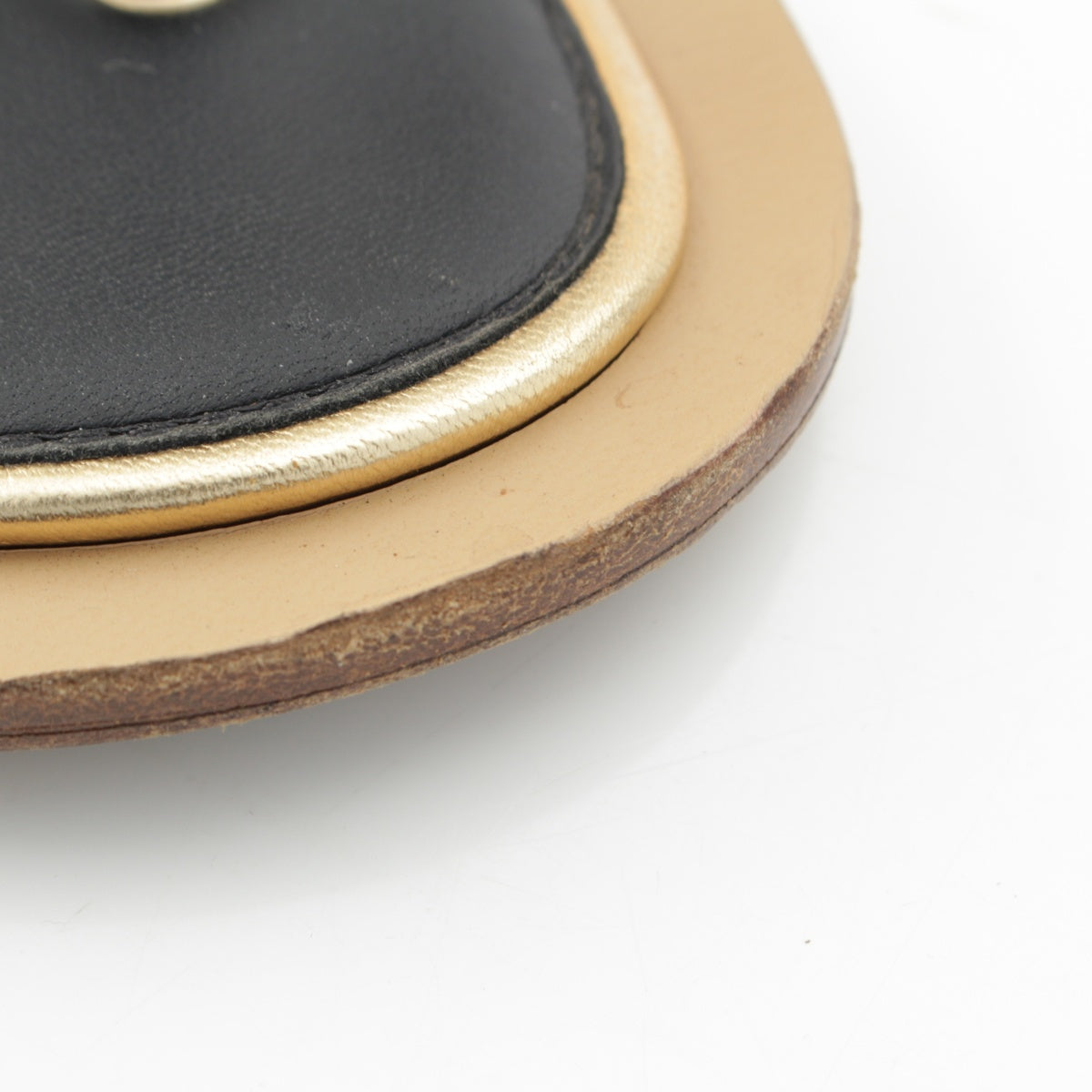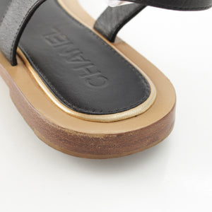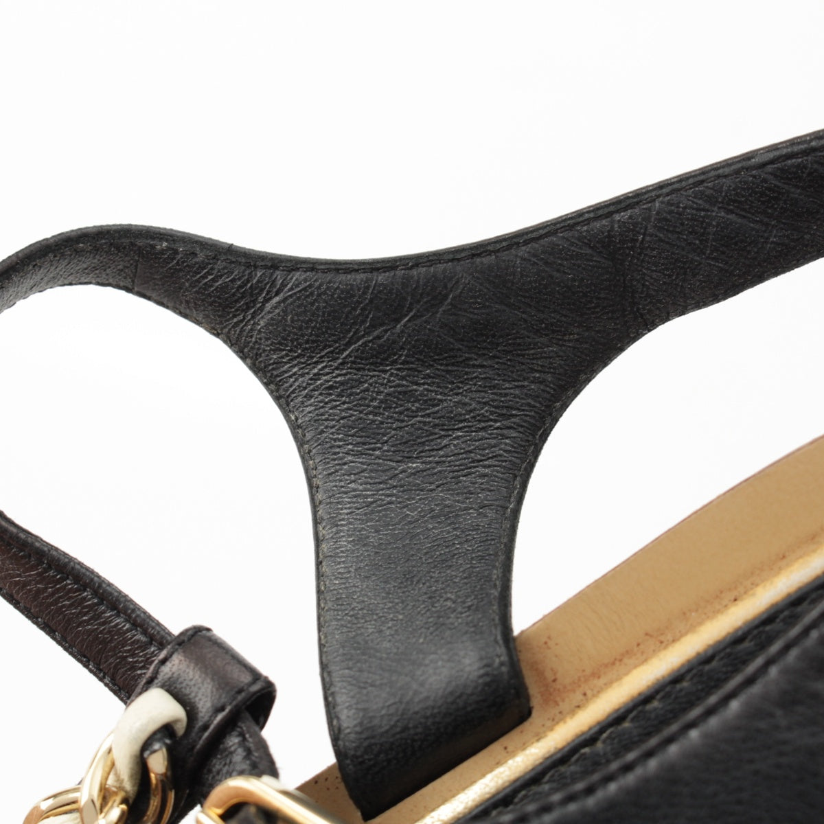 CHANEL leather COCO Mark Chain Thong Sandals shoes Black x beige 37