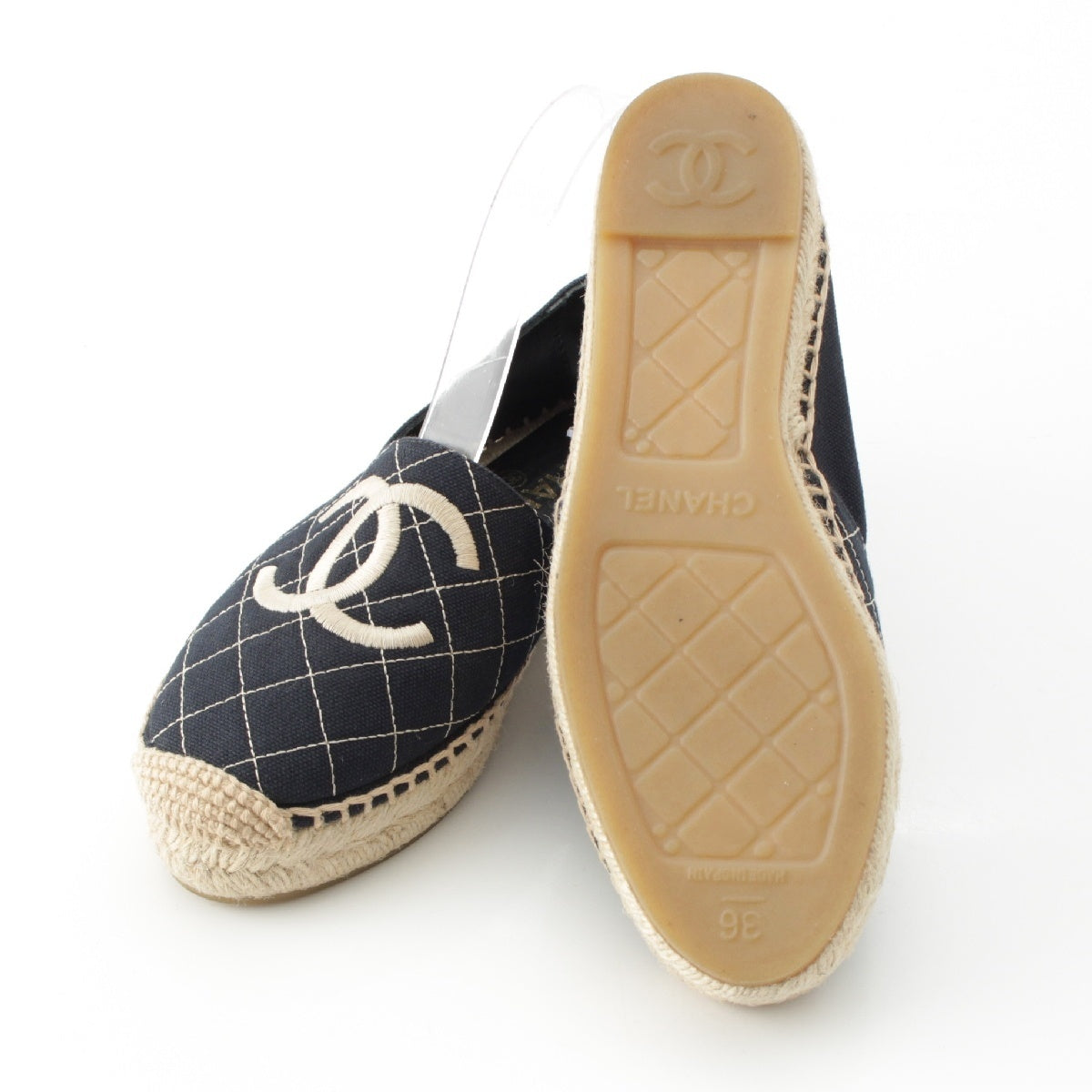 CHANEL canvas COCO Mark Matelasse Espadrilles Slip-on shoes G32910 blue 36