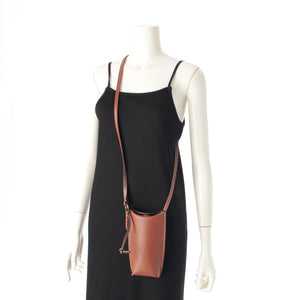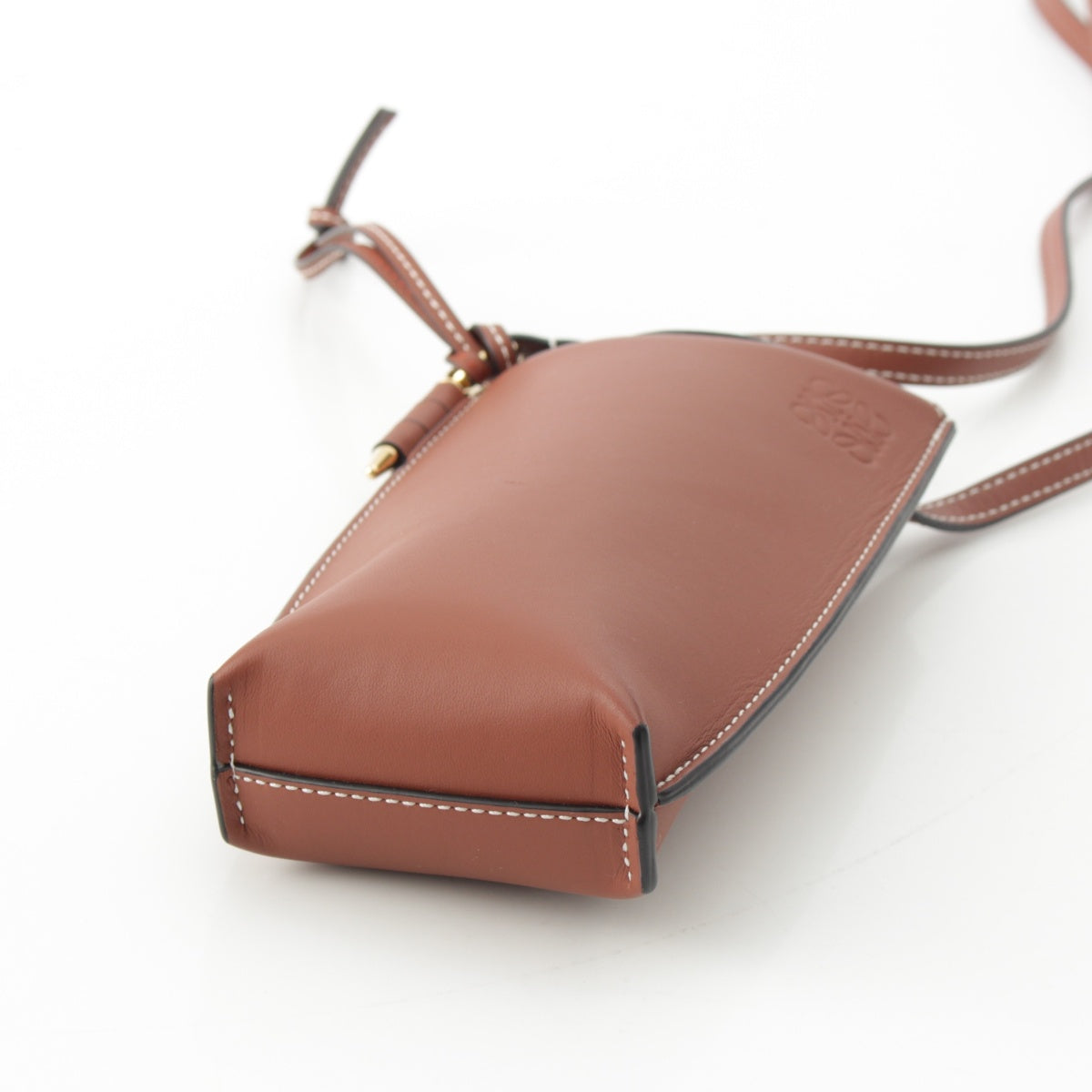LOEWE Gate pocket leather Anagram Phone Shoulder Bag Pouch Pochette Brown multicolor