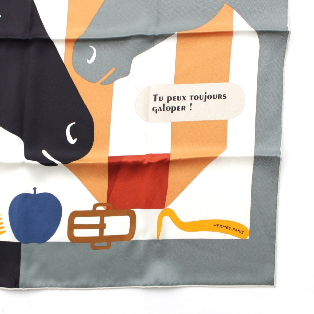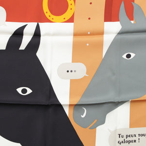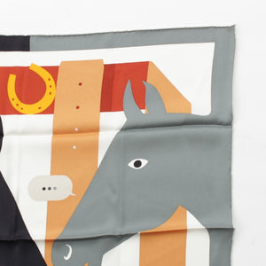 HERMES 23-24 years Carre 70 silk IS THIS A LOVE STORY scarf Horse Illustration multicolor