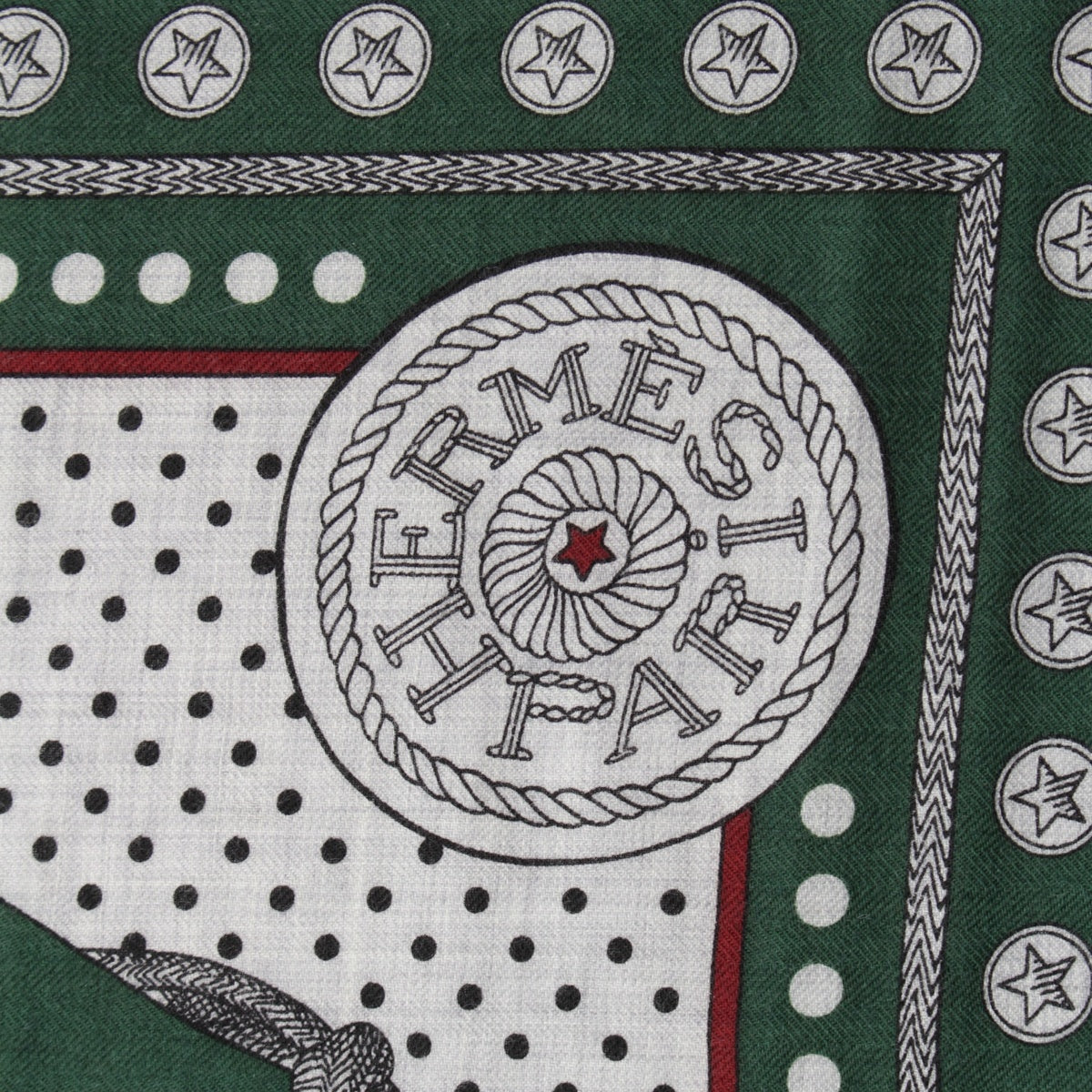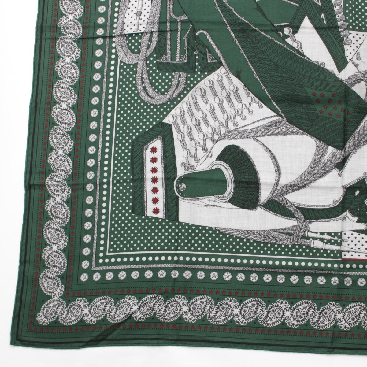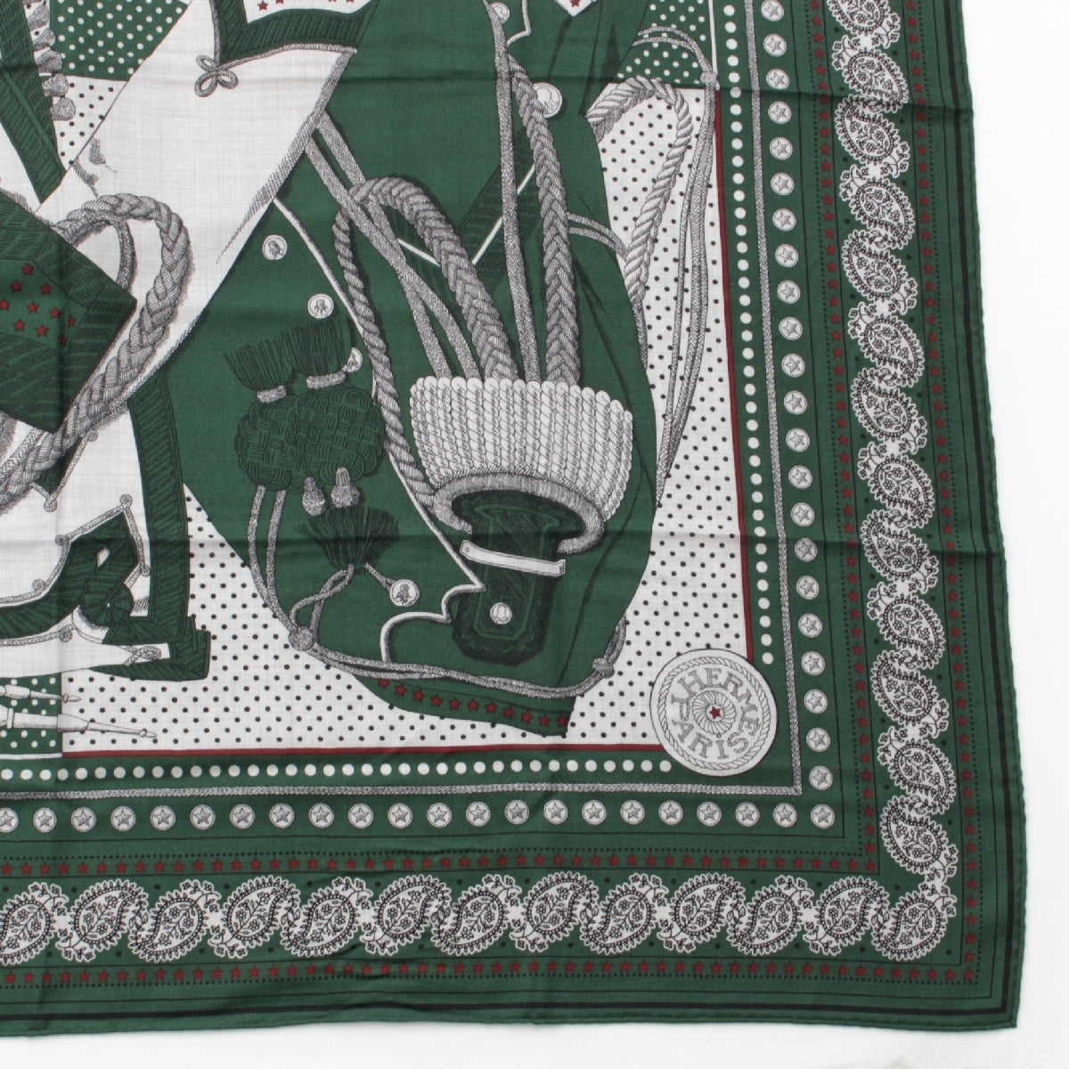 HERMES Calegean 140 cashmere silk Zouaves and Dragons Large Bandana scarf Paisley Pattern Stole Shawl green
