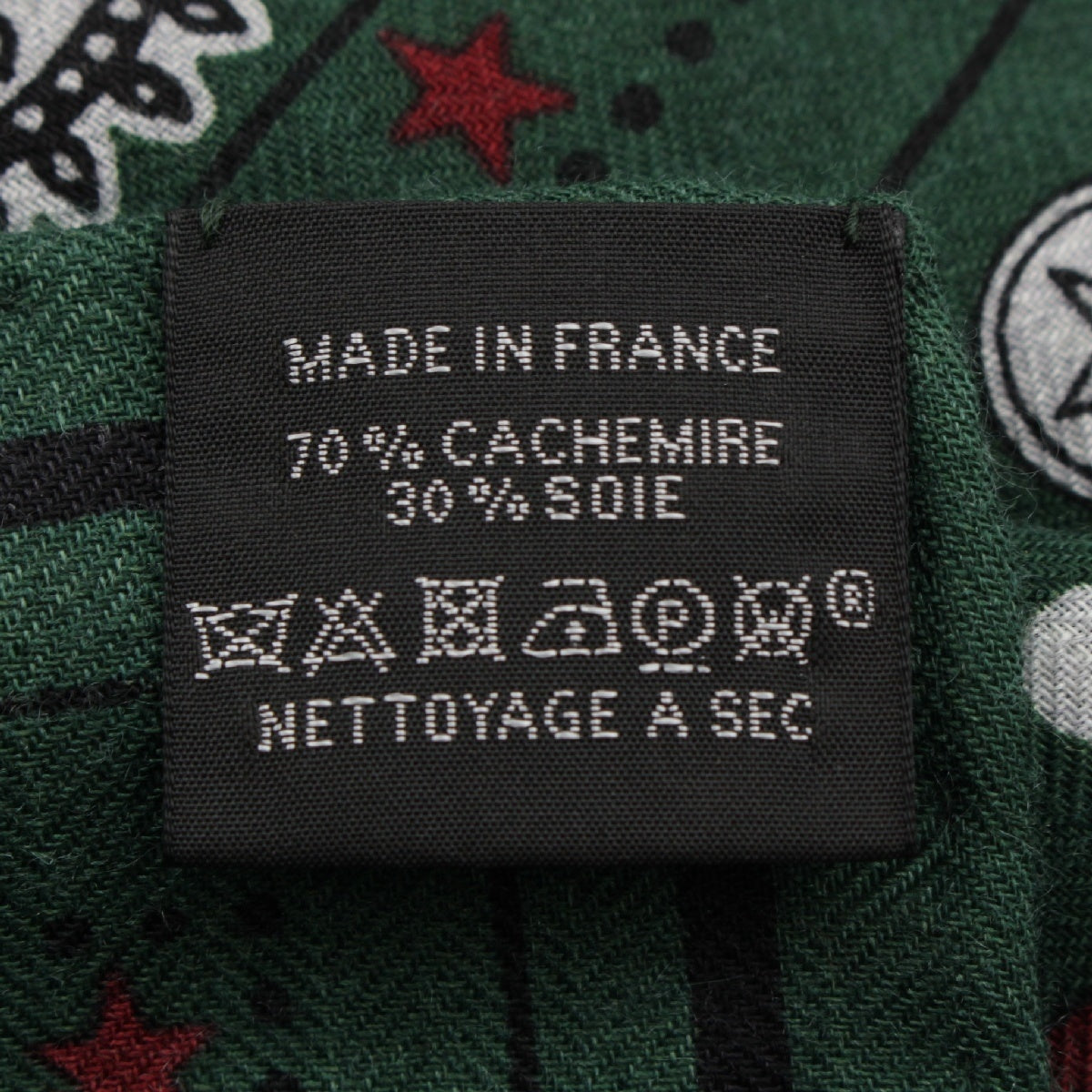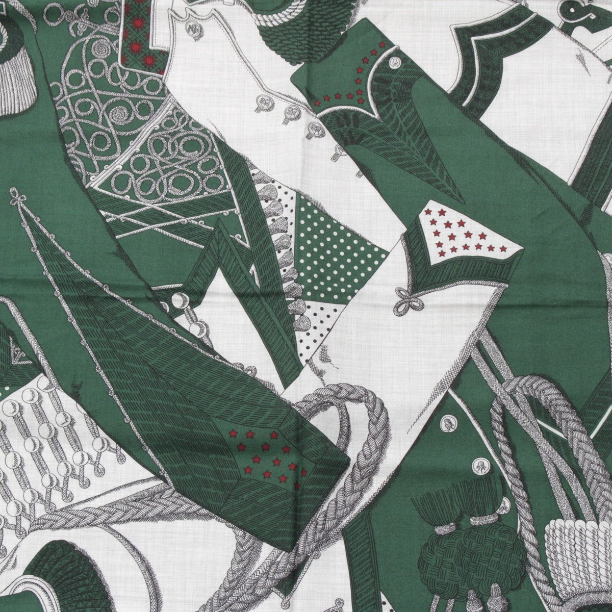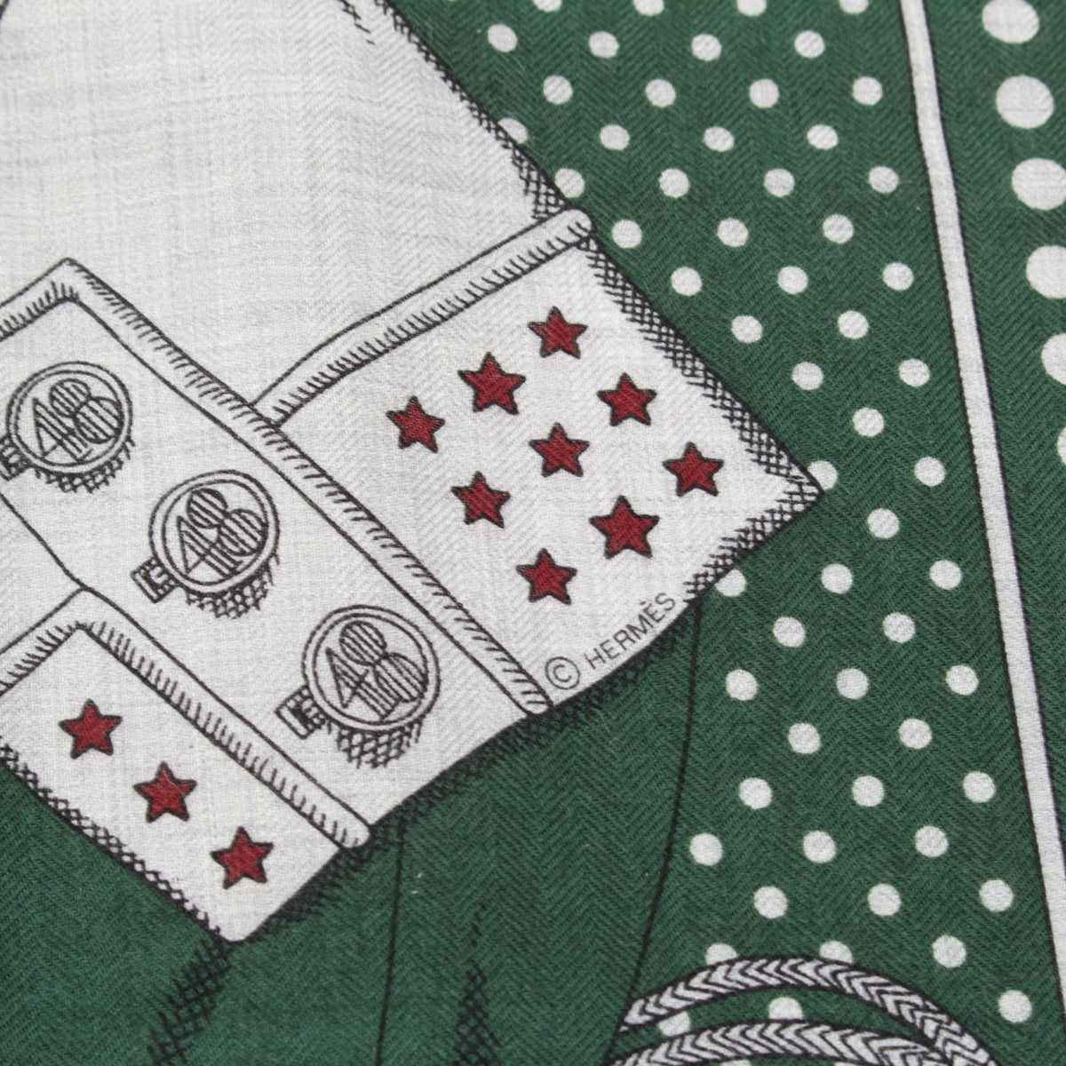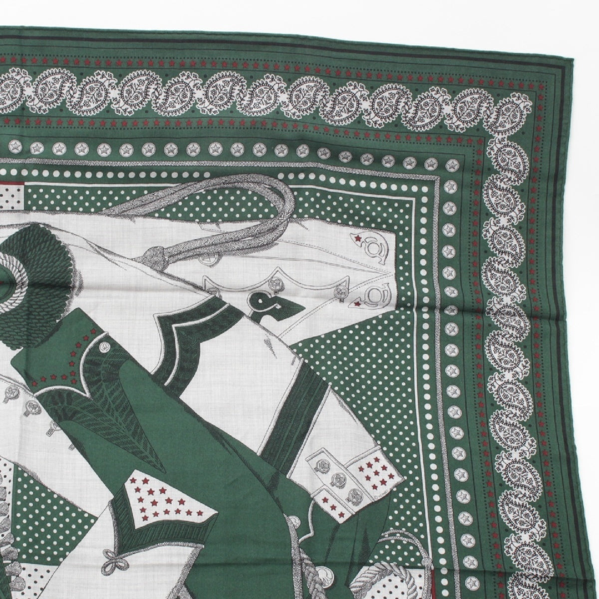 HERMES Calegean 140 cashmere silk Zouaves and Dragons Large Bandana scarf Paisley Pattern Stole Shawl green