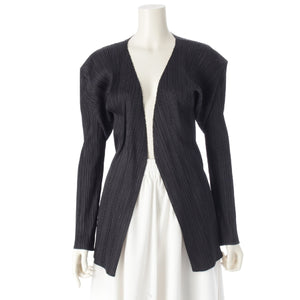 PLEATS PLEASE ISSEY Vintage Crewneck cardigan Jacket Dark Grey Black Sesame Salt 3
