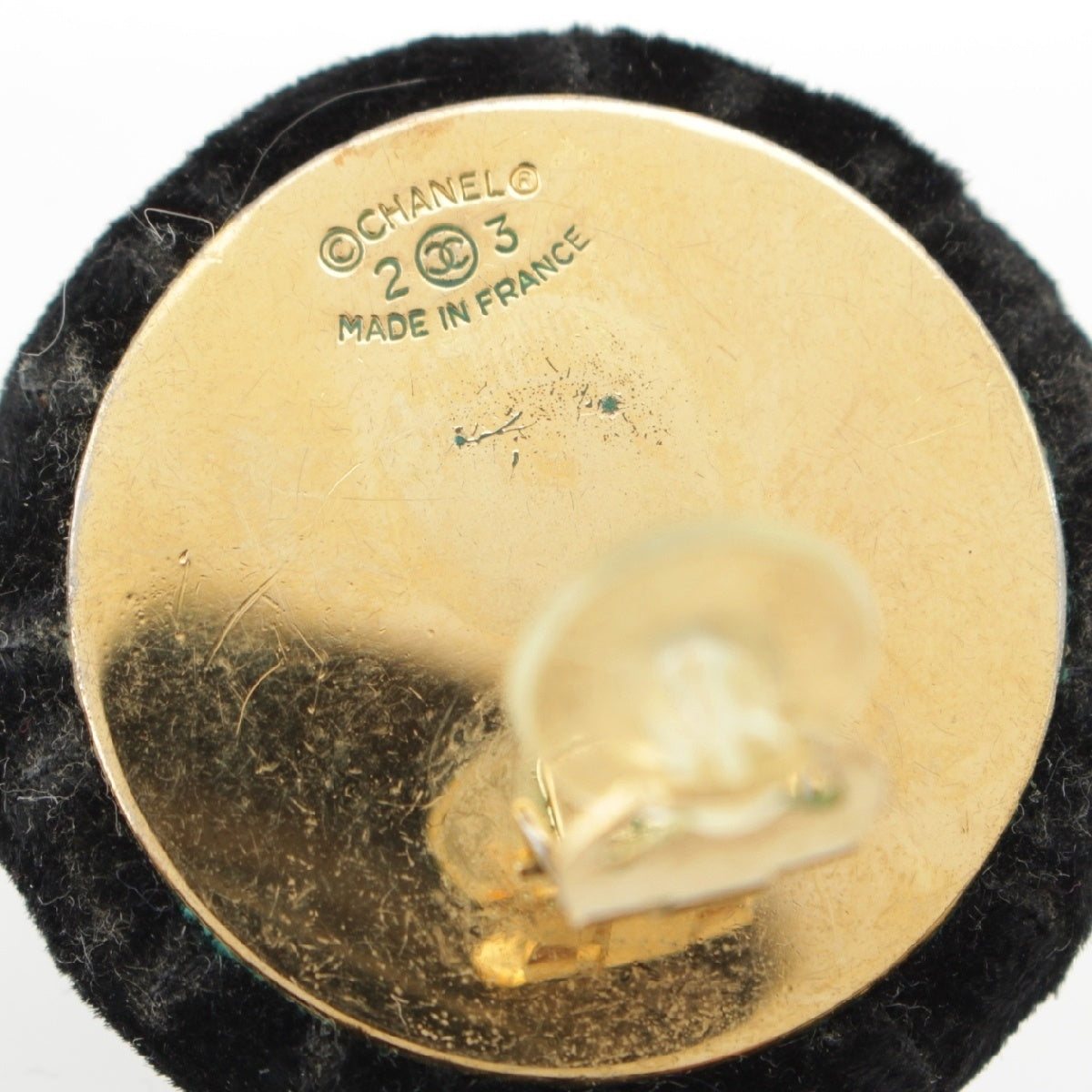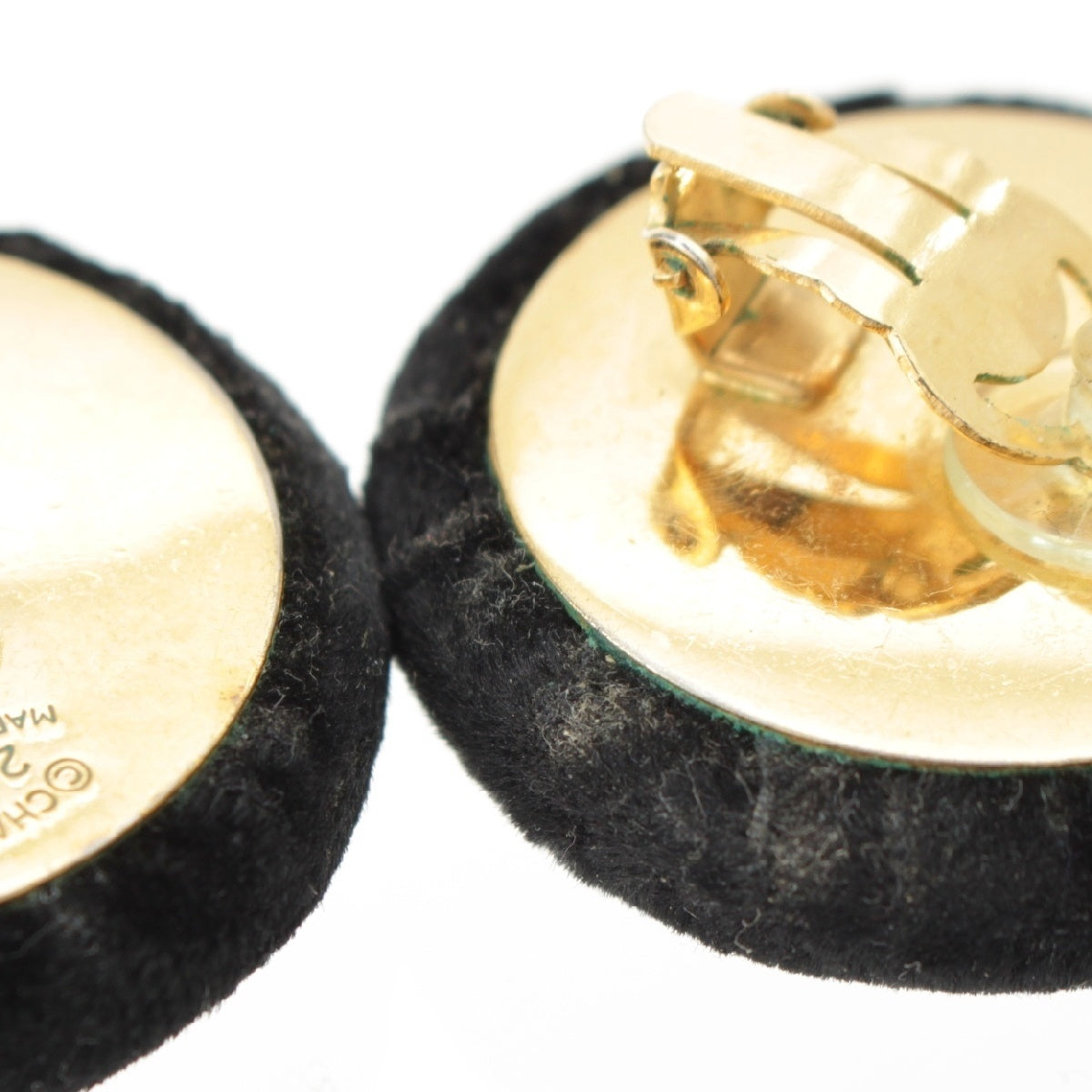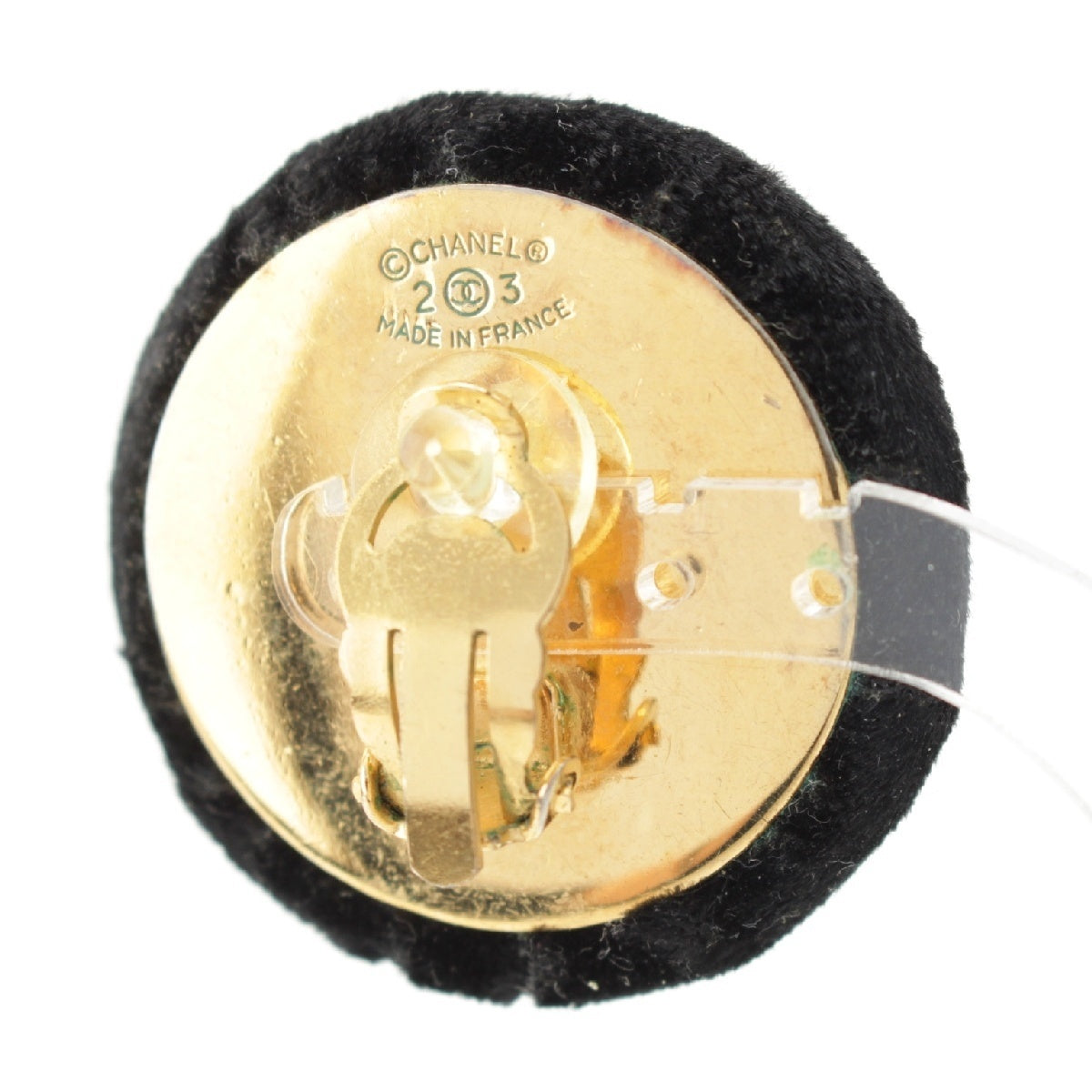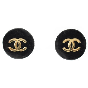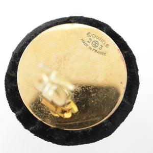CHANEL 23 Velor Vintage COCO Mark Round Earring Pierce accessories black
